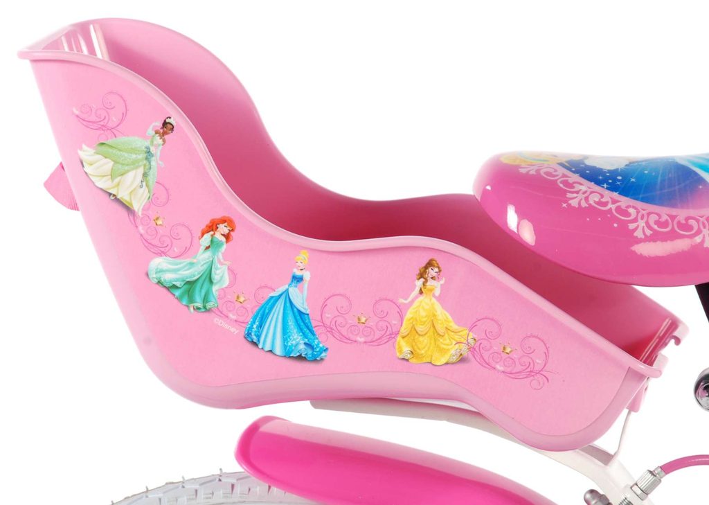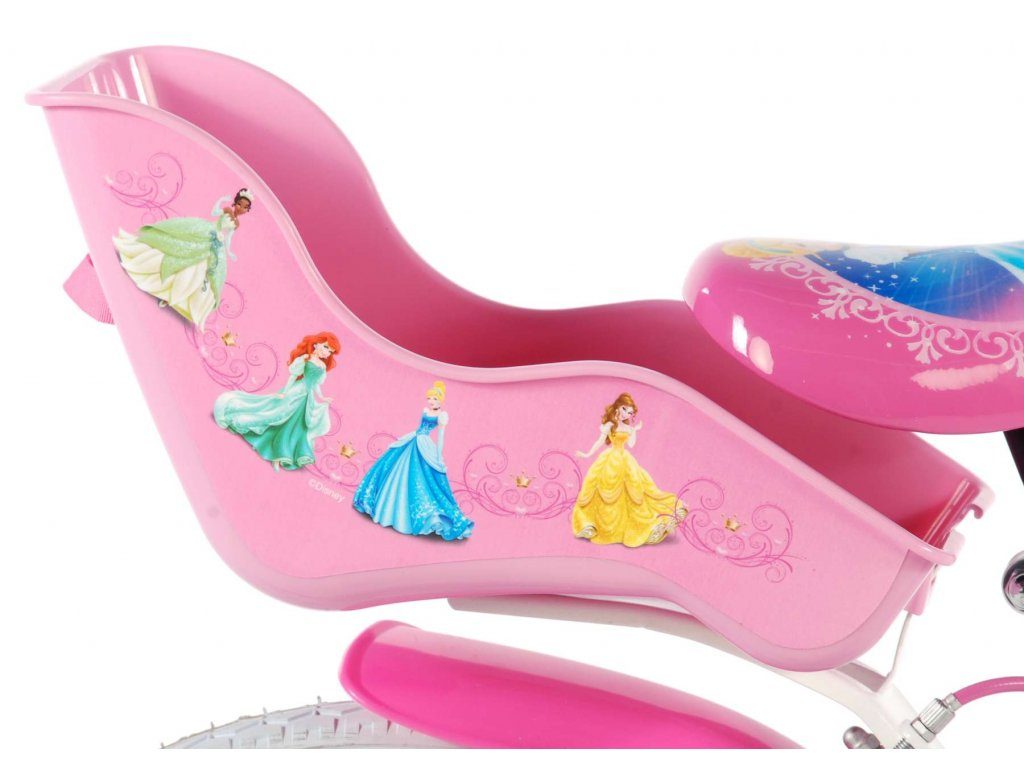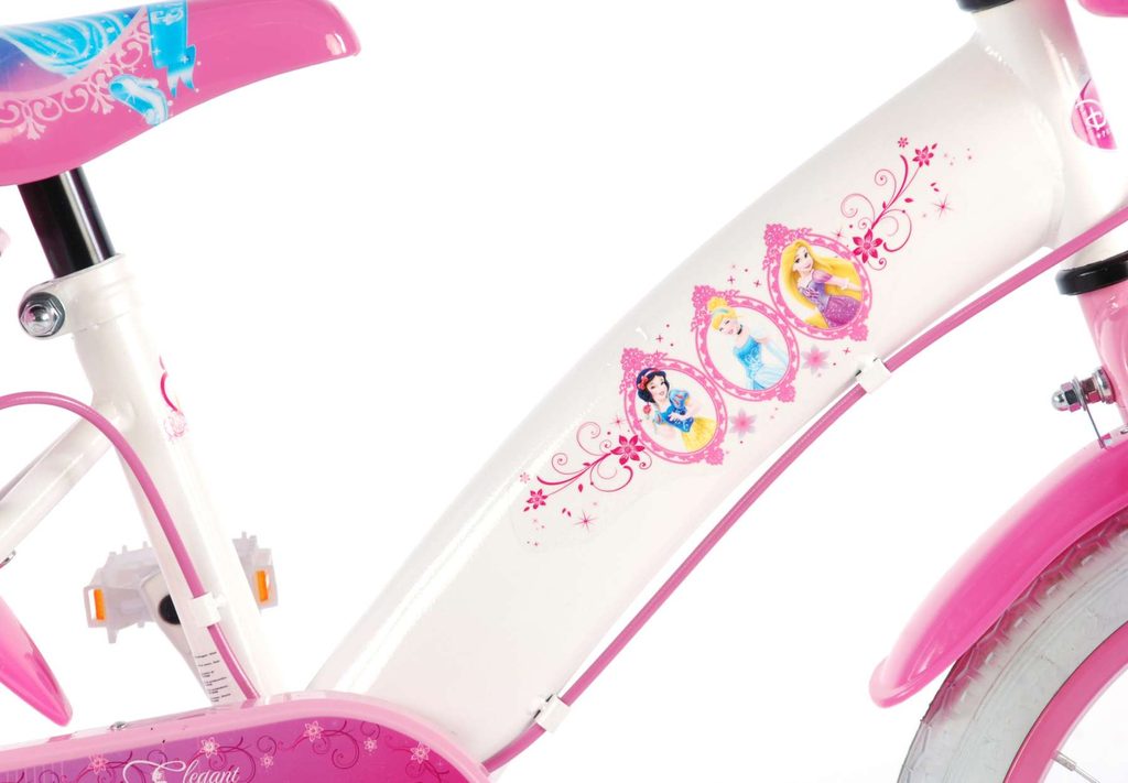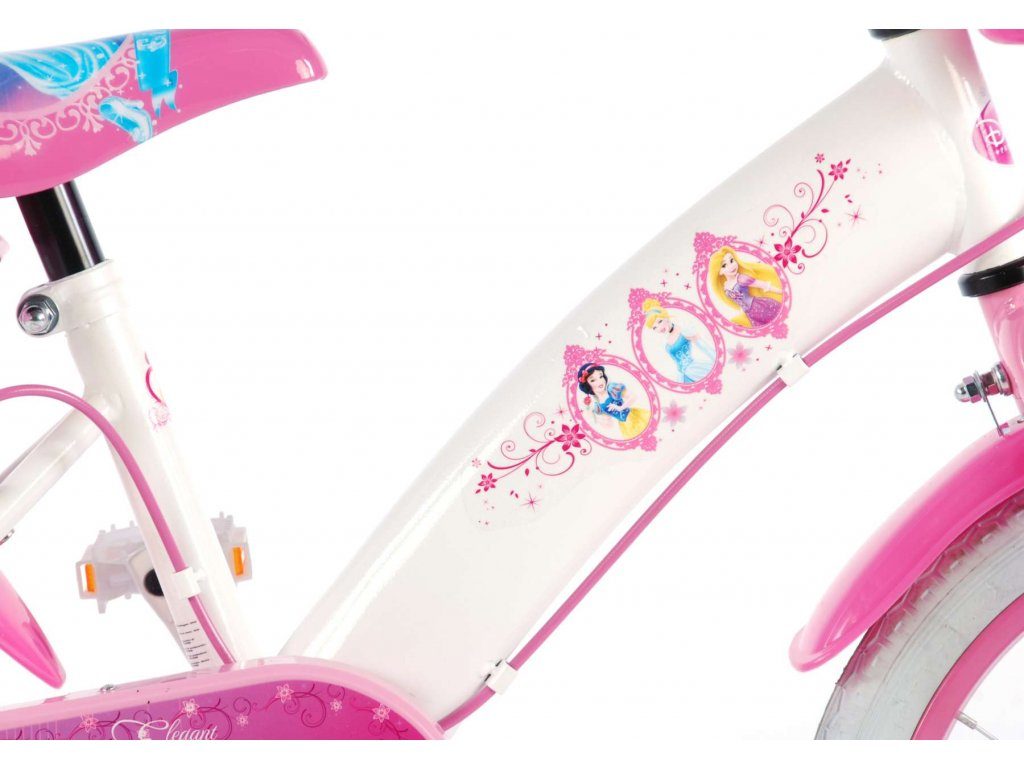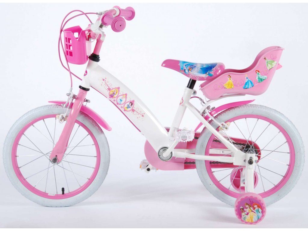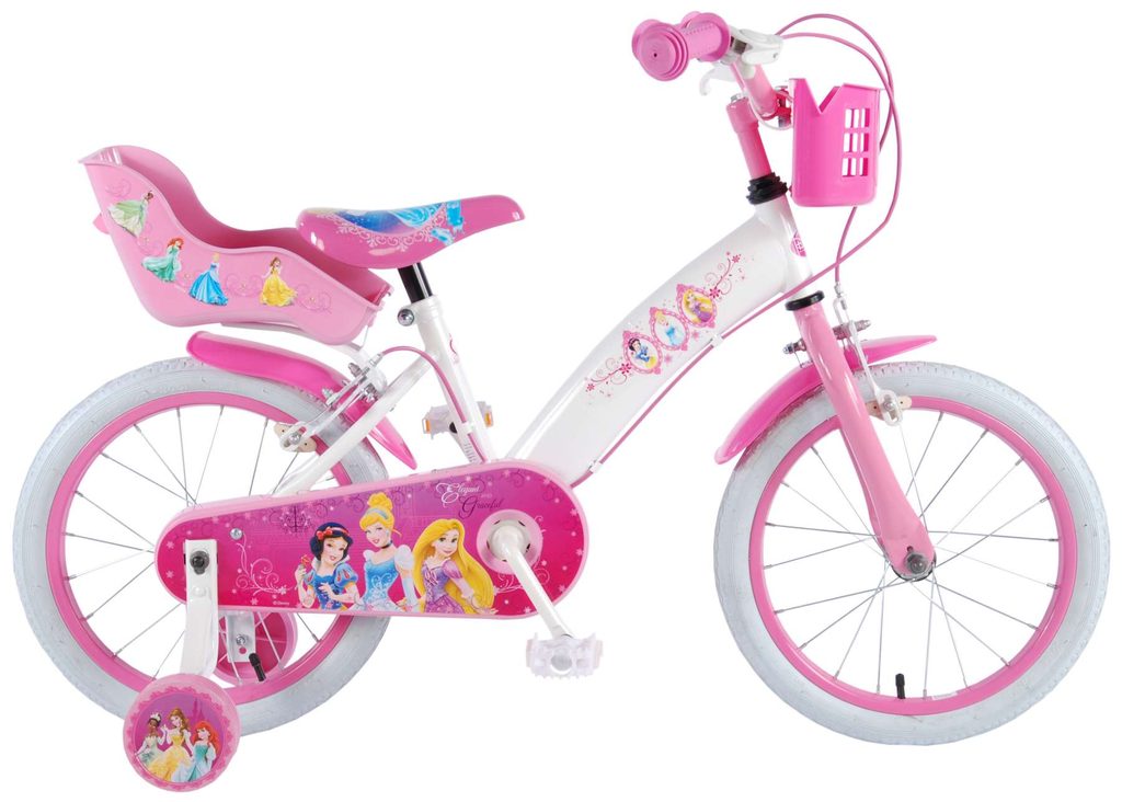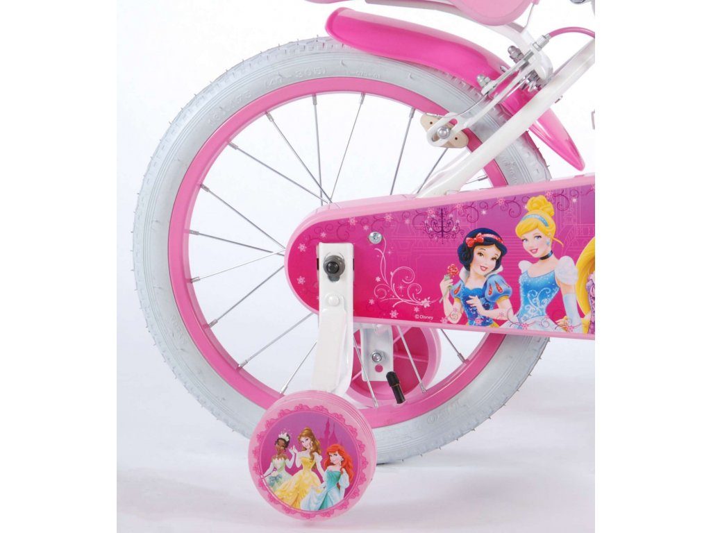 Originální dětské kolo od holandského výrobce Volare Princess (licence Disney) s velikostí ráfků 16 palců je určeno pro děti ve věku od 4 do 6 let s výškou do 105 cm. Kolo je opatřeno demontovatelnými balančními kolečky, dítě se tedy bude cítit hned od první jízdy bezpečně a stabilně. Kolo je vybaveno přední a zadní čelisťovou brzdou. Proti nechtěnému namotání nohavice nebo tkaničky do řetězu má kolo kryt s obrázky, který zakrývá celý řetěz. Sedadlo i řídítka jsou výškově nastavitelné. V zadní části je umístěný nosič na panenky a v přední části je košík na hračky.