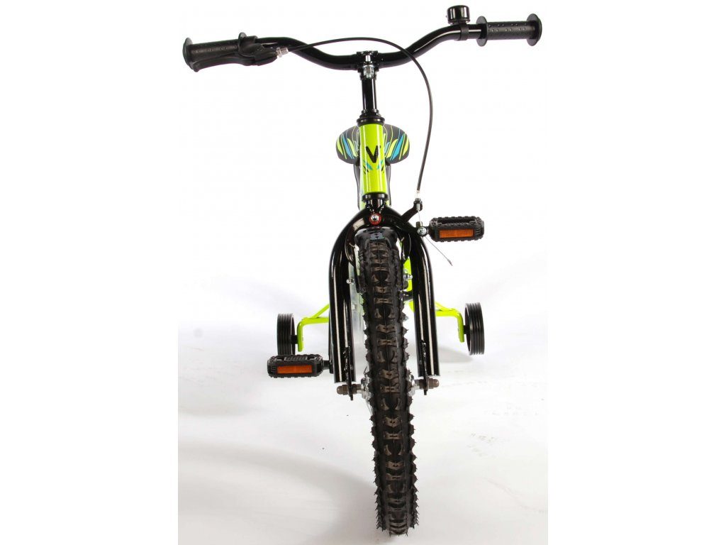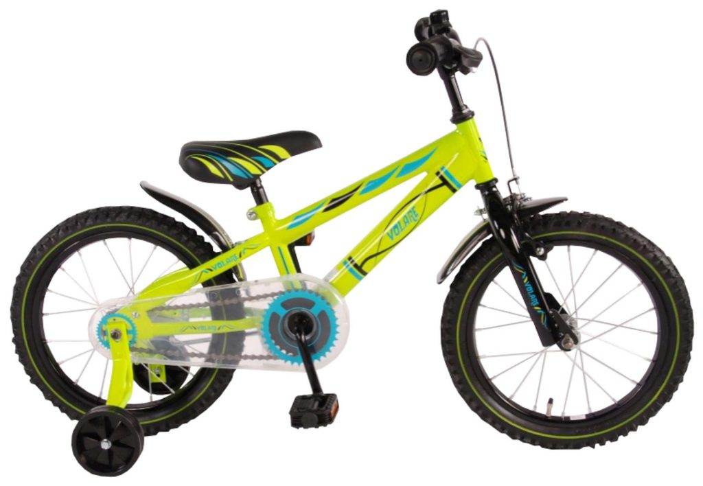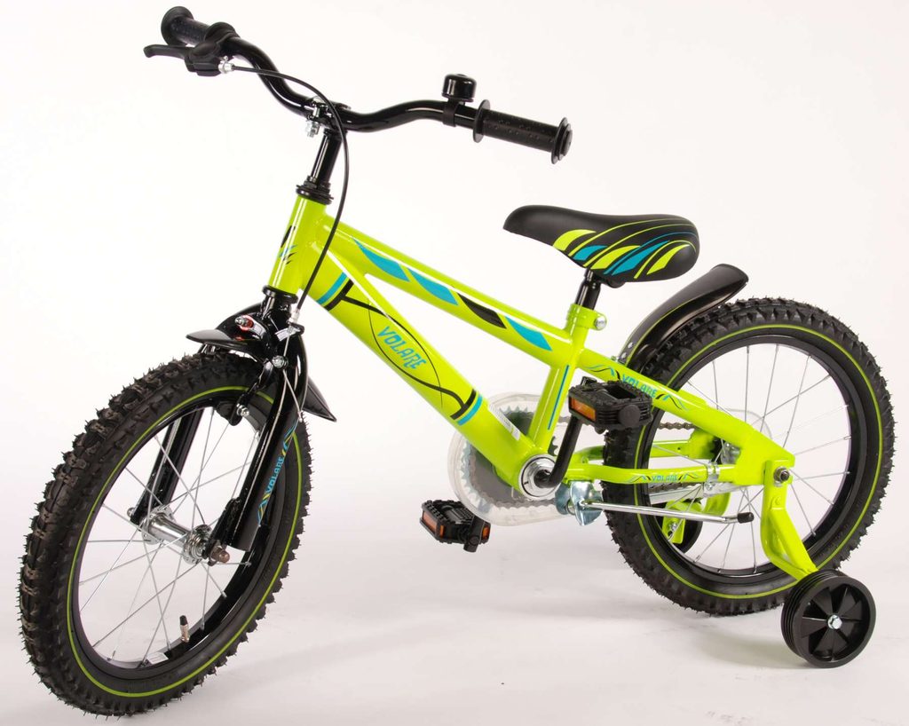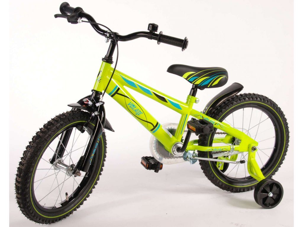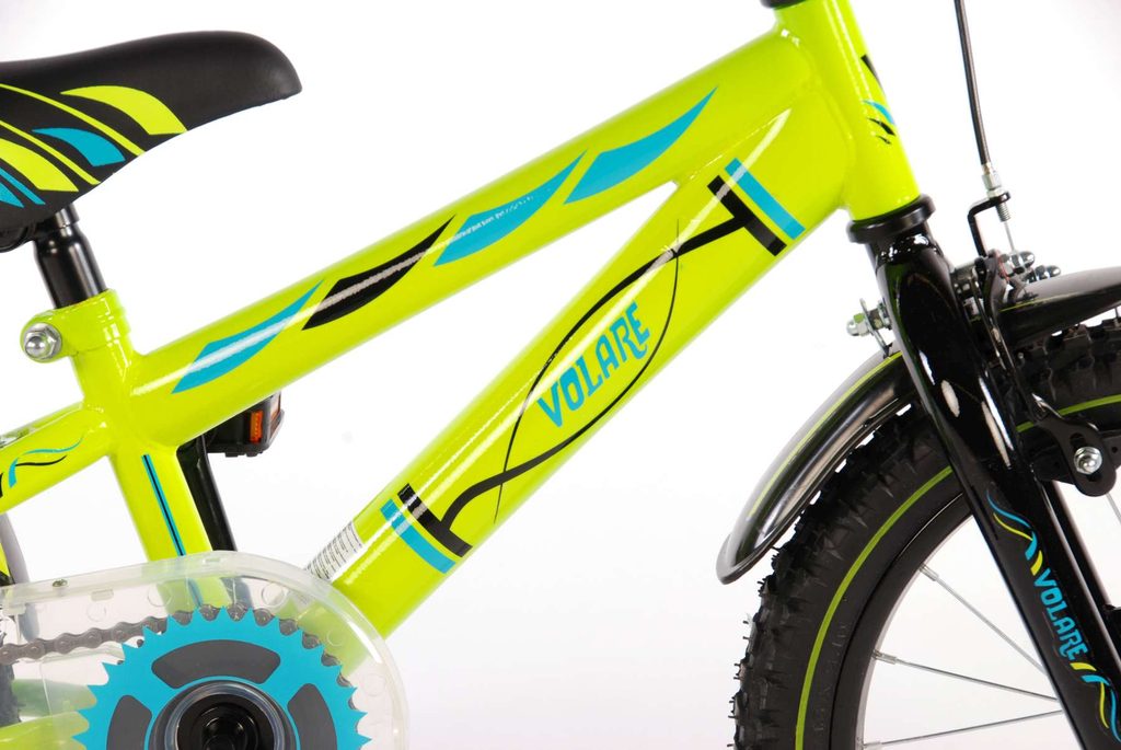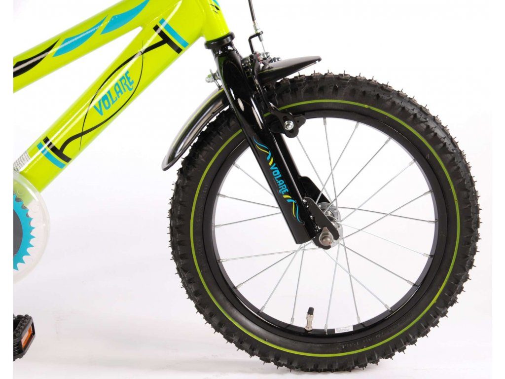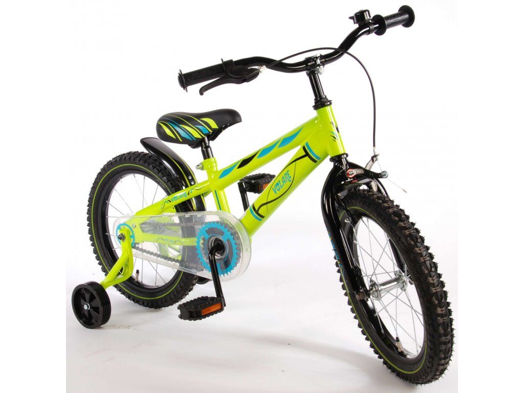 Originální dětské kolo od holandského výrobce Volare Electric Green s velikostí ráfků 16 palců je určeno pro děti ve věku od 4 do 6 let s výškou do 105 cm. Kolo je opatřeno demontovatelnými balančními kolečky, dítě se tedy bude cítit hned od první jízdy bezpečně a stabilně. Kolo je vybaveno 2 druhy brzd. Brždění probíhá buď protisměrnou zadní brzdou "torpédem",která možnuje brzdit zpětným záběrem pedálů nebo lze použít přední pákovou brzdu. Proti nechtěnému namotání nohavice nebo tkaničky do řetězu má kolo průhledný kryt, který zakrývá celý řetěz. Sedadlo i řídítka jsou výškově nastavitelné.