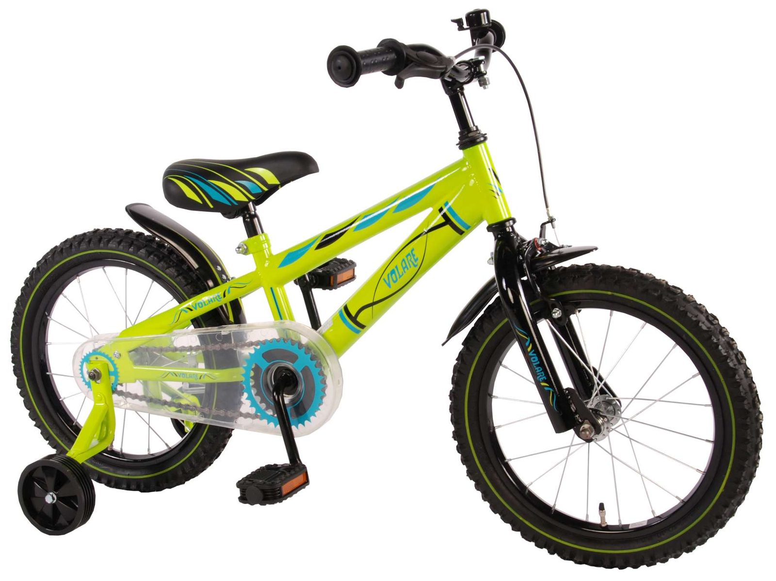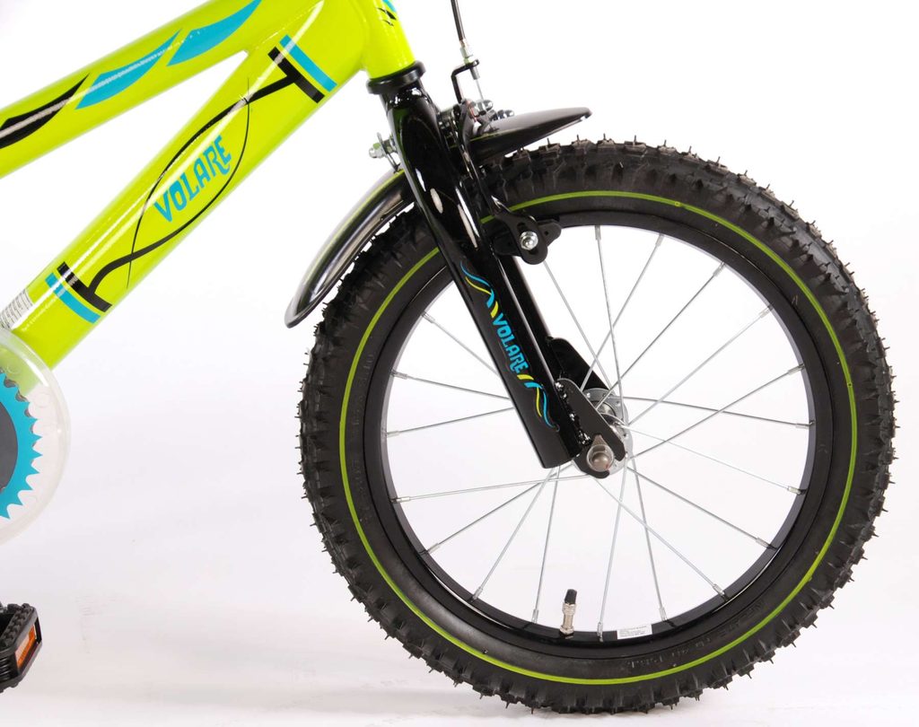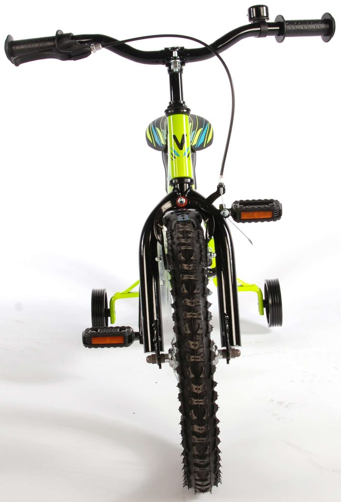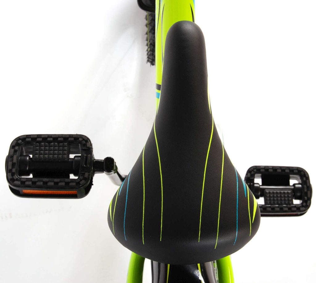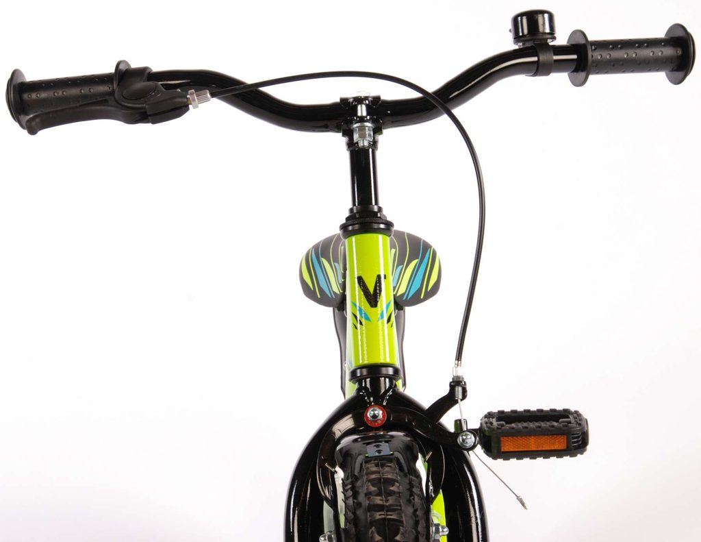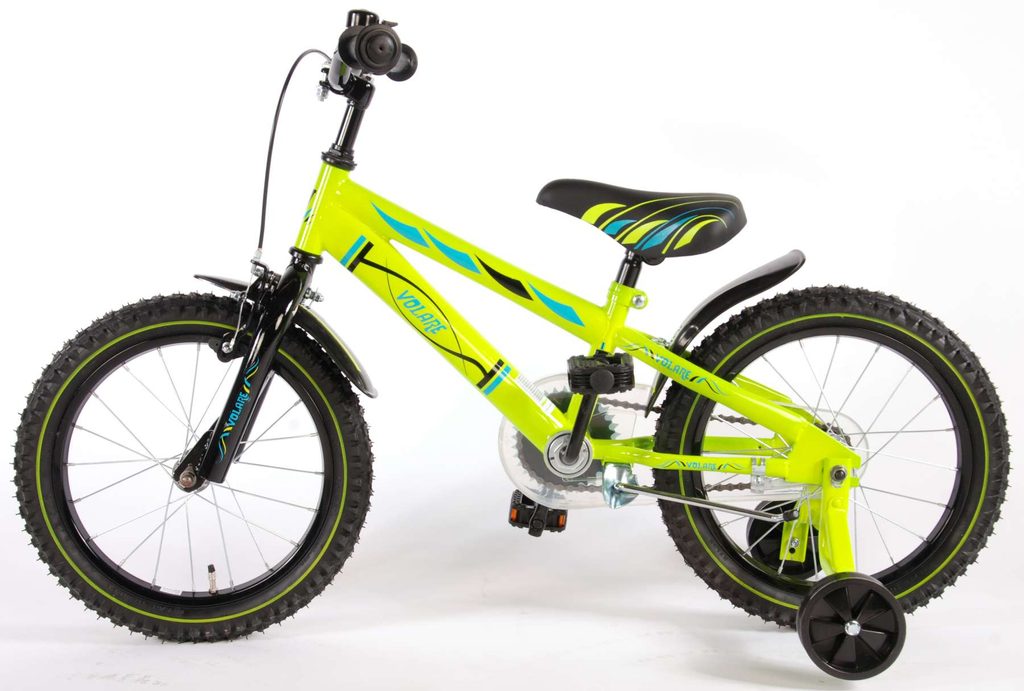 Originální dětské kolo od holandského výrobce Volare Electric Green s velikostí ráfků 16 palců je určeno pro děti ve věku od 4 do 6 let s výškou do 105 cm. Kolo je opatřeno demontovatelnými balančními kolečky, dítě se tedy bude cítit hned od první jízdy bezpečně a stabilně. Kolo je vybaveno 2 druhy brzd. Brždění probíhá buď protisměrnou zadní brzdou "torpédem",která možnuje brzdit zpětným záběrem pedálů nebo lze použít přední pákovou brzdu. Proti nechtěnému namotání nohavice nebo tkaničky do řetězu má kolo průhledný kryt, který zakrývá celý řetěz. Sedadlo i řídítka jsou výškově nastavitelné.