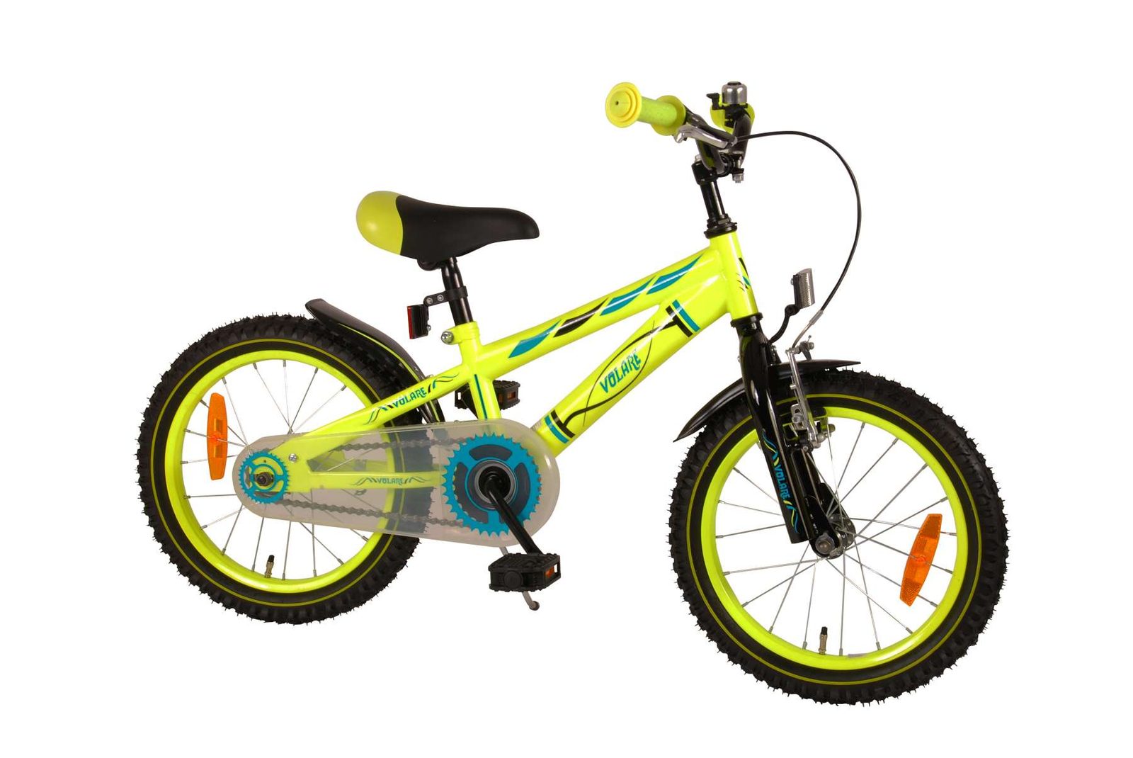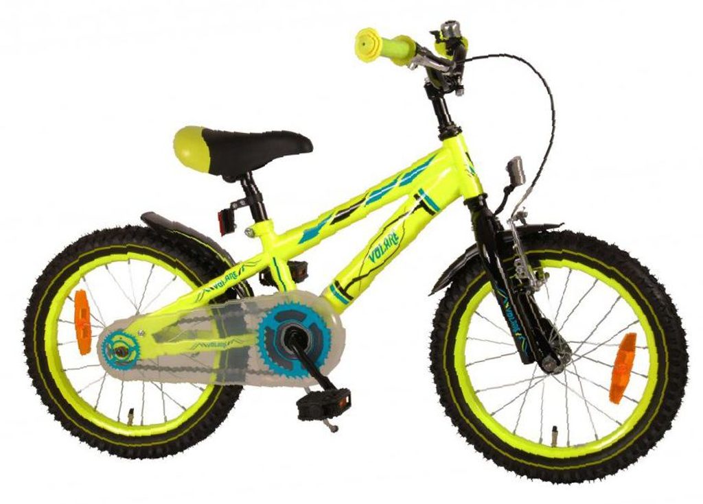 Originální dětské kolo od holandského výrobce Volare Electric Neon s velikostí ráfků 16 palců je určeno pro děti ve věku od 4 do 6 let s výškou do 105 cm. Kolo je vybaveno 2 druhy brzd. Brždění probíhá buď protisměrnou zadní brzdou "torpédem",která možnuje brzdit zpětným záběrem pedálů nebo lze použít přední pákovou brzdu. Proti nechtěnému namotání nohavice nebo tkaničky do řetězu má kolo průhledný kryt, který zakrývá celý řetěz. Sedadlo i řídítka jsou výškově nastavitelné.
