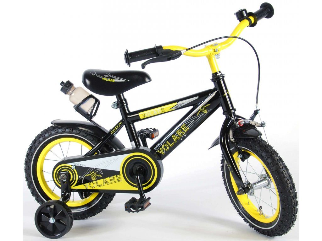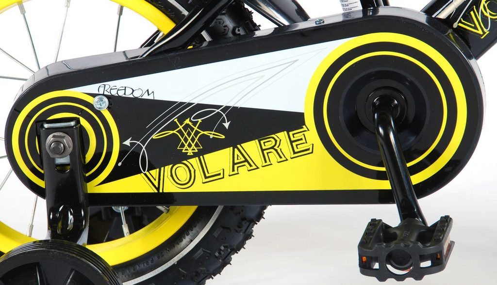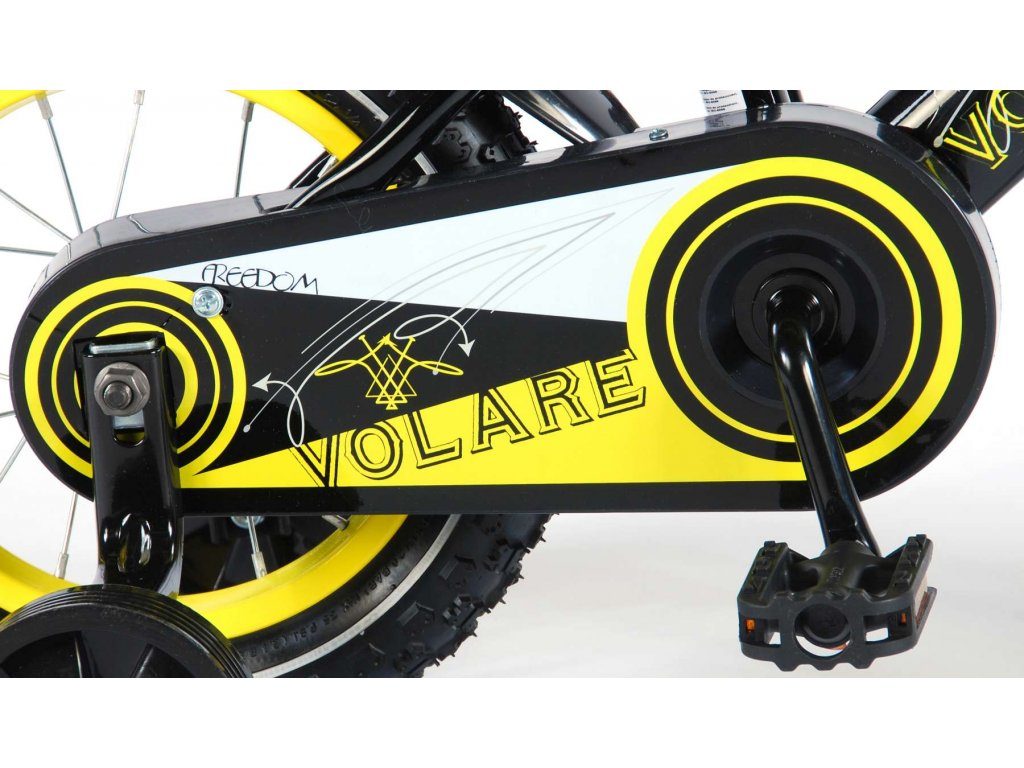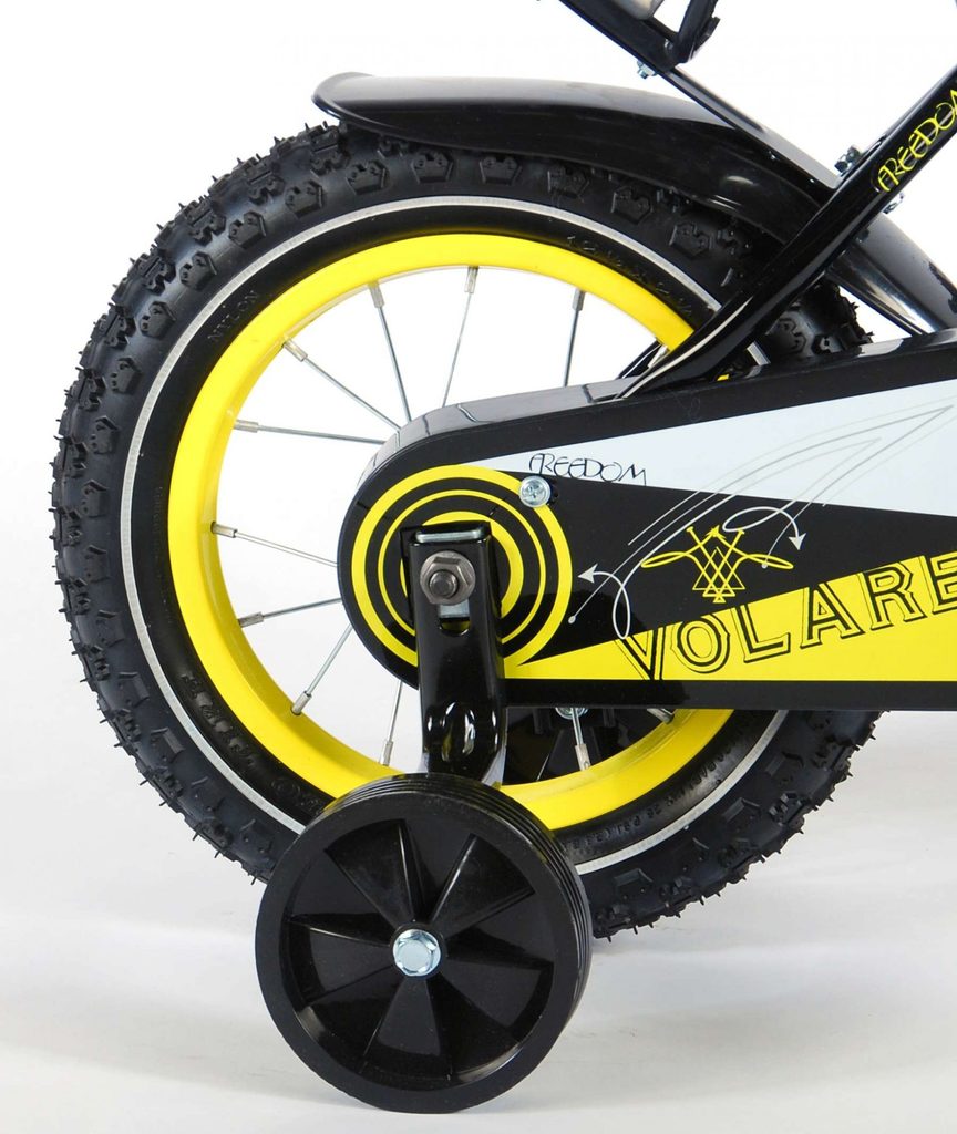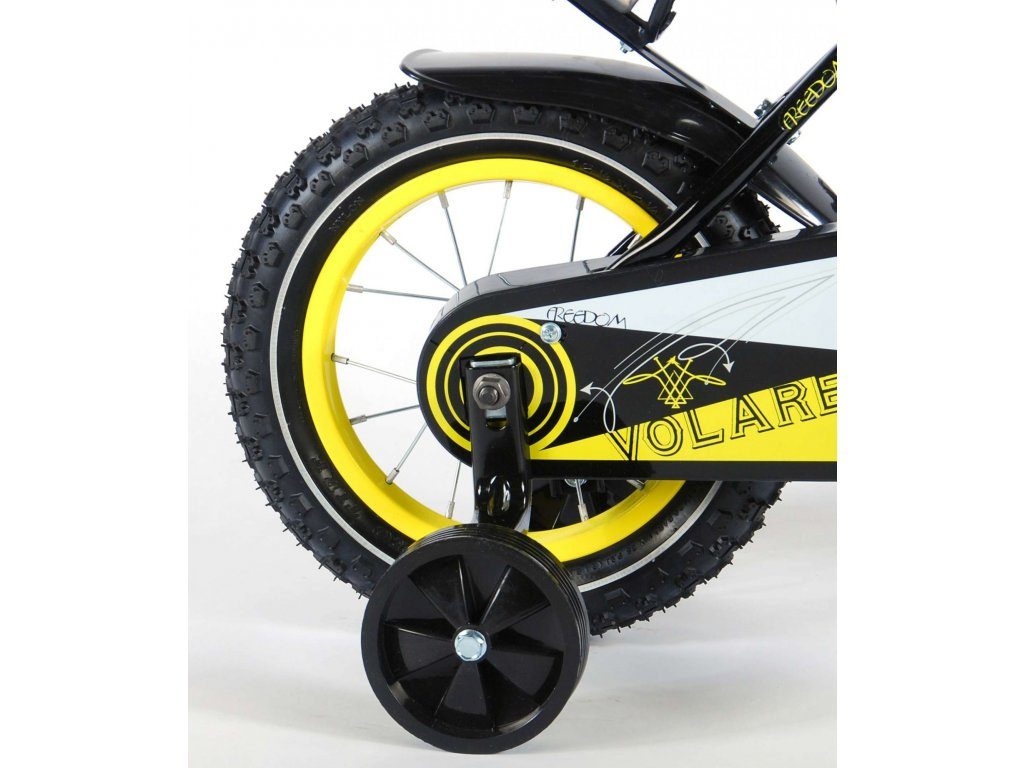 Originální dětské kolo od holandského výrobce Volare Freedom s velikostí ráfků 12 palců je určeno pro nejmenší děti ve věku od 3 do 4,5 let s výškou do 95 cm. Kolo je opatřeno demontovatelnými balančními kolečky, dítě se tedy bude cítit hned od první jízdy bezpečně a stabilně. Kolo je vybaveno 2 druhy brzd. Brždění probíhá buď protisměrnou zadní brzdou "torpédem",která možnuje brzdit zpětným záběrem pedálů nebo lze použít přední pákovou brzdu. Proti nechtěnému namotání nohavice nebo tkaničky do řetězu má kolo kryt s barevným potiskem, který zakrývá celý řetěz. Sedadlo i řídítka jsou výškově nastavitelné. Za sedadlem je umístěný nosič s lahví na pití.