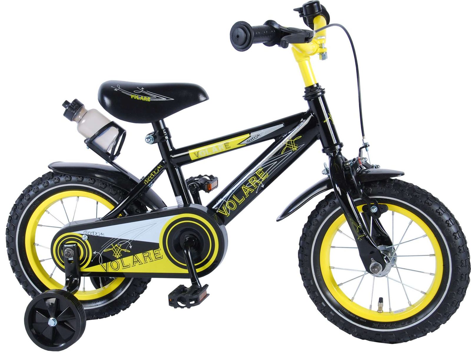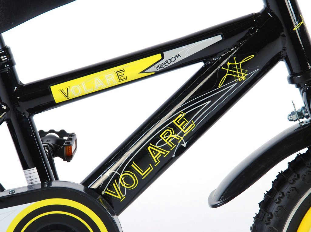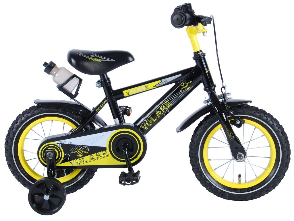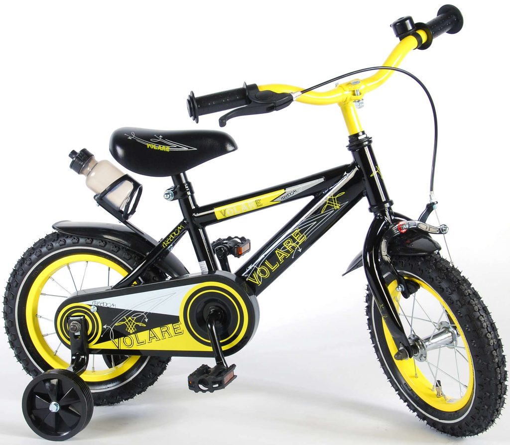 Originální dětské kolo od holandského výrobce Volare Freedom s velikostí ráfků 12 palců je určeno pro nejmenší děti ve věku od 3 do 4,5 let s výškou do 95 cm. Kolo je opatřeno demontovatelnými balančními kolečky, dítě se tedy bude cítit hned od první jízdy bezpečně a stabilně. Kolo je vybaveno 2 druhy brzd. Brždění probíhá buď protisměrnou zadní brzdou "torpédem",která možnuje brzdit zpětným záběrem pedálů nebo lze použít přední pákovou brzdu. Proti nechtěnému namotání nohavice nebo tkaničky do řetězu má kolo kryt s barevným potiskem, který zakrývá celý řetěz. Sedadlo i řídítka jsou výškově nastavitelné. Za sedadlem je umístěný nosič s lahví na pití.