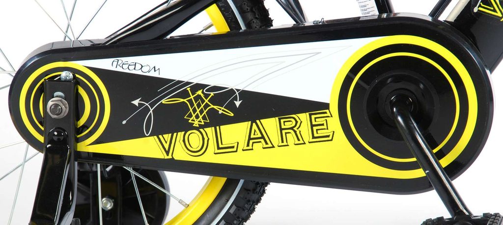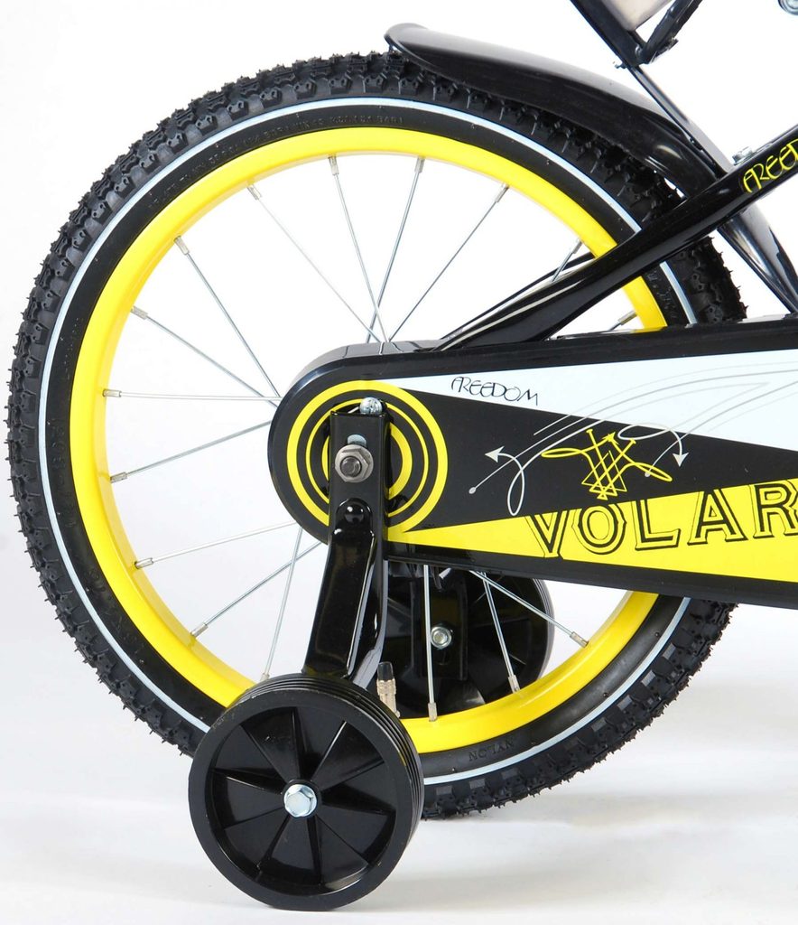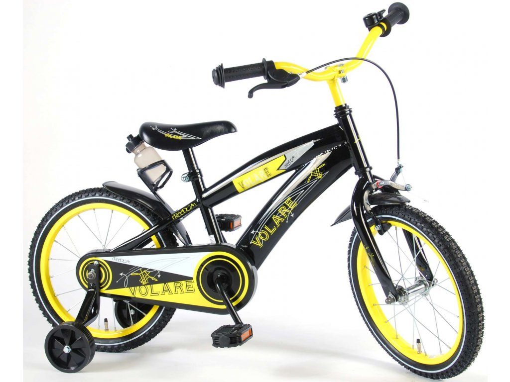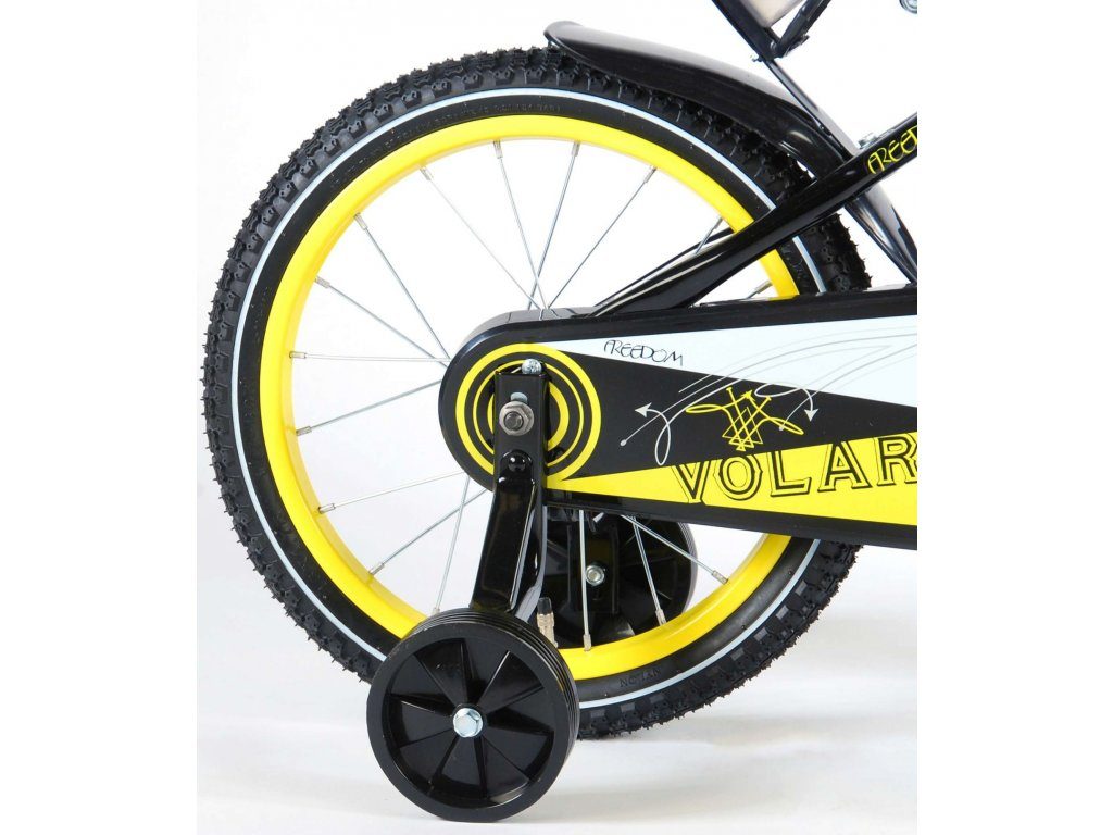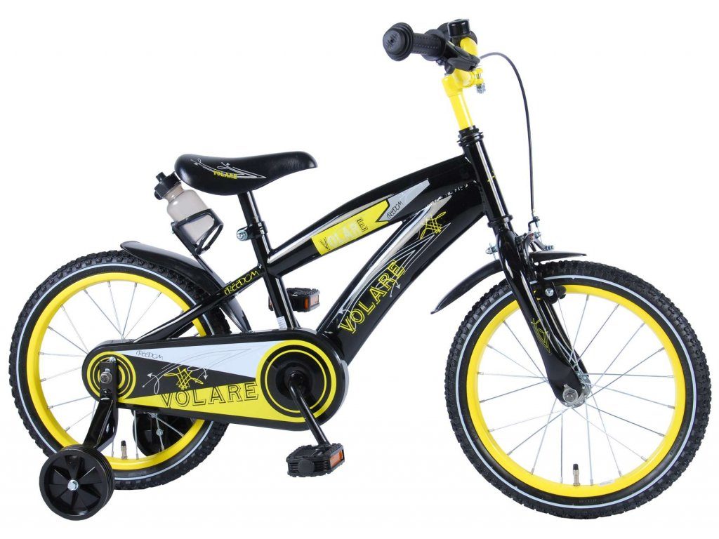 Originální dětské kolo od holandského výrobce Volare Freedom s velikostí ráfků 16 palců je určeno pro děti ve věku od 4 do 6 let s výškou do 105 cm. Kolo je opatřeno demontovatelnými balančními kolečky, dítě se tedy bude cítit hned od první jízdy bezpečně a stabilně. Kolo je vybaveno 2 druhy brzd. Brždění probíhá buď protisměrnou zadní brzdou "torpédem",která možnuje brzdit zpětným záběrem pedálů nebo lze použít přední pákovou brzdu. Proti nechtěnému namotání nohavice nebo tkaničky do řetězu má kolo kryt s barevným potiskem, který zakrývá celý řetěz. Sedadlo i řídítka jsou výškově nastavitelné. Za sedadlem je umístěný nosič s lahví na pití.