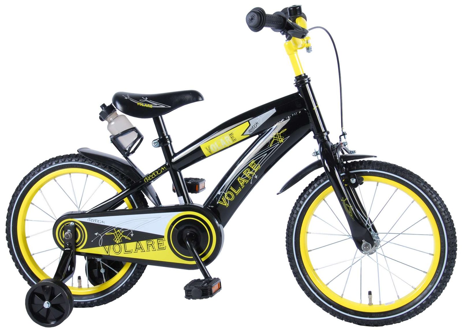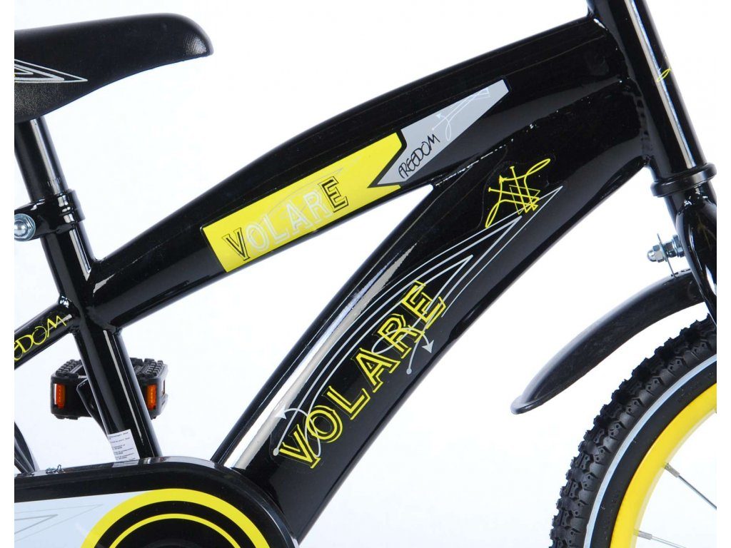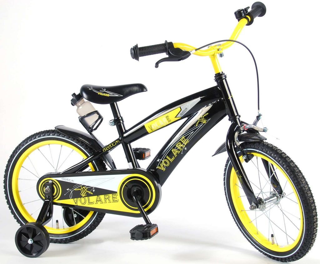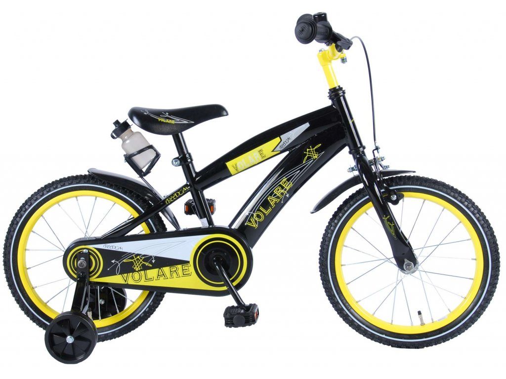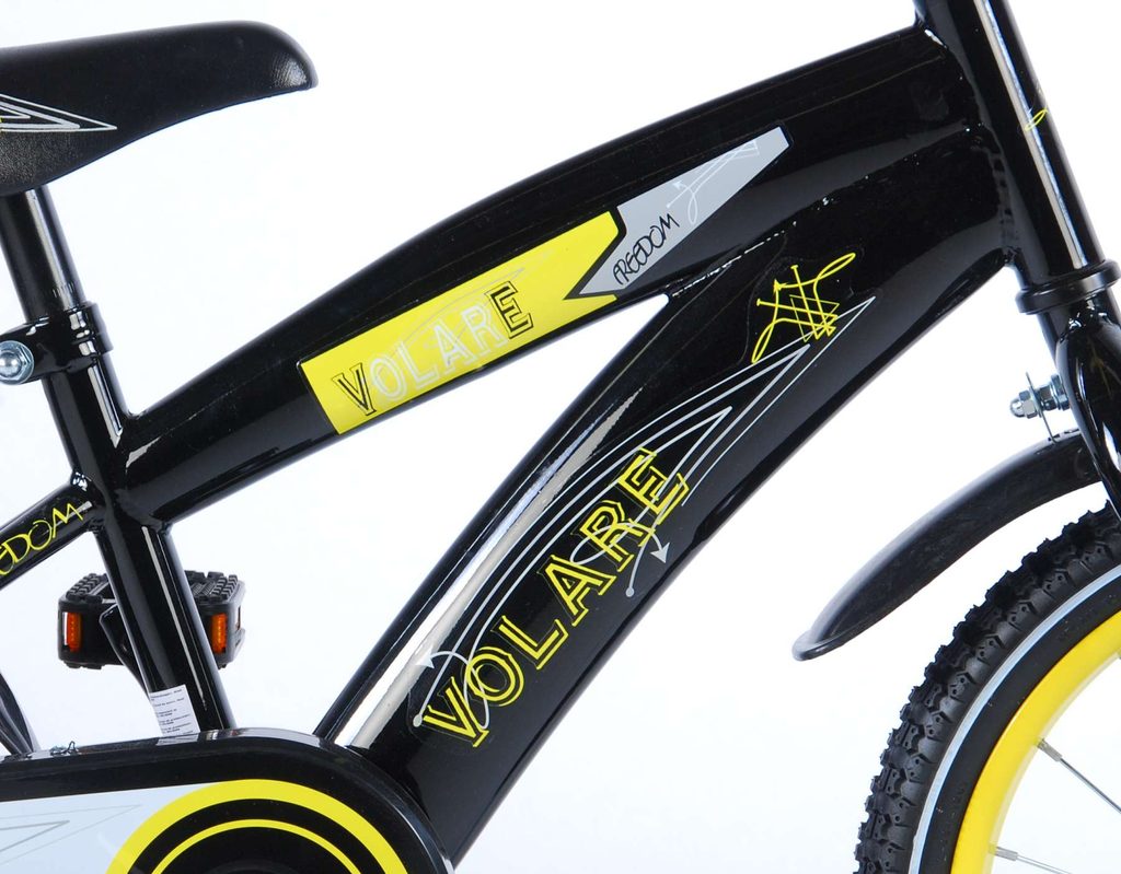 Originální dětské kolo od holandského výrobce Volare Freedom s velikostí ráfků 16 palců je určeno pro děti ve věku od 4 do 6 let s výškou do 105 cm. Kolo je opatřeno demontovatelnými balančními kolečky, dítě se tedy bude cítit hned od první jízdy bezpečně a stabilně. Kolo je vybaveno 2 druhy brzd. Brždění probíhá buď protisměrnou zadní brzdou "torpédem",která možnuje brzdit zpětným záběrem pedálů nebo lze použít přední pákovou brzdu. Proti nechtěnému namotání nohavice nebo tkaničky do řetězu má kolo kryt s barevným potiskem, který zakrývá celý řetěz. Sedadlo i řídítka jsou výškově nastavitelné. Za sedadlem je umístěný nosič s lahví na pití.