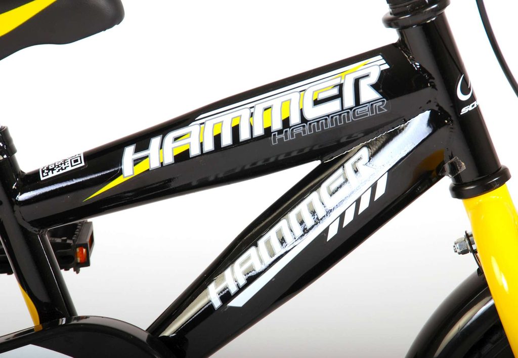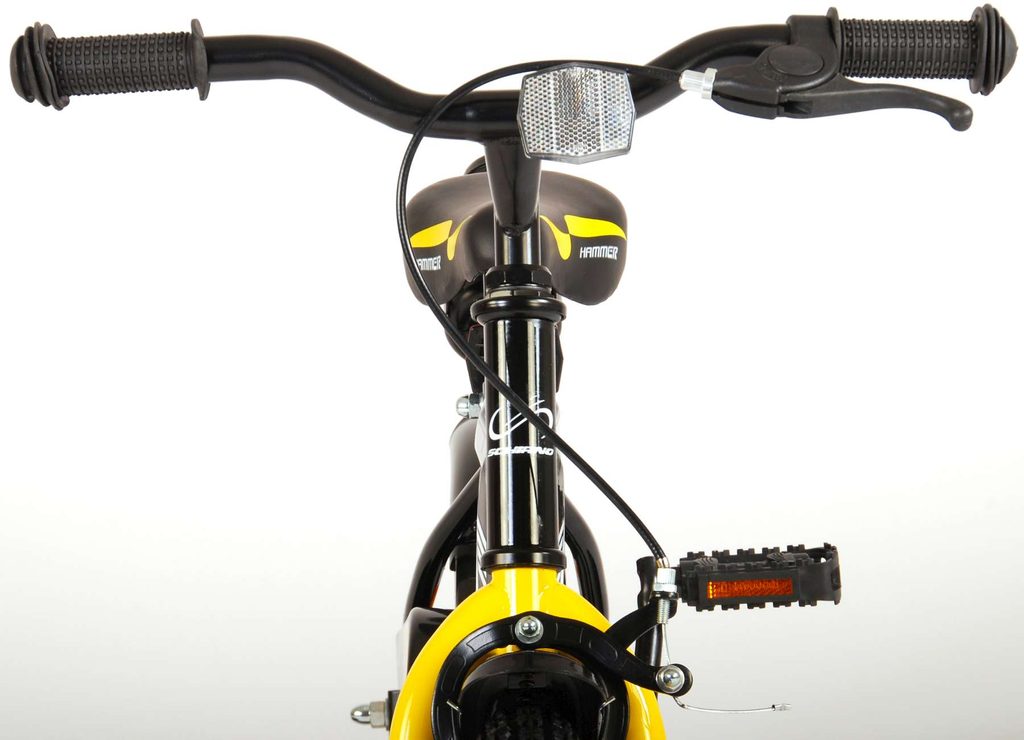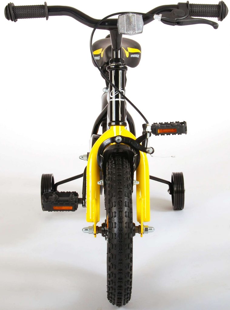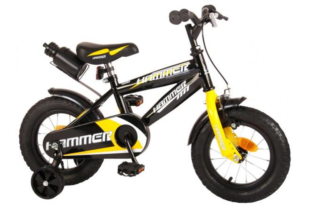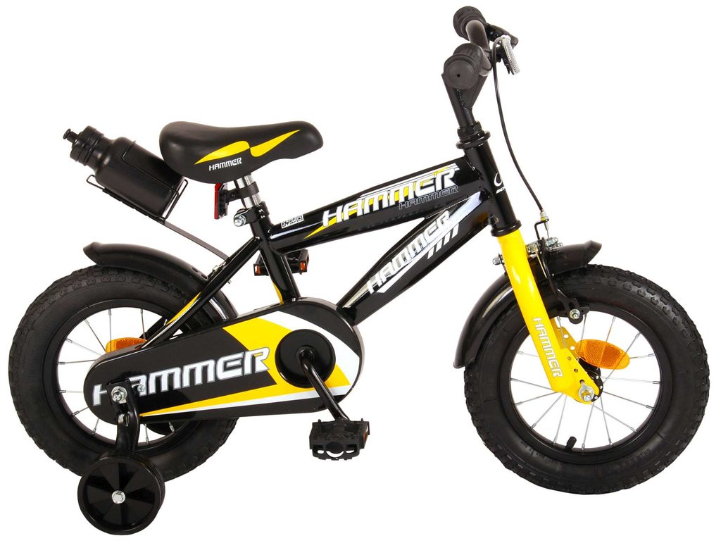 Originální dětské kolo od holandského výrobce Volare Hammer Yellow s velikostí ráfků 12 palců je určeno pro nejmenší děti ve věku od 3 do 4,5 let s výškou do 95 cm. Kolo je opatřeno demontovatelnými balančními kolečky, dítě se tedy bude cítit hned od první jízdy bezpečně a stabilně. Kolo je vybaveno 2 druhy brzd. Brždění probíhá buď protisměrnou zadní brzdou "torpédem", která umožnuje brzdit zpětným záběrem pedálů nebo lze použít přední pákovou brzdu. Proti nechtěnému namotání nohavice nebo tkaničky do řetězu má kolo kryt s barevným potiskem, který zakrývá celý řetěz. Sedadlo i řídítka jsou výškově nastavitelné. Za sedadlem je umístěný nosič s lahví na pití.