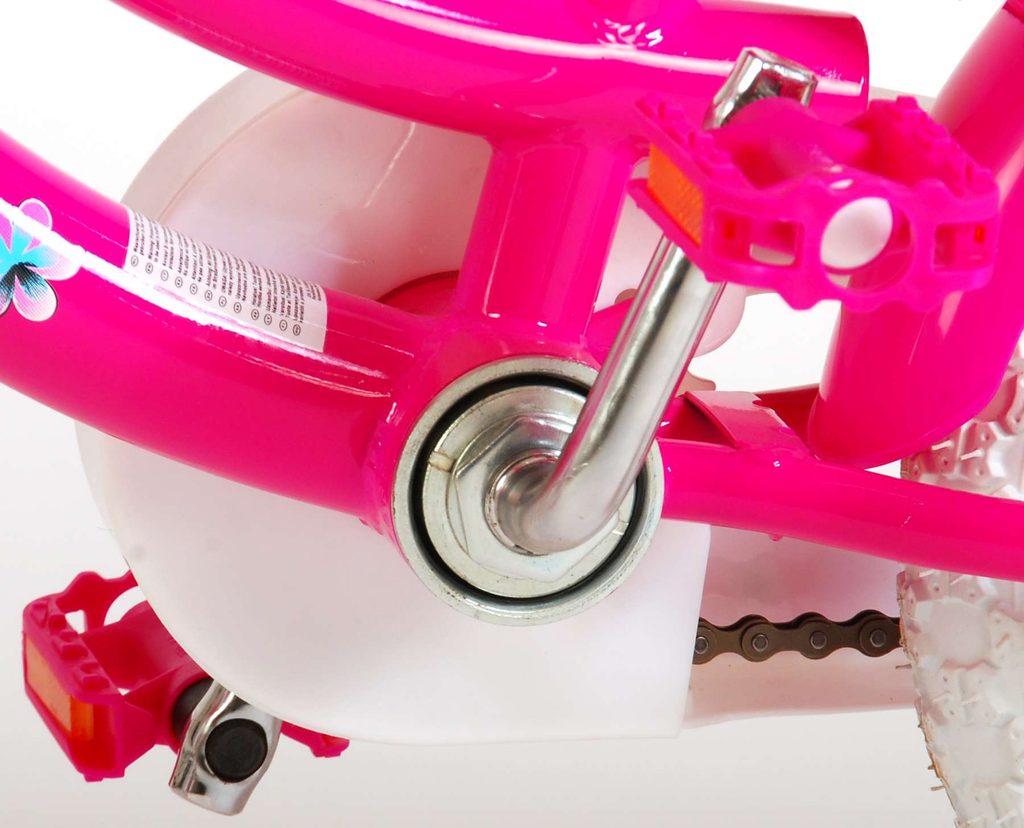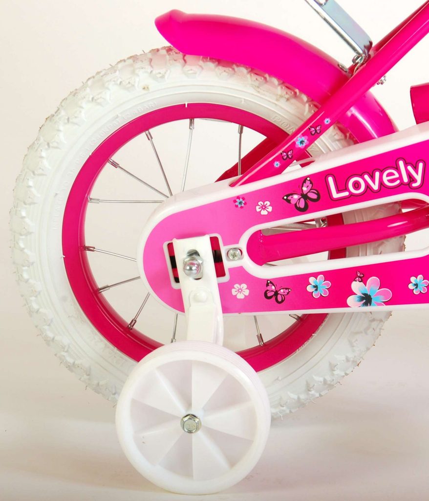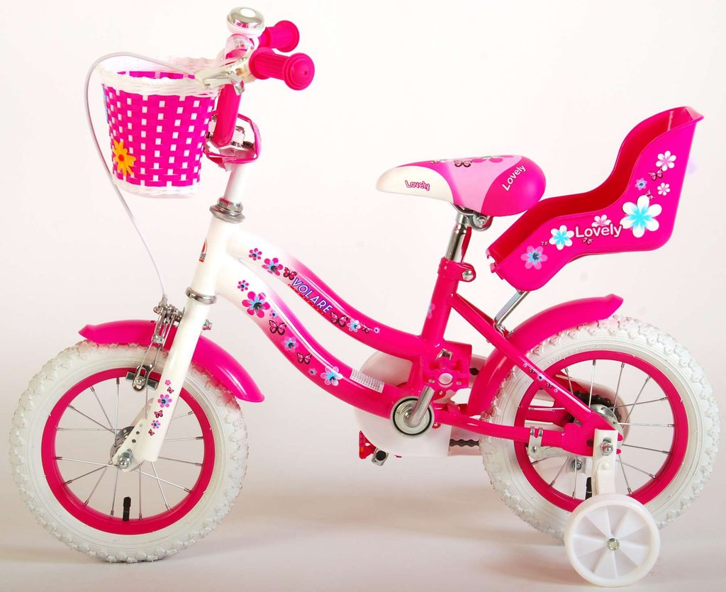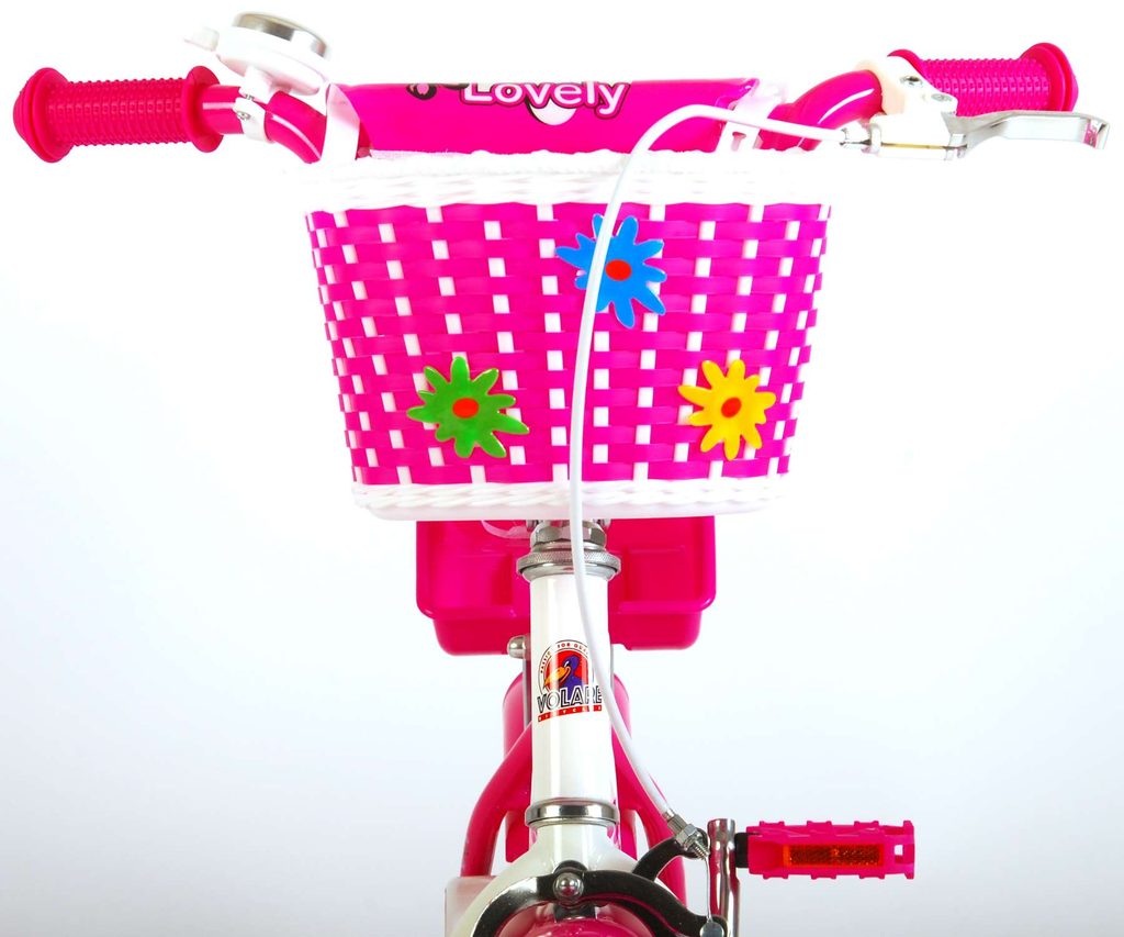 Originální dětské kolo od holandského výrobce Volare Lovely s velikostí ráfků 12 palců je určeno pro nejmenší děti ve věku od 3 do 4 let s výškou do 95 cm. Kolo je opatřeno demontovatelnými balančními kolečky, dítě se tedy bude cítit hned od první jízdy bezpečně a stabilně. Kolo je vybaveno 2 druhy brzd. Brždění probíhá buď protisměrnou zadní brzdou "torpédem", která umožnuje brzdit zpětným záběrem pedálů nebo lze použít přední pákovou brzdu. Proti nechtěnému namotání nohavice nebo tkaničky do řetězu má kolo kryt s barevným potiskem, který zakrývá celý řetěz. Sedadlo i řídítka jsou výškově nastavitelné. Na řídítkách je umístěn plastový košíček. V zadní části je připevněný nosič na panenku.
