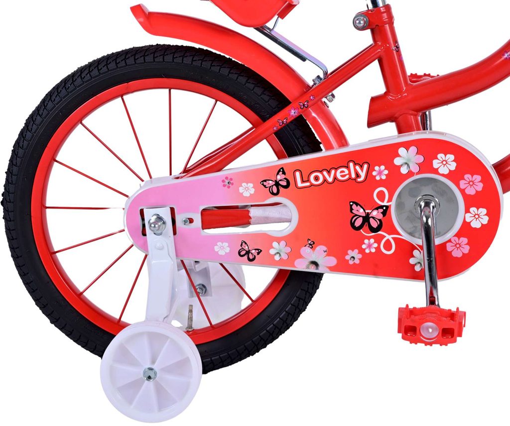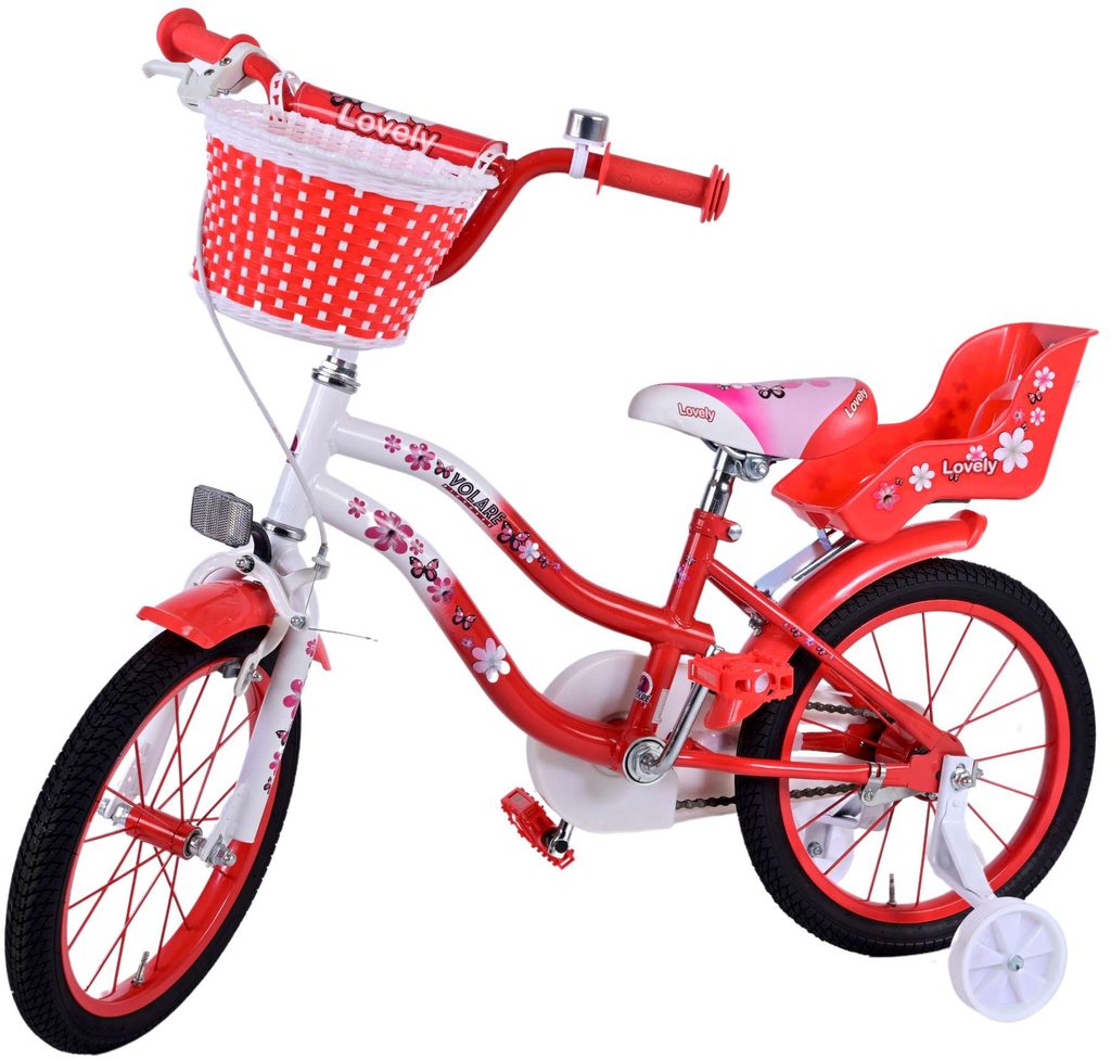 Originální dětské kolo od holandského výrobce Volare Lovely s velikostí ráfků 16 palců je určeno pro děti ve věku od 4 do 6 let s výškou do 105 cm. Kolo je opatřeno demontovatelnými balančními kolečky, dítě se tedy bude cítit hned od první jízdy bezpečně a stabilně. Kolo je vybaveno 2 druhy brzd. Brždění probíhá buď protisměrnou zadní brzdou "torpédem", která umožnuje brzdit zpětným záběrem pedálů nebo lze použít přední pákovou brzdu. Proti nechtěnému namotání nohavice nebo tkaničky do řetězu má kolo kryt s barevným potiskem, který zakrývá celý řetěz. Sedadlo i řídítka jsou výškově nastavitelné. Na řídítkách je umístěn košíček a zvonek. V zadní části je připevněný nosič na panenky.