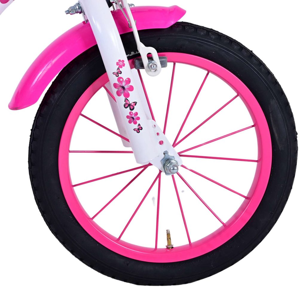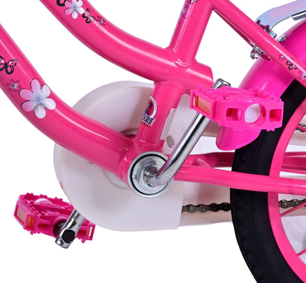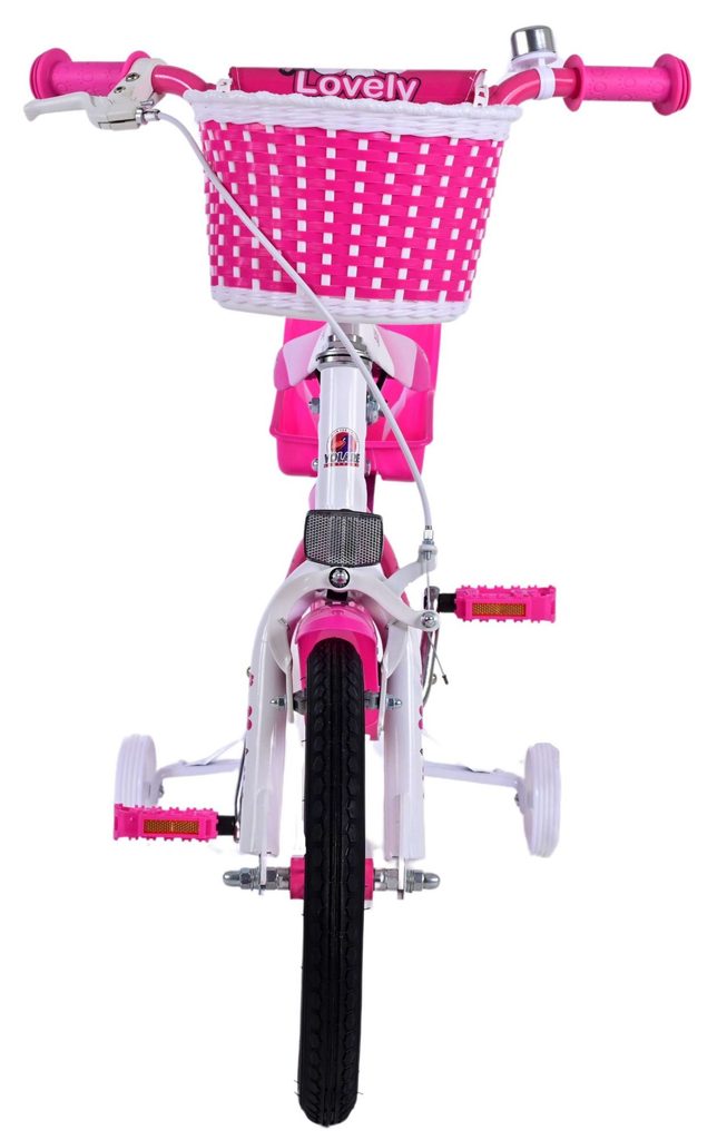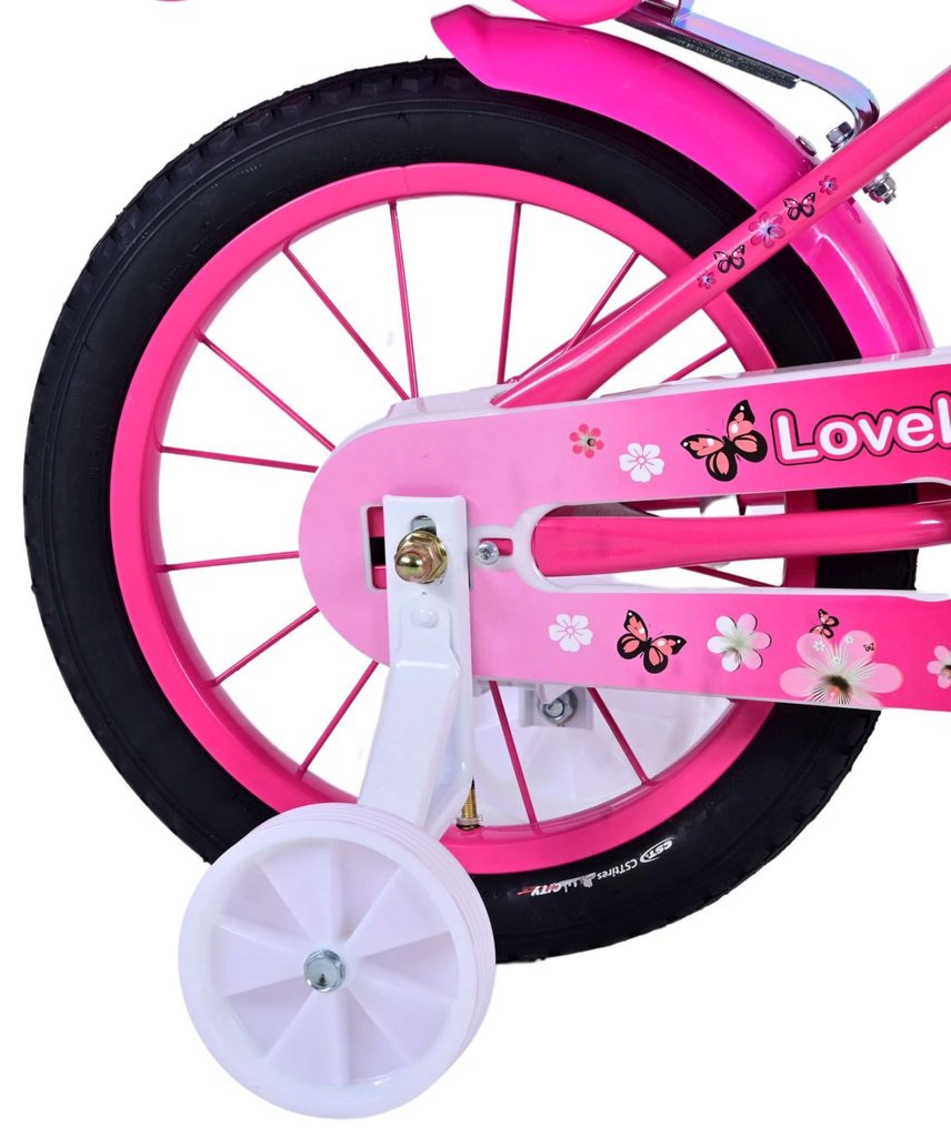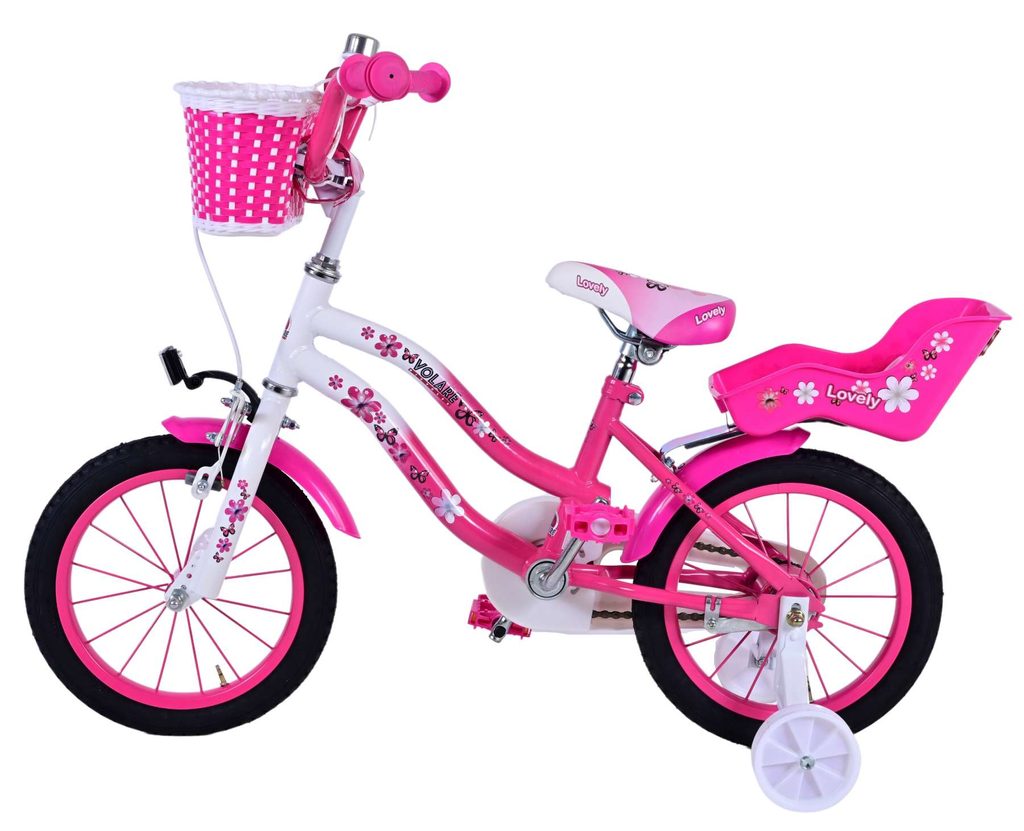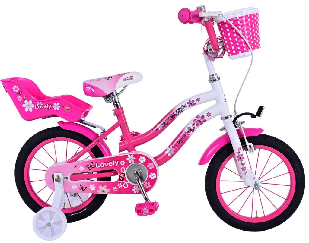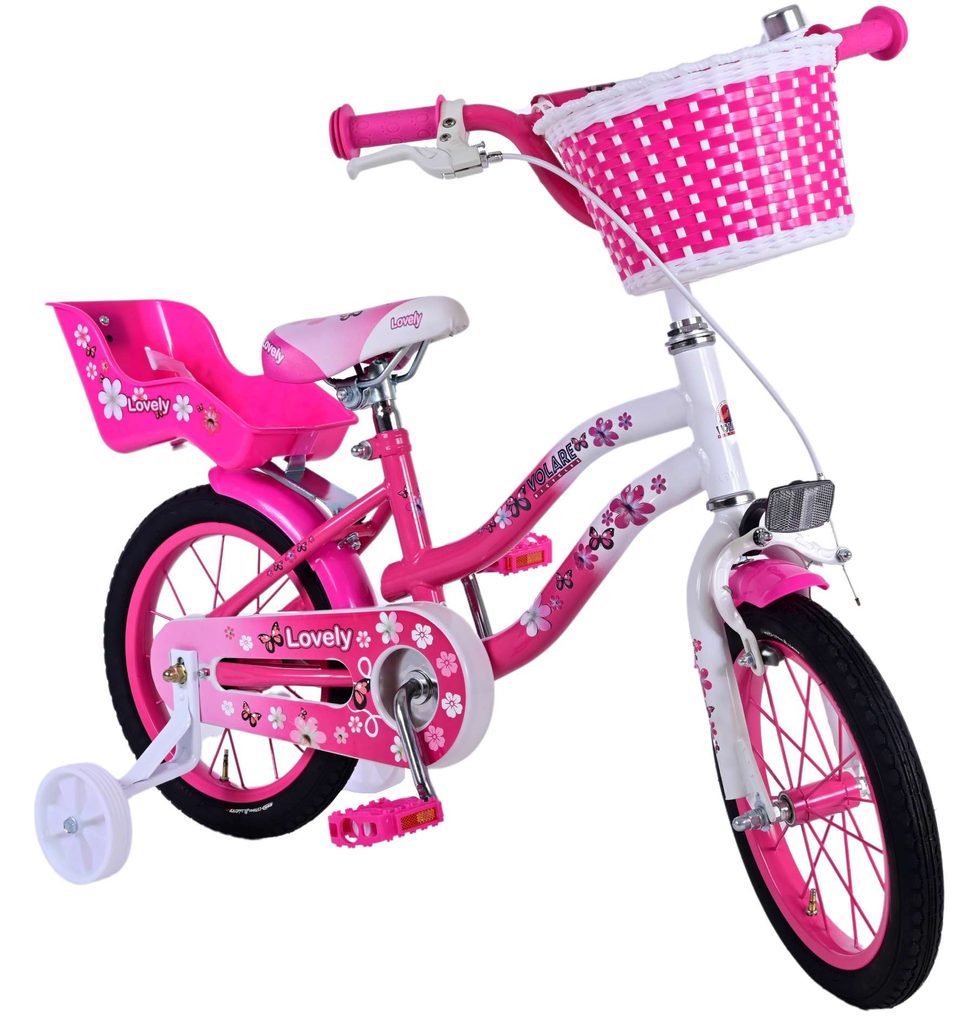 Originální dětské kolo od holandského výrobce Volare Lovely s velikostí ráfků 14 palců je určeno pro děti ve věku od 3,5 do 5 let s výškou do 100 cm. Kolo je opatřeno demontovatelnými balančními kolečky, dítě se tedy bude cítit hned od první jízdy bezpečně a stabilně. Kolo je vybaveno 2 druhy brzd. Brždění probíhá buď protisměrnou zadní brzdou "torpédem", která umožnuje brzdit zpětným záběrem pedálů nebo lze použít přední pákovou brzdu. Proti nechtěnému namotání nohavice nebo tkaničky do řetězu má kolo kryt s barevným potiskem, který zakrývá celý řetěz. Sedadlo i řídítka jsou výškově nastavitelné. Na řídítkách je umístěn plastový košíček. V zadní části je připevněný nosič na panenku.