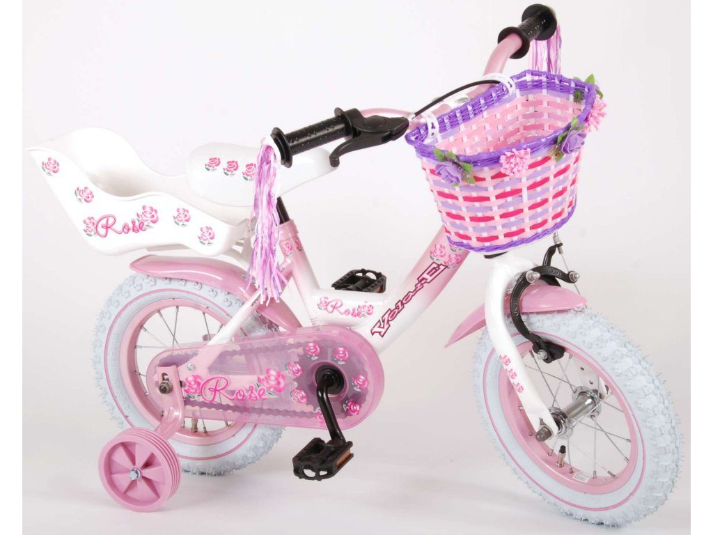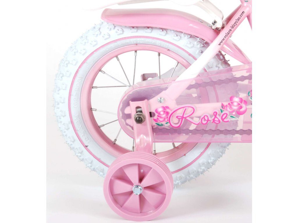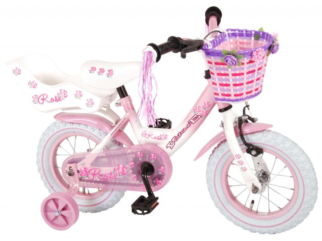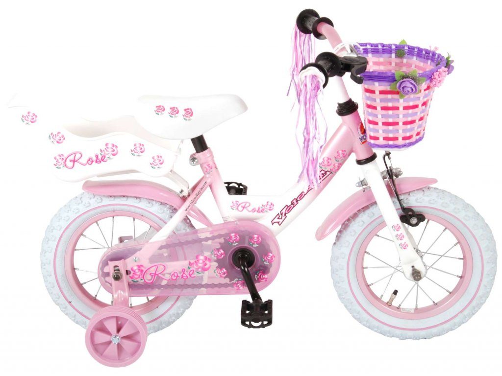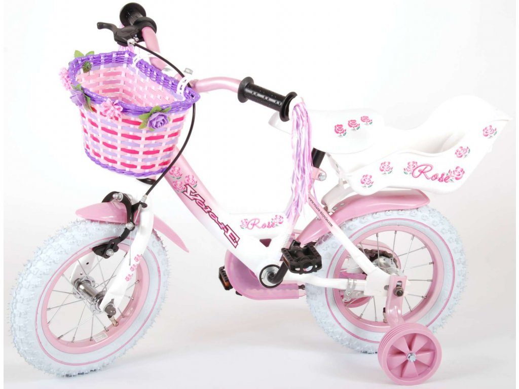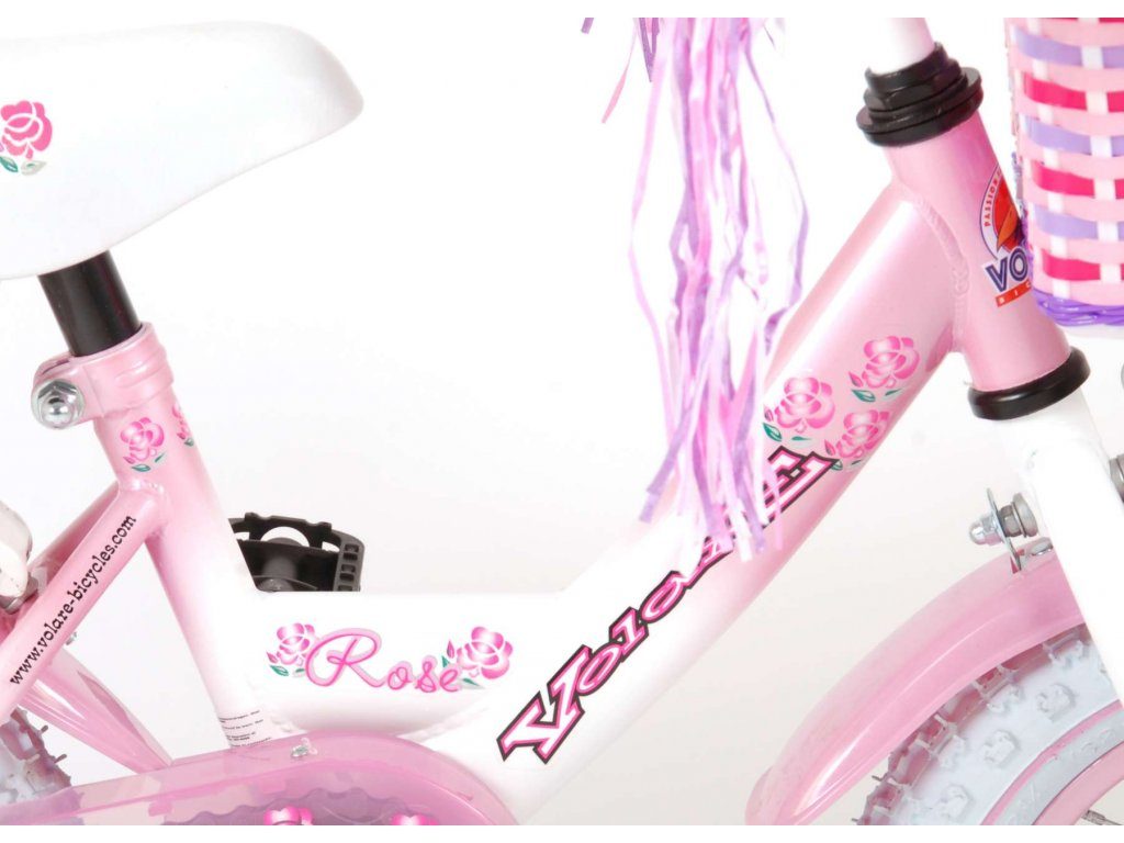 Originální dětské kolo od holandského výrobce Volare NewRose s velikostí ráfků 12 palců je určeno pro nejmenší děti ve věku od 3 do 4 let s výškou do 95 cm. Kolo je opatřeno demontovatelnými balančními kolečky, dítě se tedy bude cítit hned od první jízdy bezpečně a stabilně. Kolo je vybaveno 2 druhy brzd. Brždění probíhá buď protisměrnou zadní brzdou "torpédem", která možnuje brzdit zpětným záběrem pedálů nebo lze použít přední pákovou brzdu. Proti nechtěnému namotání nohavice nebo tkaničky do řetězu má kolo kryt s barevným potiskem, který zakrývá celý řetěz. Sedadlo i řídítka jsou výškově nastavitelné. Na řídítkách je plastový košíček na drobnosti.