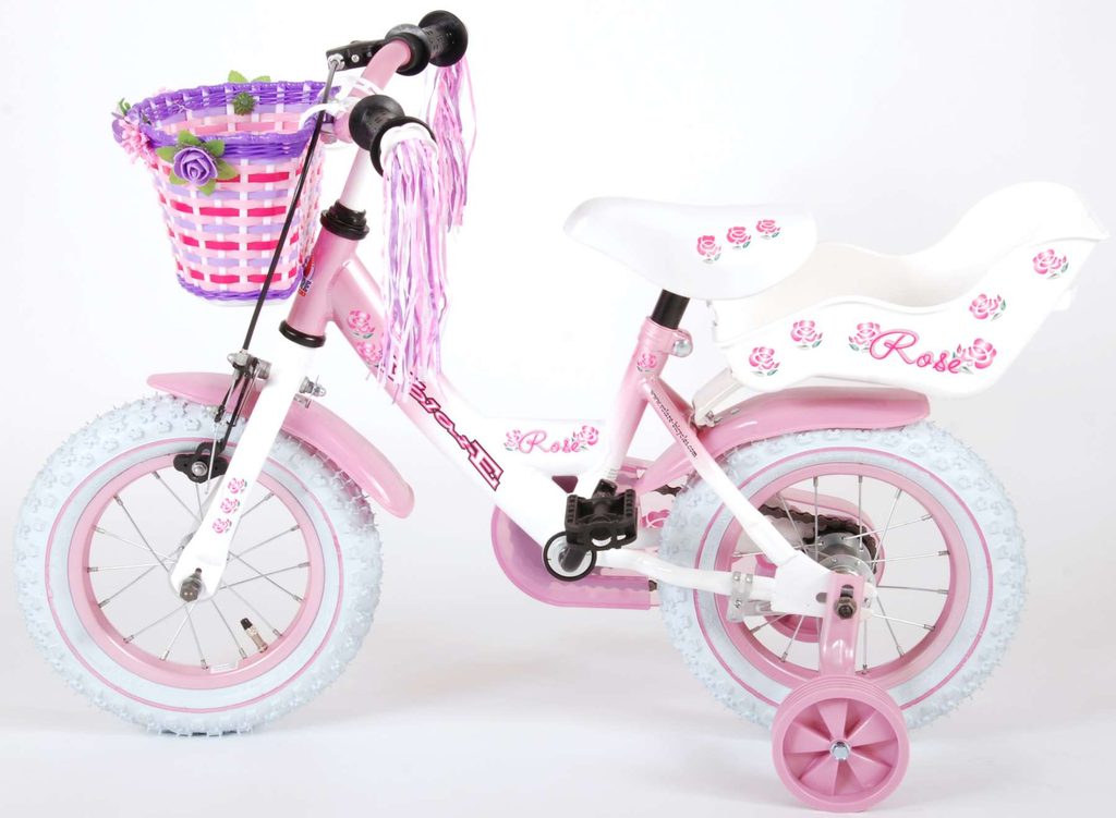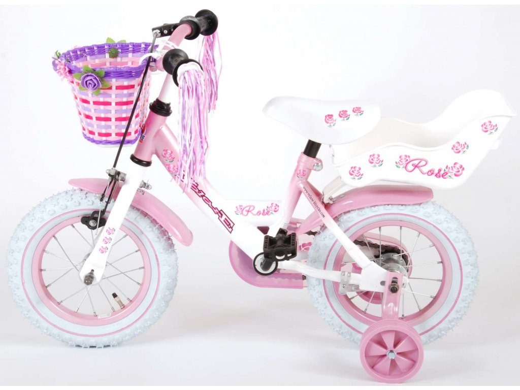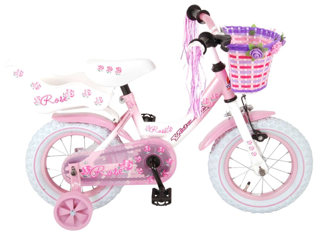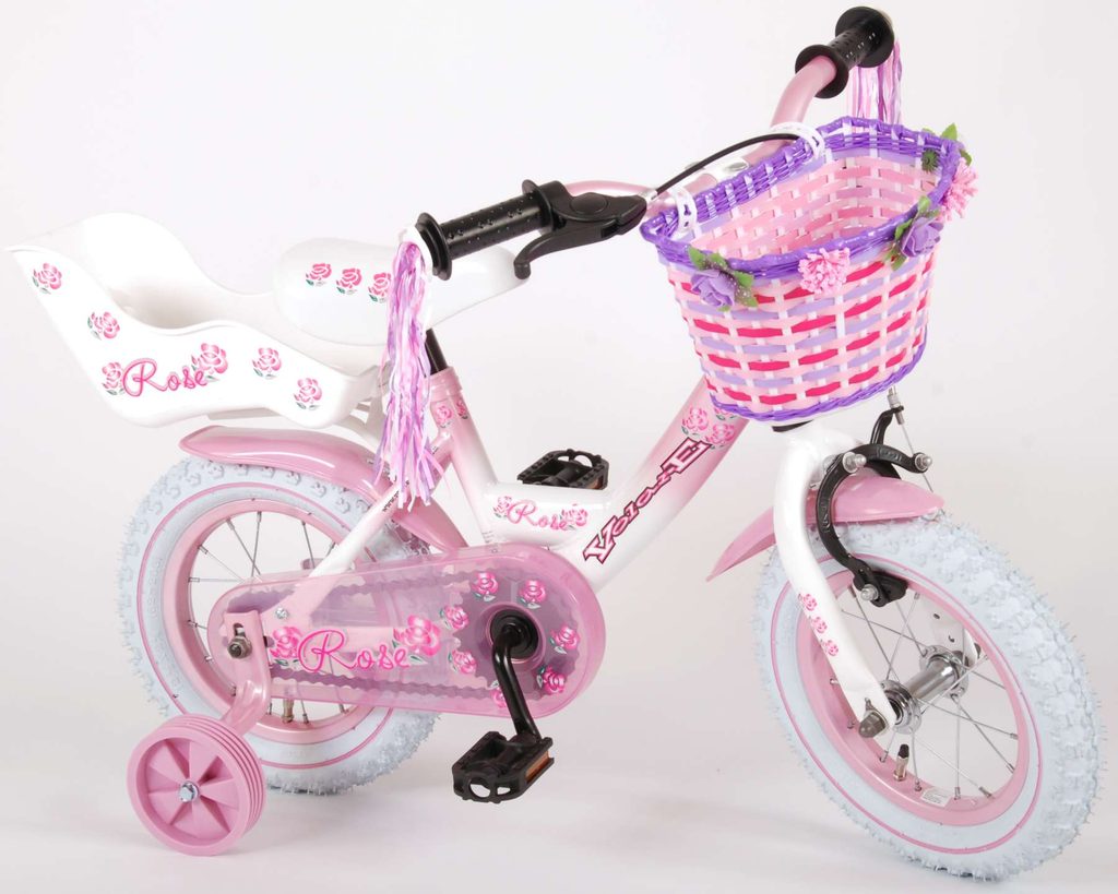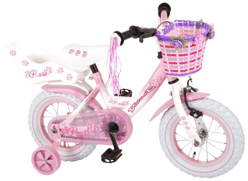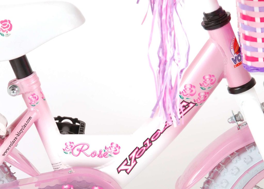 Originální dětské kolo od holandského výrobce Volare NewRose s velikostí ráfků 12 palců je určeno pro nejmenší děti ve věku od 3 do 4 let s výškou do 95 cm. Kolo je opatřeno demontovatelnými balančními kolečky, dítě se tedy bude cítit hned od první jízdy bezpečně a stabilně. Kolo je vybaveno 2 druhy brzd. Brždění probíhá buď protisměrnou zadní brzdou "torpédem", která možnuje brzdit zpětným záběrem pedálů nebo lze použít přední pákovou brzdu. Proti nechtěnému namotání nohavice nebo tkaničky do řetězu má kolo kryt s barevným potiskem, který zakrývá celý řetěz. Sedadlo i řídítka jsou výškově nastavitelné. Na řídítkách je plastový košíček na drobnosti.