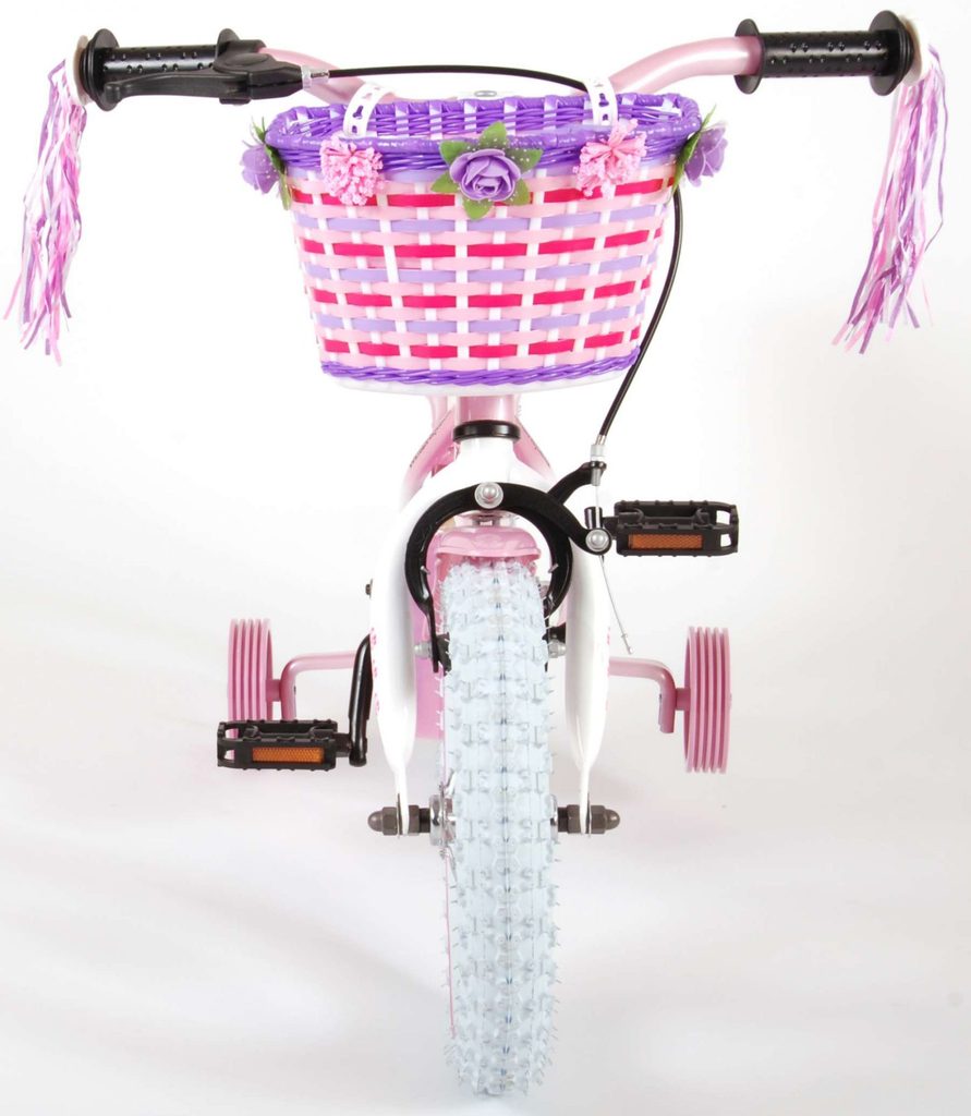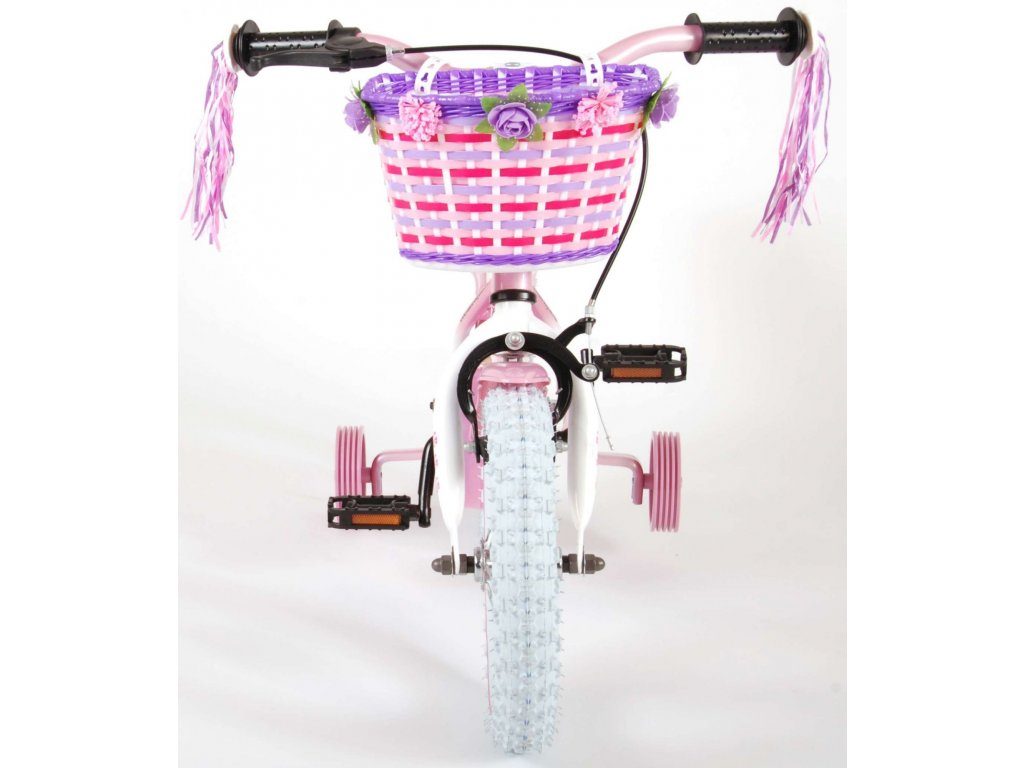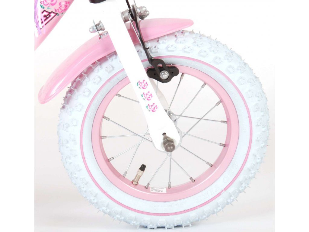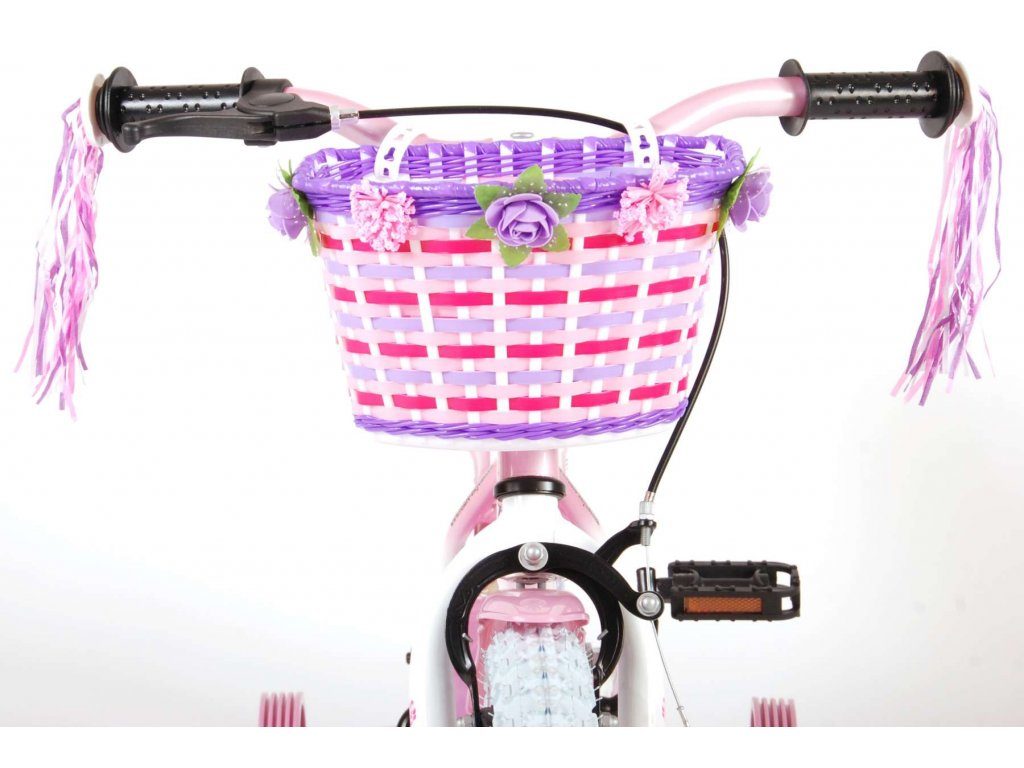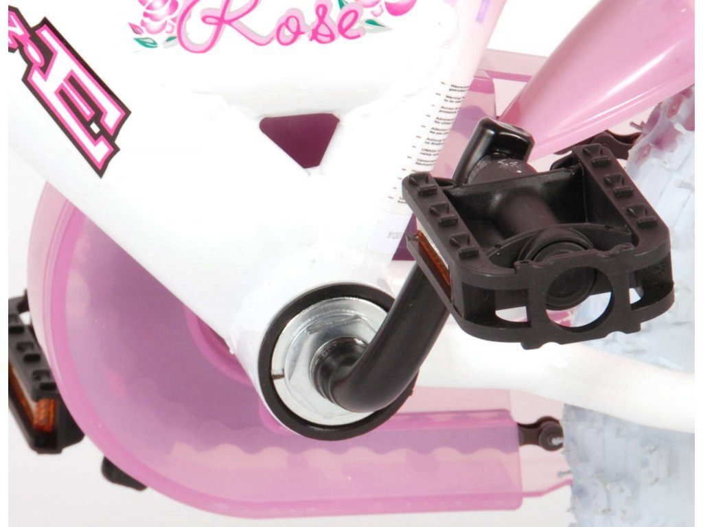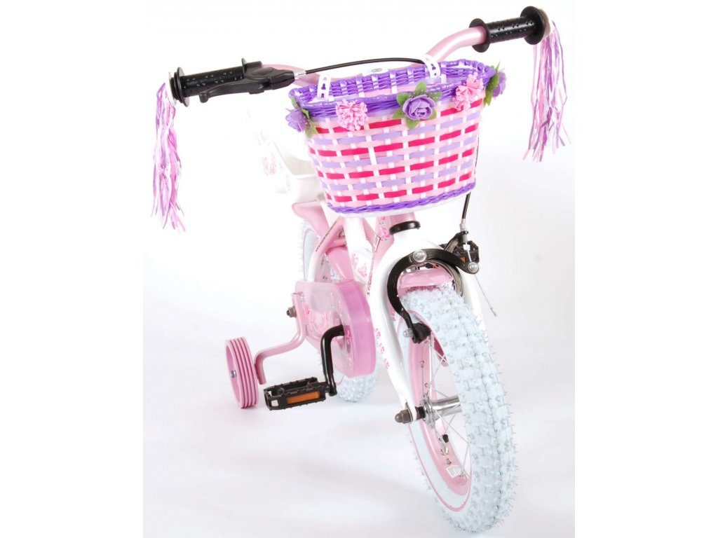 Originální dětské kolo od holandského výrobce Volare NewRose s velikostí ráfků 12 palců je určeno pro nejmenší děti ve věku od 3 do 4 let s výškou do 95 cm. Kolo je opatřeno demontovatelnými balančními kolečky, dítě se tedy bude cítit hned od první jízdy bezpečně a stabilně. Kolo je vybaveno 2 druhy brzd. Brždění probíhá buď protisměrnou zadní brzdou "torpédem", která možnuje brzdit zpětným záběrem pedálů nebo lze použít přední pákovou brzdu. Proti nechtěnému namotání nohavice nebo tkaničky do řetězu má kolo kryt s barevným potiskem, který zakrývá celý řetěz. Sedadlo i řídítka jsou výškově nastavitelné. Na řídítkách je plastový košíček na drobnosti.