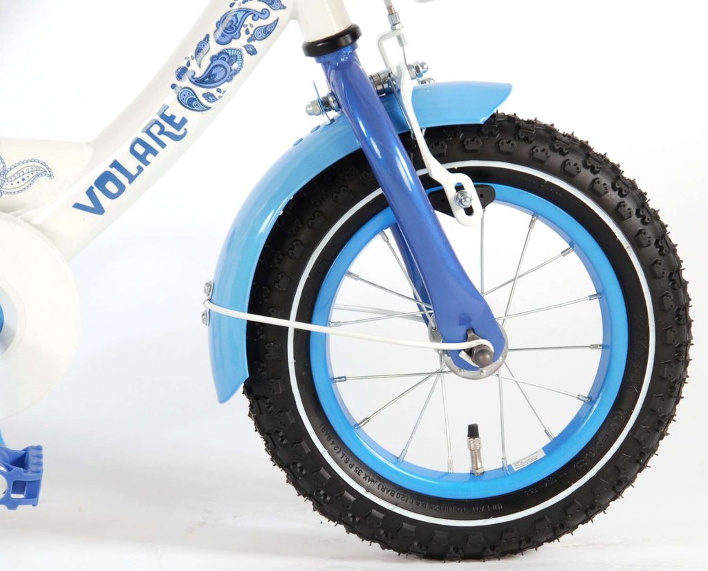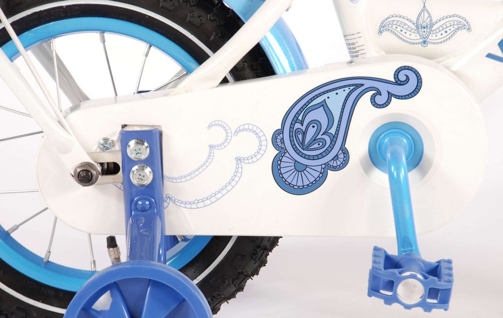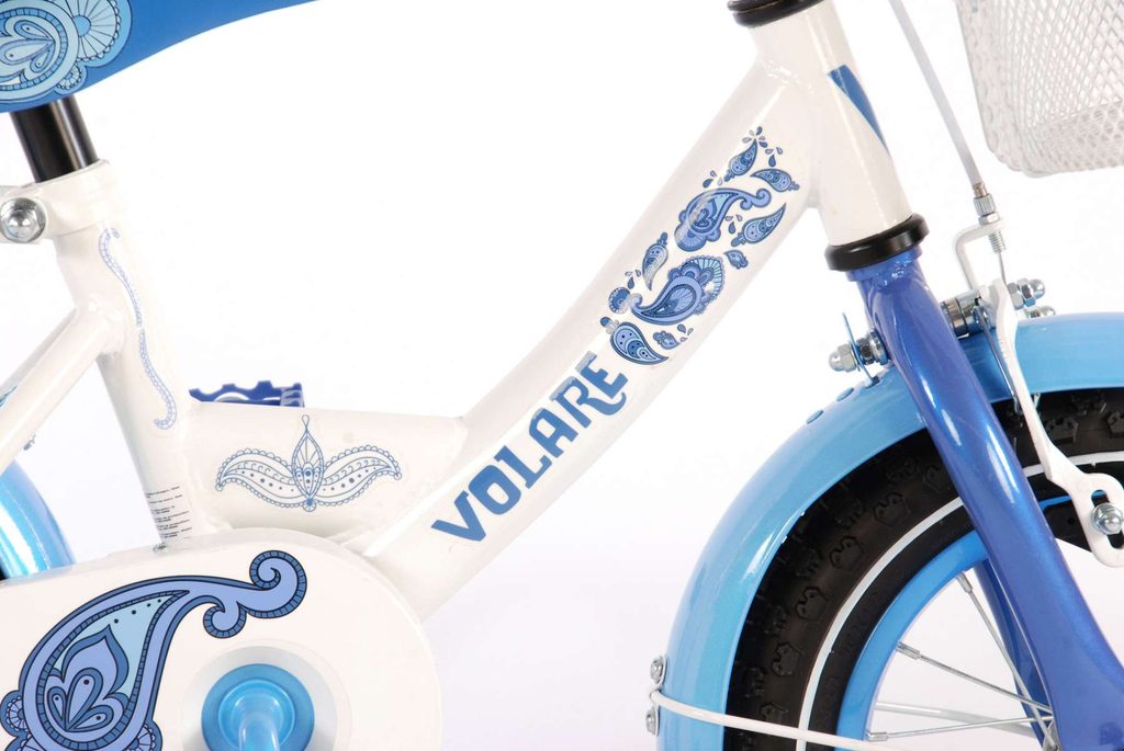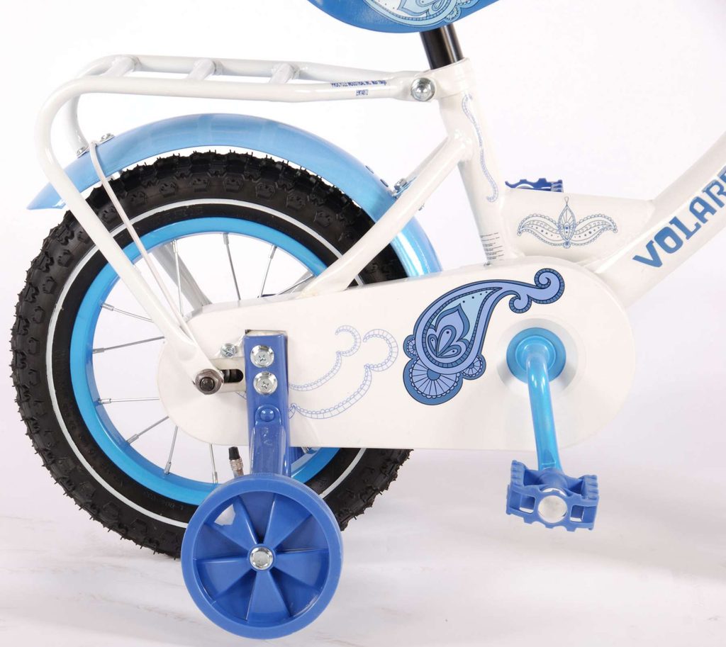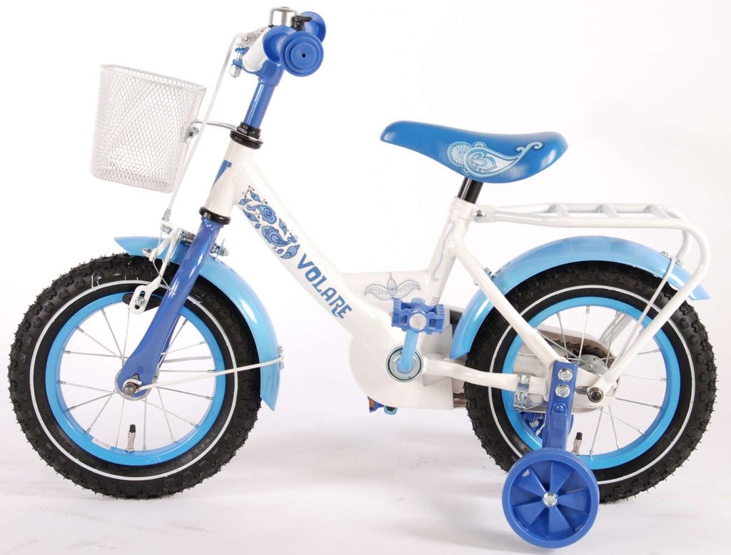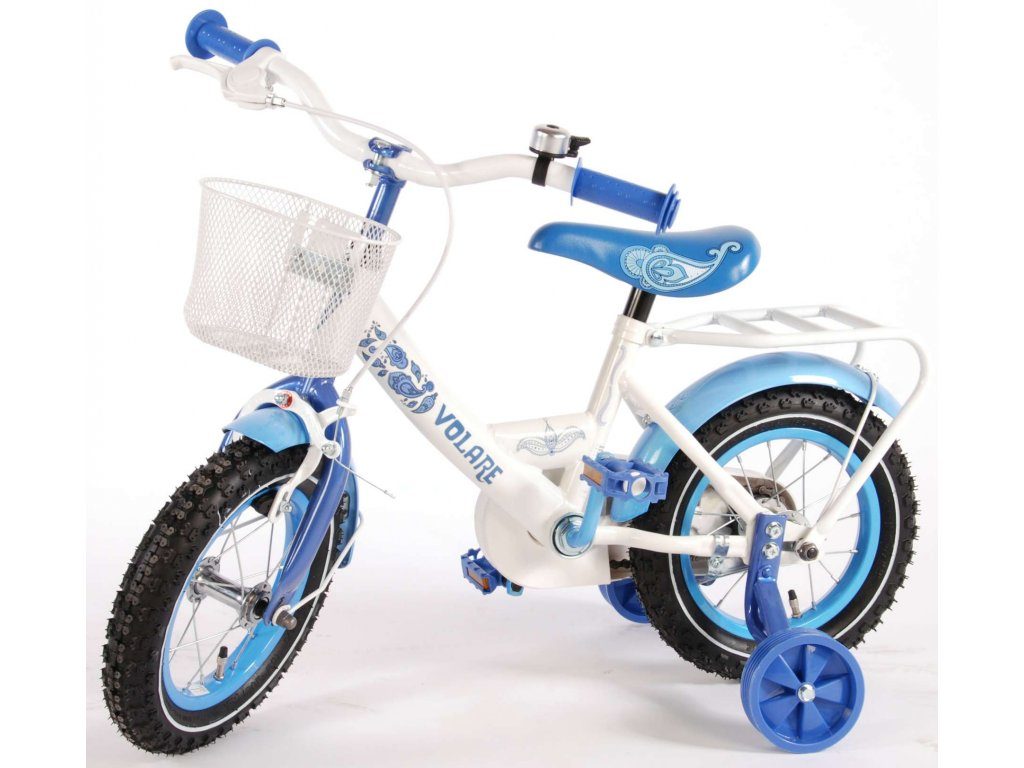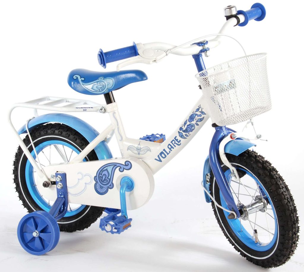 Originální dětské kolo od holandského výrobce Volare Paisley s velikostí ráfků 12 palců je určeno pro nejmenší děti ve věku od 3 do 4 let s výškou do 95 cm. Kolo je opatřeno demontovatelnými balančními kolečky, dítě se tedy bude cítit hned od první jízdy bezpečně a stabilně. Kolo je vybaveno 2 druhy brzd. Brždění probíhá buď protisměrnou zadní brzdou "torpédem", která možnuje brzdit zpětným záběrem pedálů nebo lze použít přední pákovou brzdu. Proti nechtěnému namotání nohavice nebo tkaničky do řetězu má kolo kryt s barevným potiskem, který zakrývá celý řetěz. Sedadlo i řídítka jsou výškově nastavitelné. Na řídítkách je umístěn plastový košíček a zvonek. V zadní části je připevněný nosič.