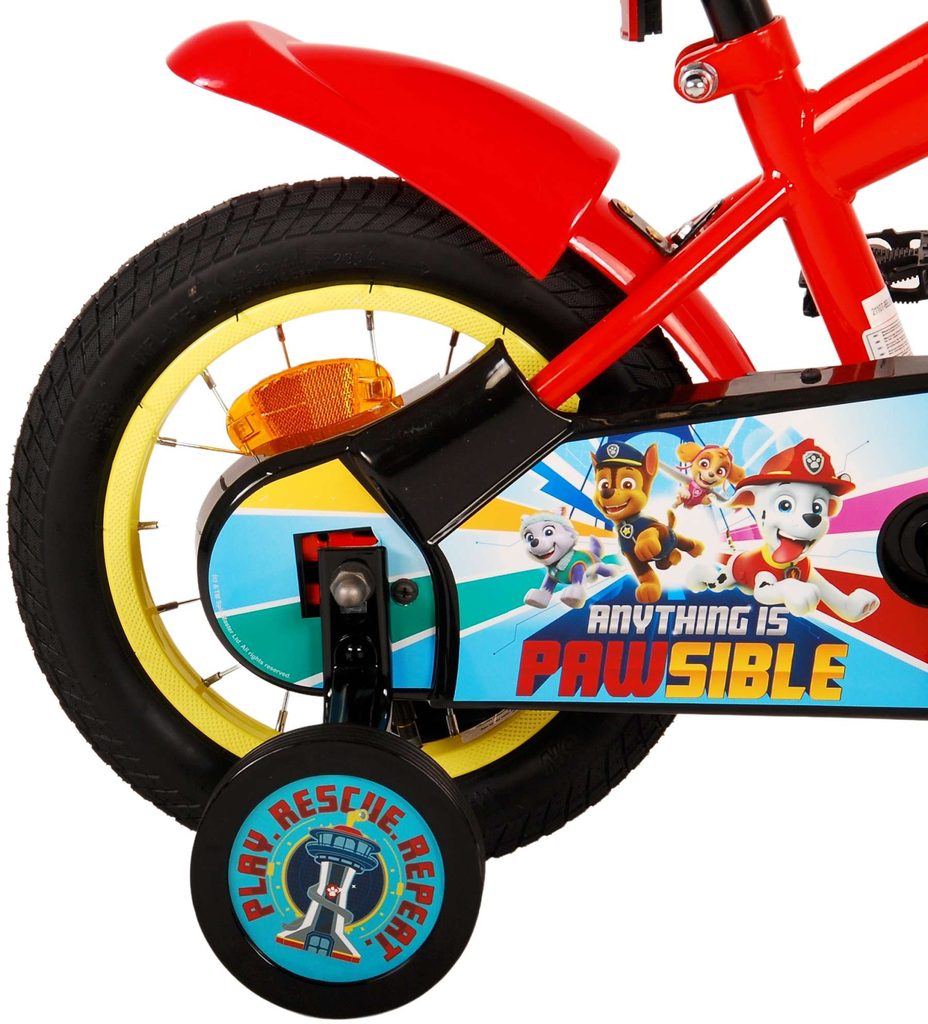 Originální dětské kolo od holandského výrobce Volare Paw Patrol s velikostí ráfků 12 palců je určeno pro nejmenší děti ve věku od 3 do 4,5 let s výškou do 95 cm. Kolo je opatřeno demontovatelnými balančními kolečky, dítě se tedy bude cítit hned od první jízdy bezpečně a stabilně. Kolo je vybaveno 2 druhy brzd. Brždění probíhá buď protisměrnou zadní brzdou "torpédem", která umožnuje brzdit zpětným záběrem pedálů nebo lze použít přední pákovou brzdu. Proti nechtěnému namotání nohavice nebo tkaničky do řetězu má kolo kryt s obrázky, který zakrývá celý řetěz. Sedadlo i řídítka jsou výškově nastavitelné.