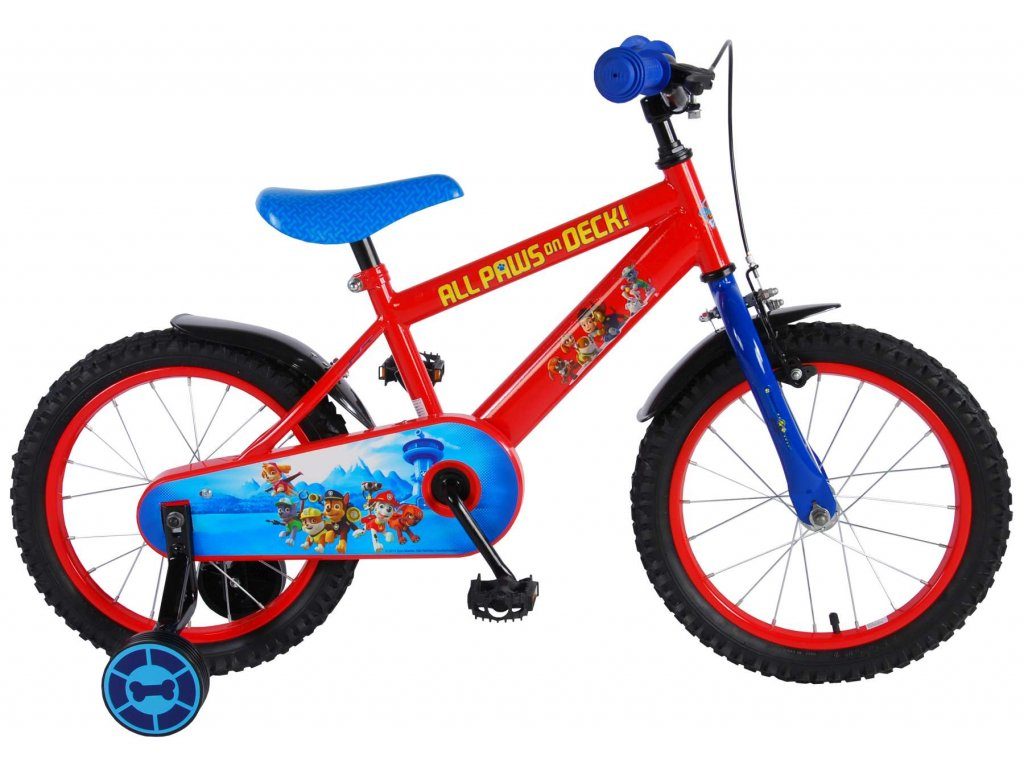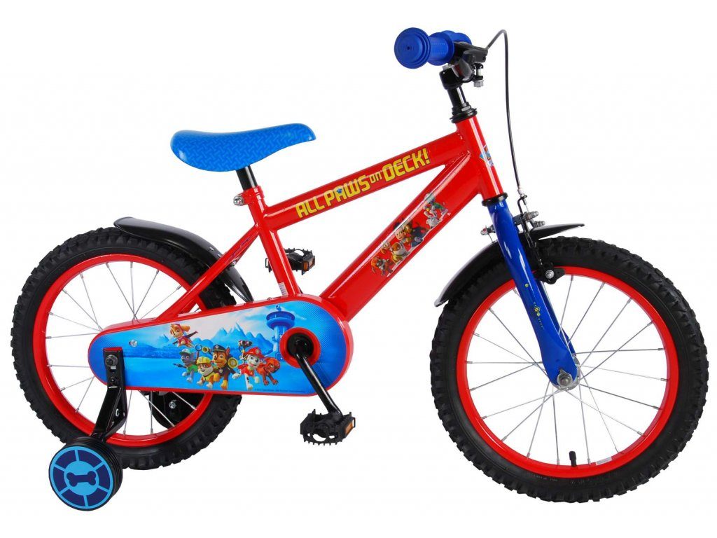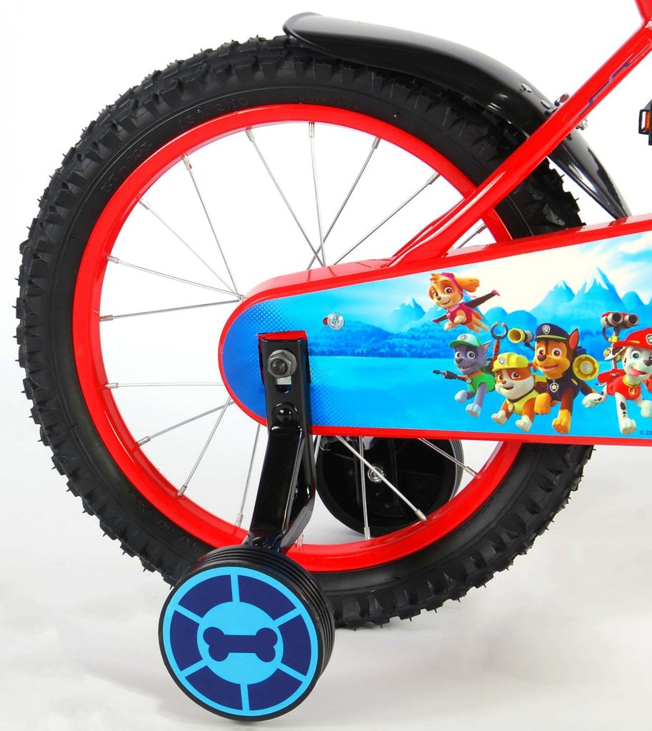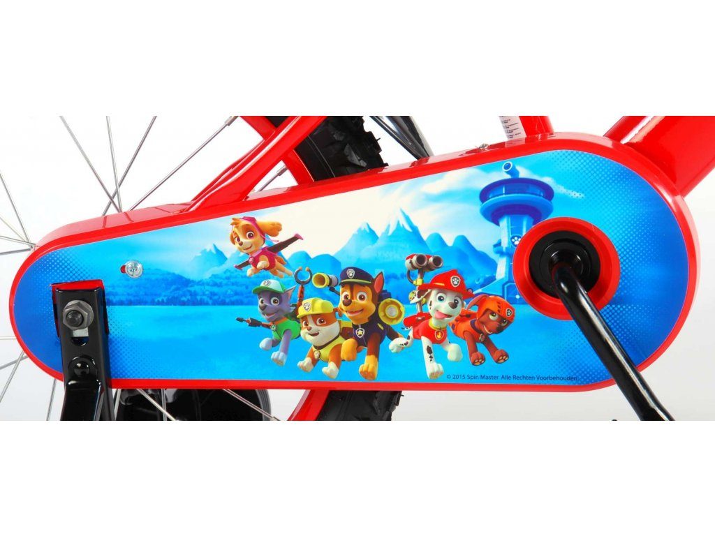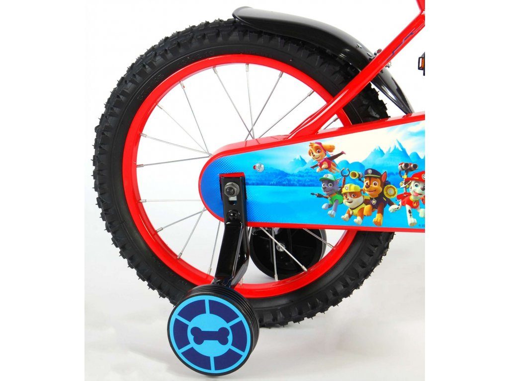 Originální dětské kolo od holandského výrobce Volare Paw Patrol s velikostí ráfků 16 palců je určeno pro děti ve věku od 4 do 6 let s výškou do 105 cm. Kolo je opatřeno demontovatelnými balančními kolečky, dítě se tedy bude cítit hned od první jízdy bezpečně a stabilně. Kolo je vybaveno 2 druhy brzd. Brždění probíhá buď protisměrnou zadní brzdou "torpédem", která umožnuje brzdit zpětným záběrem pedálů nebo lze použít přední pákovou brzdu. Proti nechtěnému namotání nohavice nebo tkaničky do řetězu má kolo kryt s obrázky oblíbeného superhrdiny, který zakrývá celý řetěz. Sedadlo i řídítka jsou výškově nastavitelné.