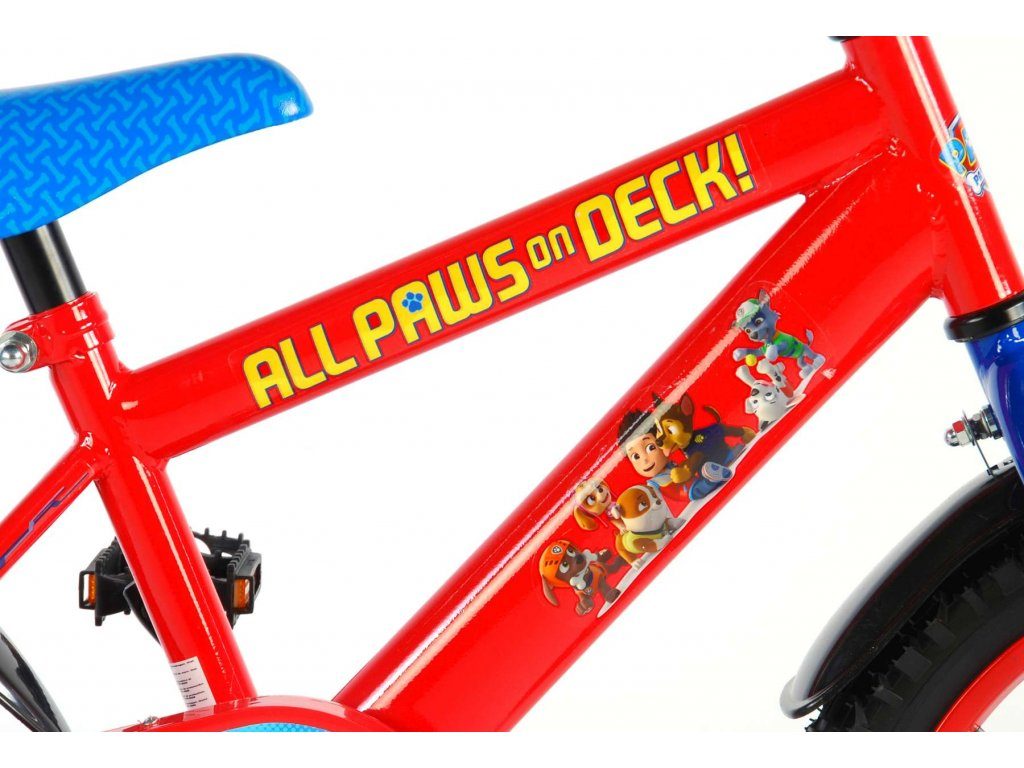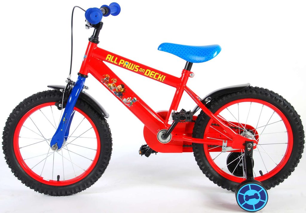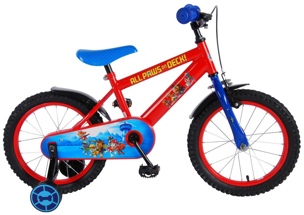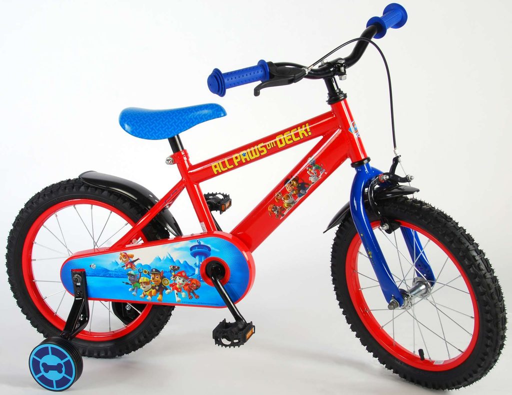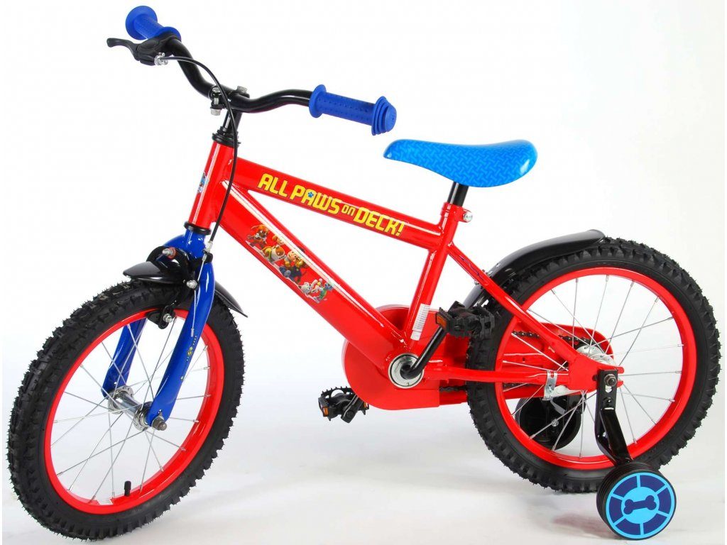 Originální dětské kolo od holandského výrobce Volare Paw Patrol s velikostí ráfků 16 palců je určeno pro děti ve věku od 4 do 6 let s výškou do 105 cm. Kolo je opatřeno demontovatelnými balančními kolečky, dítě se tedy bude cítit hned od první jízdy bezpečně a stabilně. Kolo je vybaveno 2 druhy brzd. Brždění probíhá buď protisměrnou zadní brzdou "torpédem", která umožnuje brzdit zpětným záběrem pedálů nebo lze použít přední pákovou brzdu. Proti nechtěnému namotání nohavice nebo tkaničky do řetězu má kolo kryt s obrázky oblíbeného superhrdiny, který zakrývá celý řetěz. Sedadlo i řídítka jsou výškově nastavitelné.