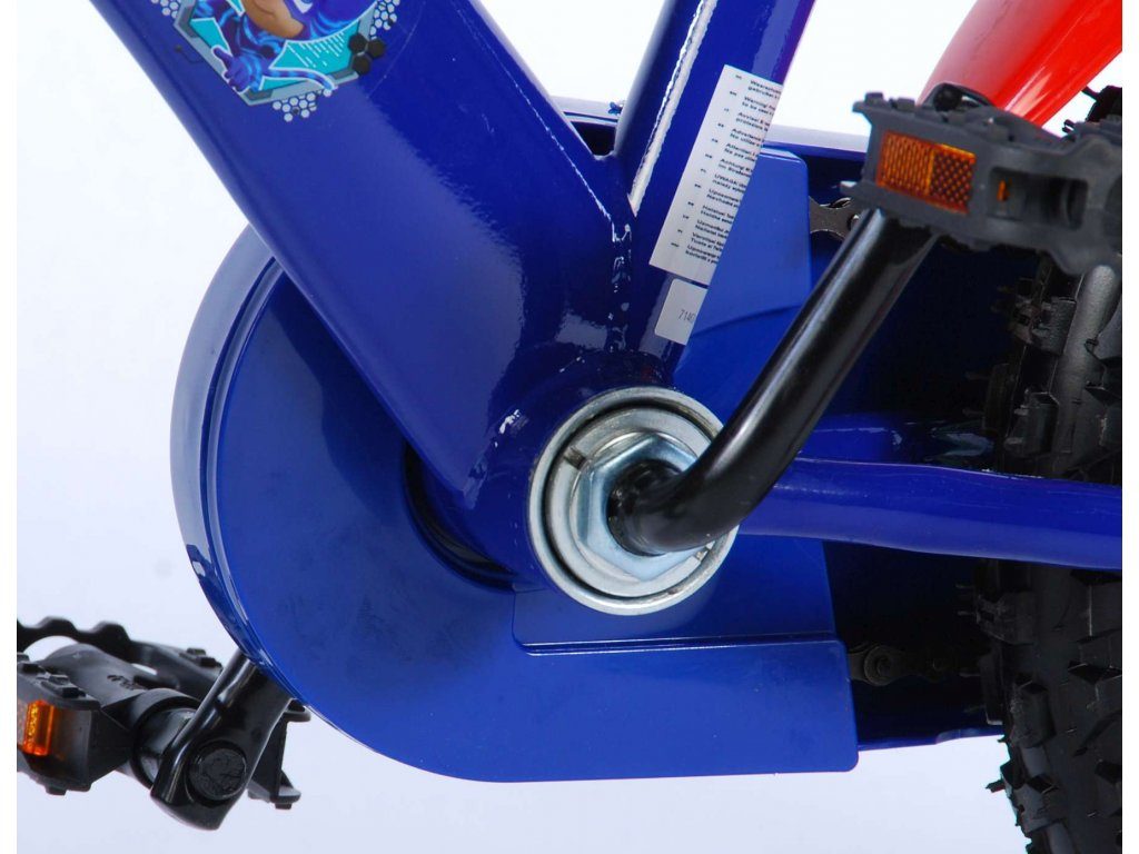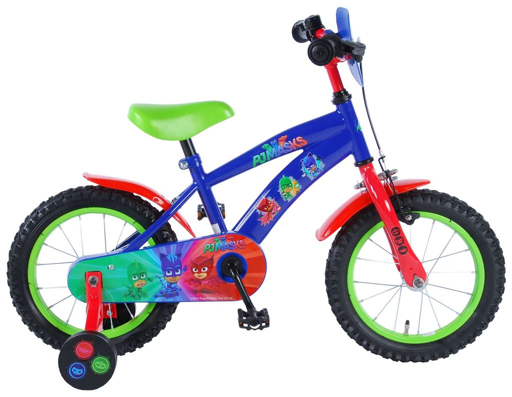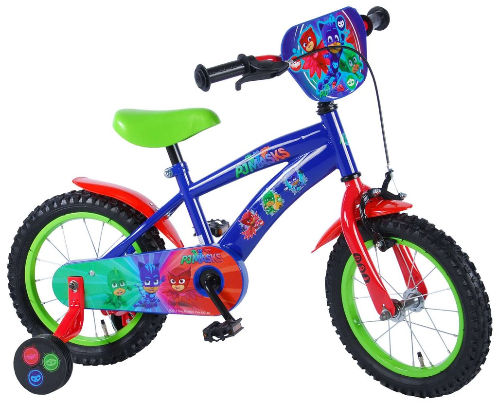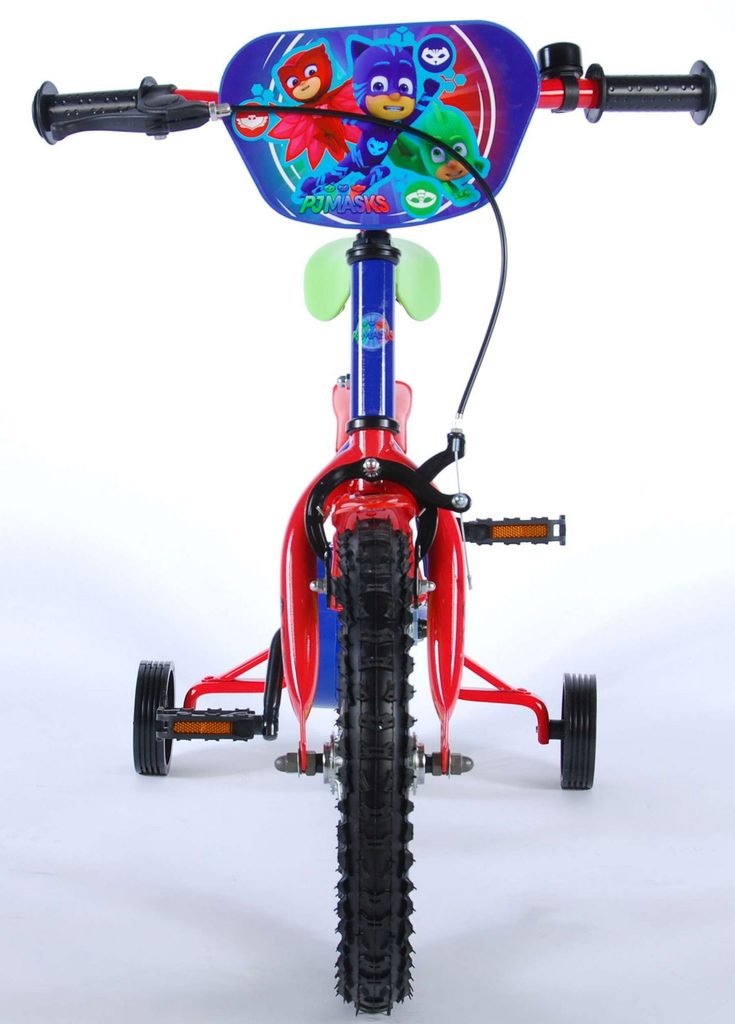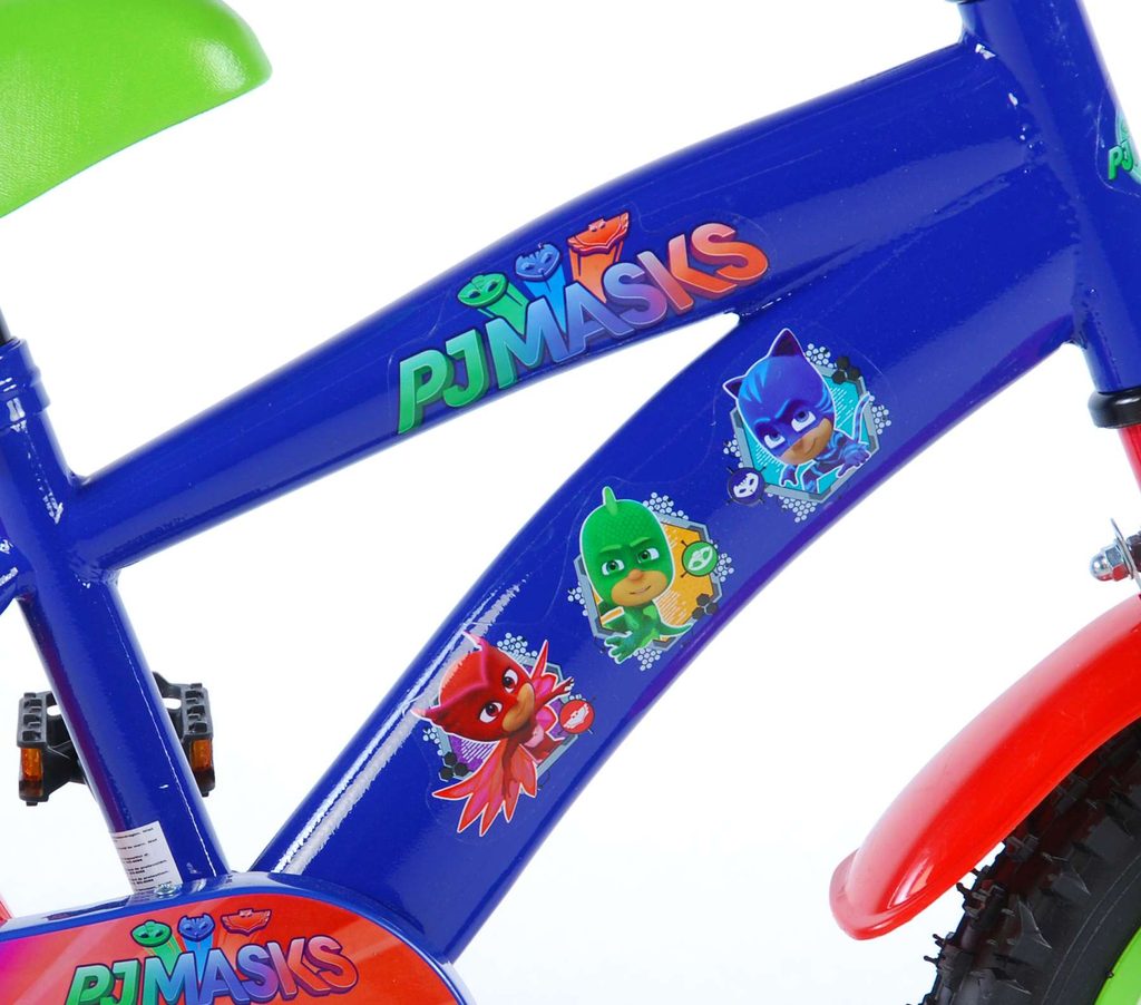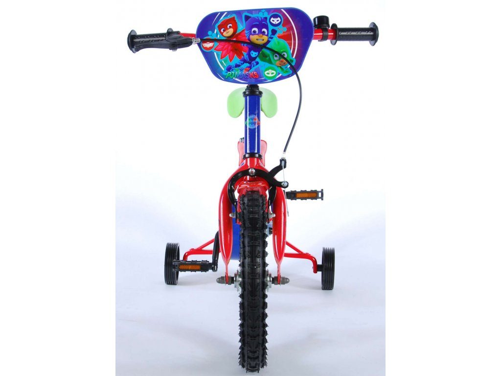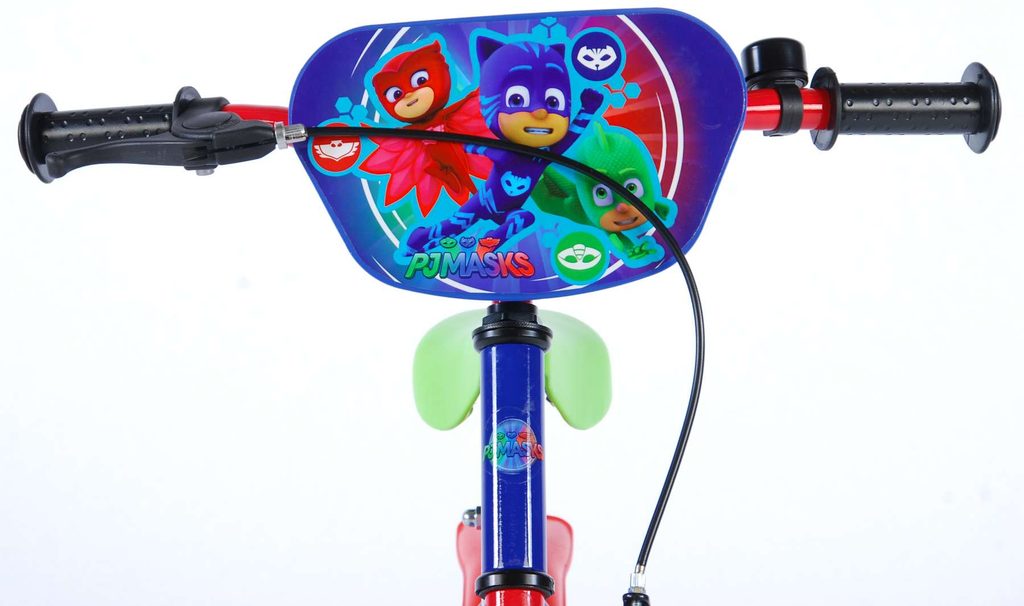 Originální dětské kolo od holandského výrobce Volare PJ Masks s velikostí ráfků 14 palců je určeno pro děti ve věku od 3,5 do 5 let s výškou do 100 cm. Kolo je opatřeno demontovatelnými balančními kolečky, dítě se tedy bude cítit hned od první jízdy bezpečně a stabilně. Kolo je vybaveno 2 druhy brzd. Brždění probíhá buď protisměrnou zadní brzdou "torpédem",která možnuje brzdit zpětným záběrem pedálů nebo lze použít přední pákovou brzdu. Proti nechtěnému namotání nohavice nebo tkaničky do řetězu má kolo kryt s barevným potiskem, který zakrývá celý řetěz. Sedadlo i řídítka jsou výškově nastavitelné. Za sedadlem je umístěný nosič s lahví na pití.