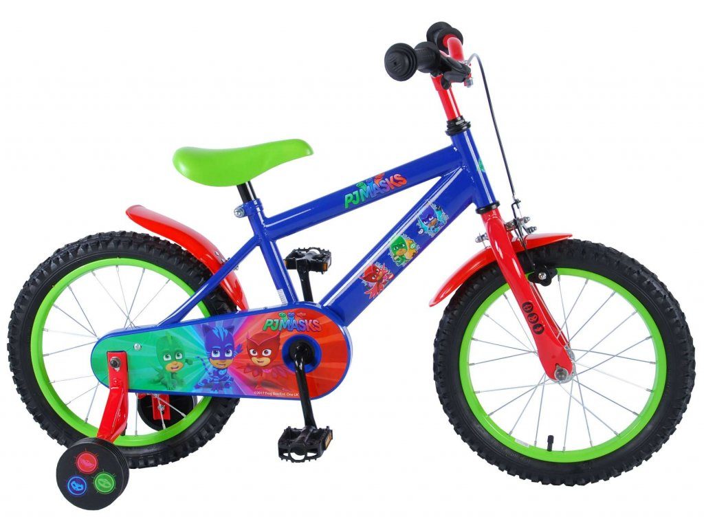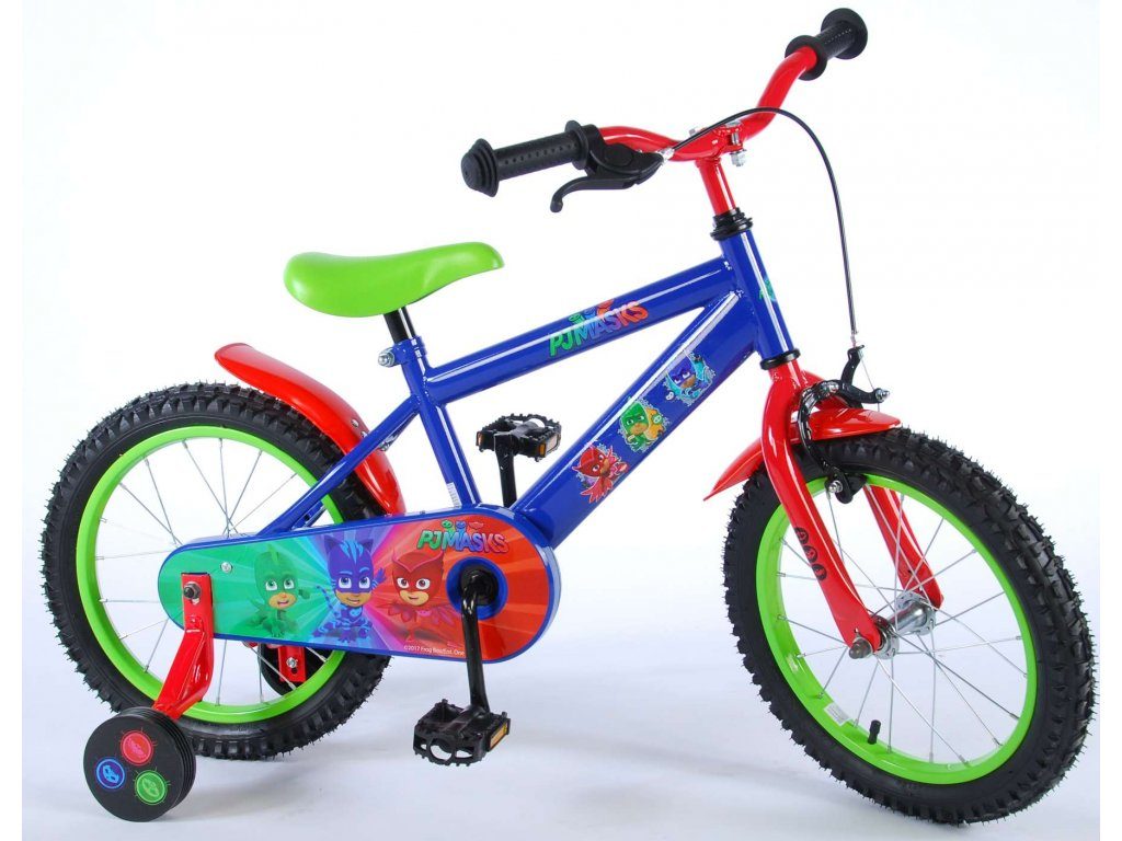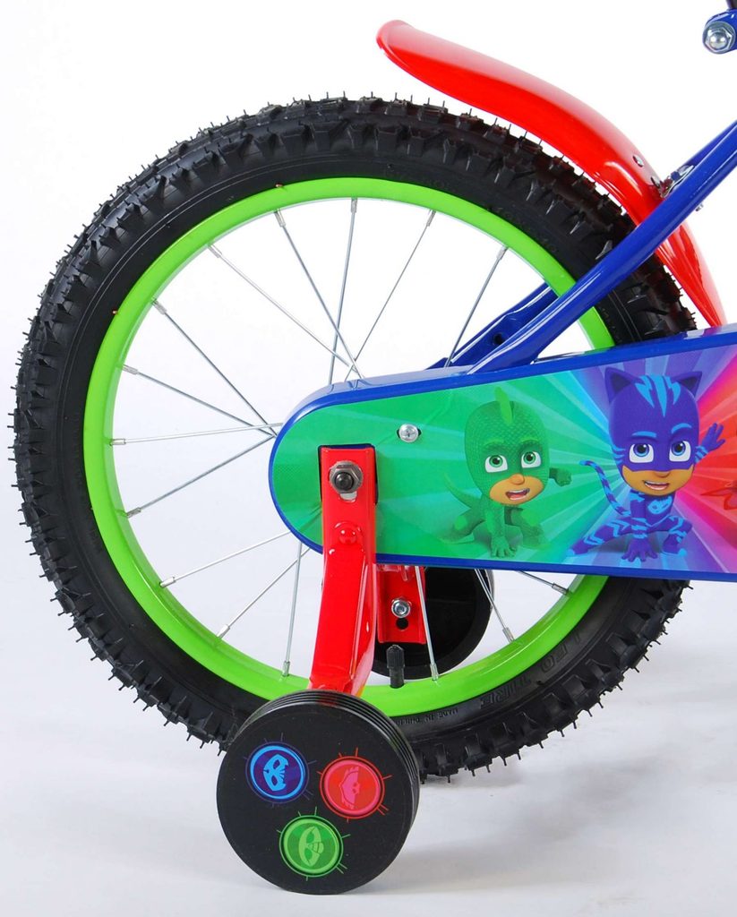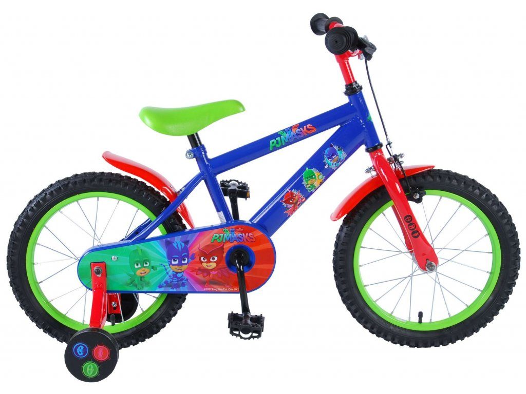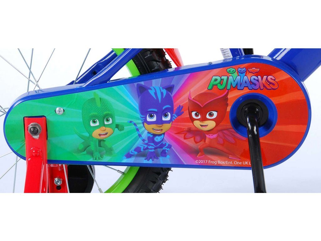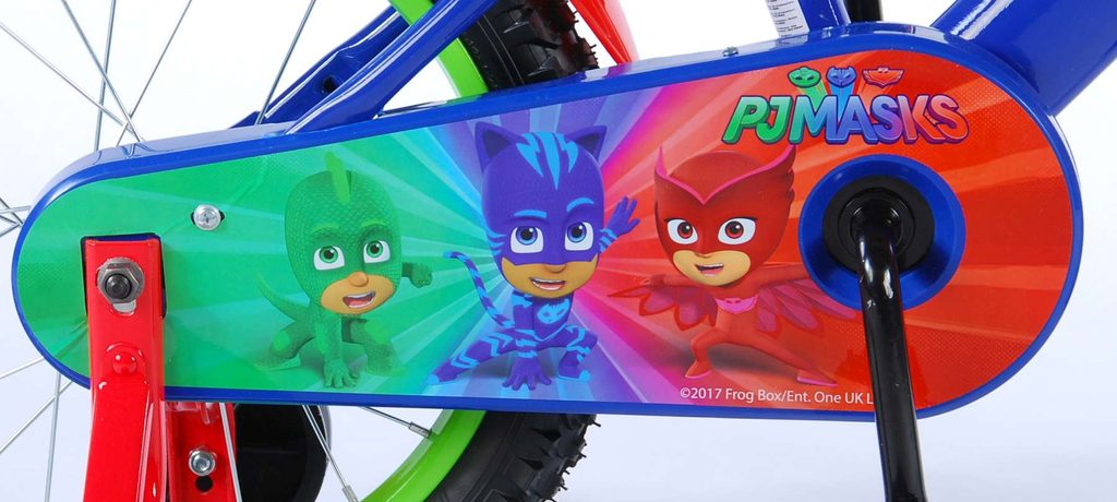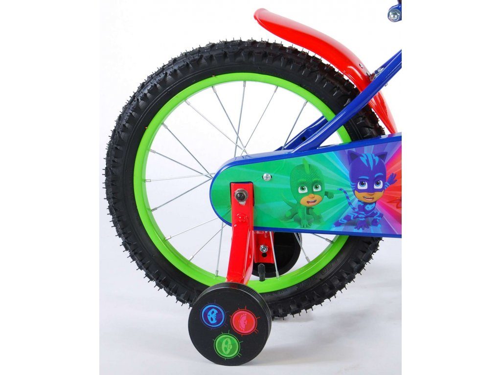 Originální dětské kolo od holandského výrobce Volare PJ Masks s velikostí ráfků 16 palců je určeno pro děti ve věku od 4 do 6 let s výškou do 105 cm. Kolo je opatřeno demontovatelnými balančními kolečky, dítě se tedy bude cítit hned od první jízdy bezpečně a stabilně. Kolo je vybaveno 2 druhy brzd. Brždění probíhá buď protisměrnou zadní brzdou "torpédem",která možnuje brzdit zpětným záběrem pedálů nebo lze použít přední pákovou brzdu. Proti nechtěnému namotání nohavice nebo tkaničky do řetězu má kolo kryt s obrázky oblíbeného superhrdiny, který zakrývá celý řetěz. Sedadlo i řídítka jsou výškově nastavitelné.