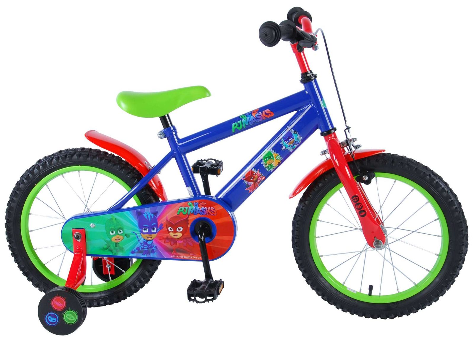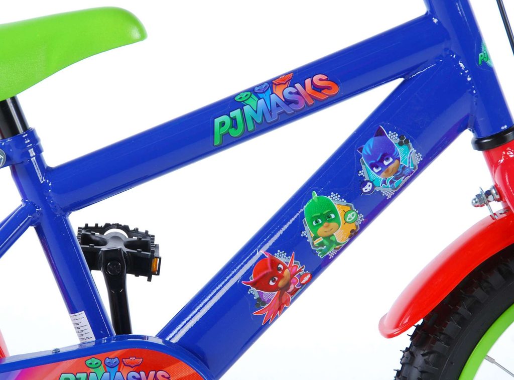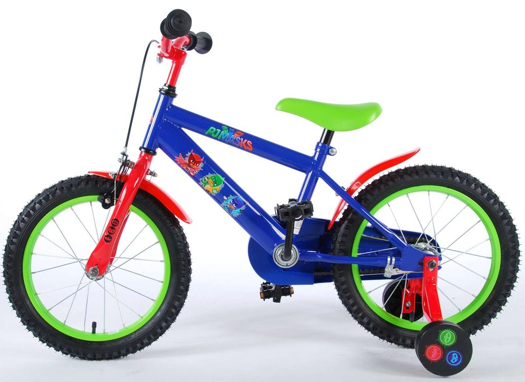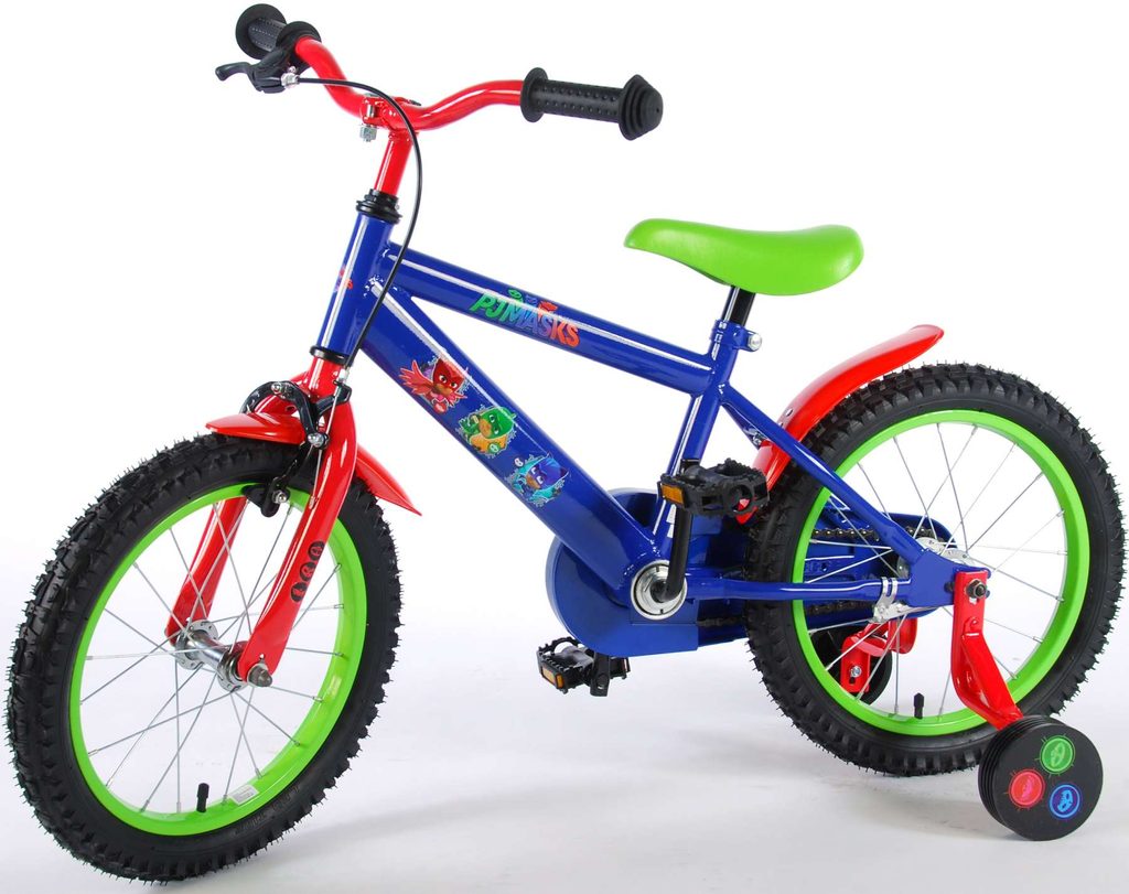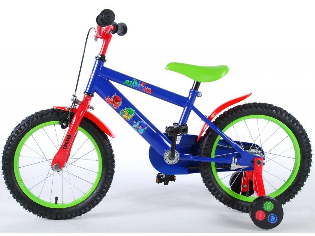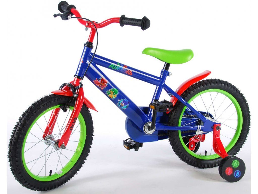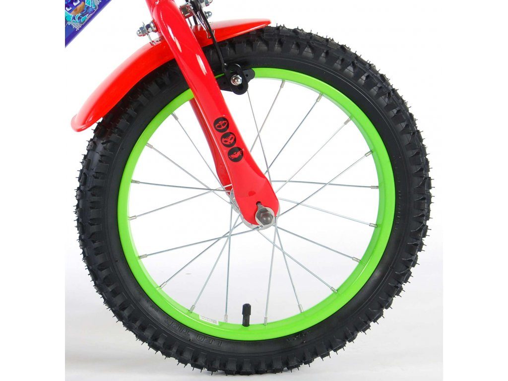 Originální dětské kolo od holandského výrobce Volare PJ Masks s velikostí ráfků 16 palců je určeno pro děti ve věku od 4 do 6 let s výškou do 105 cm. Kolo je opatřeno demontovatelnými balančními kolečky, dítě se tedy bude cítit hned od první jízdy bezpečně a stabilně. Kolo je vybaveno 2 druhy brzd. Brždění probíhá buď protisměrnou zadní brzdou "torpédem",která možnuje brzdit zpětným záběrem pedálů nebo lze použít přední pákovou brzdu. Proti nechtěnému namotání nohavice nebo tkaničky do řetězu má kolo kryt s obrázky oblíbeného superhrdiny, který zakrývá celý řetěz. Sedadlo i řídítka jsou výškově nastavitelné.