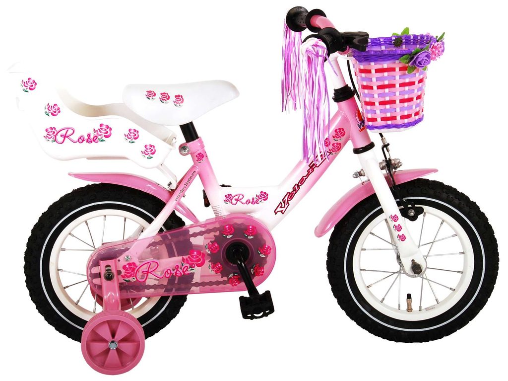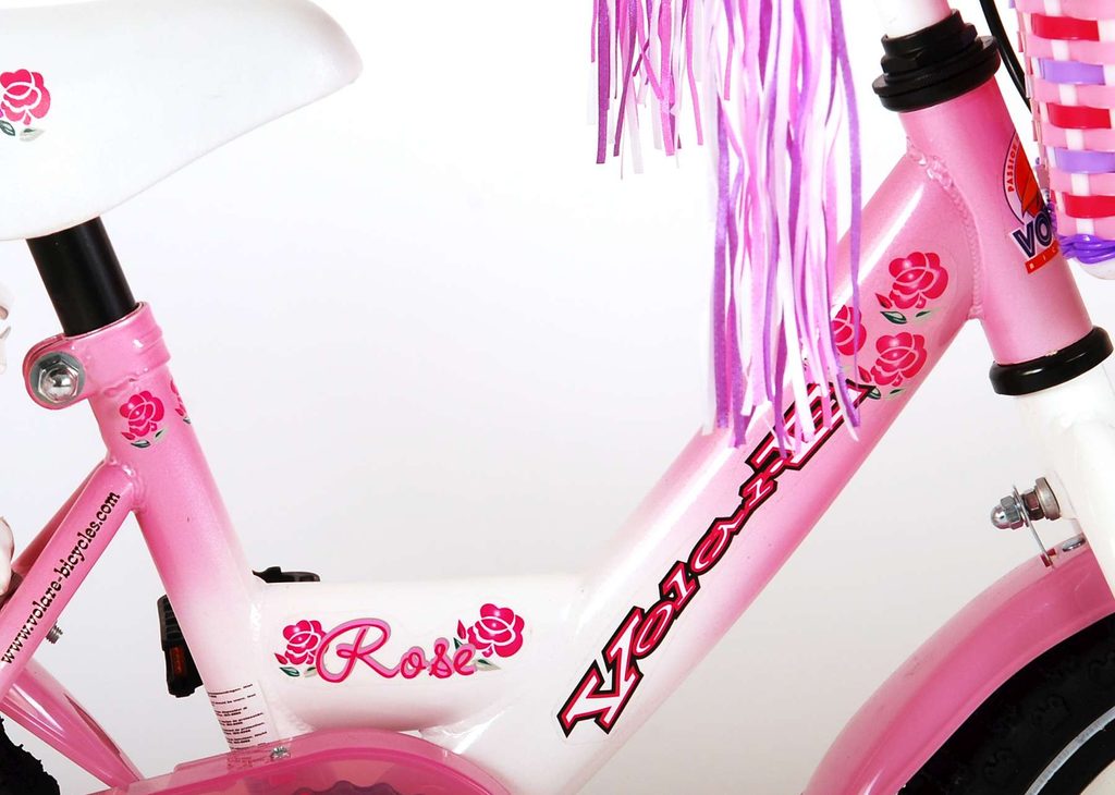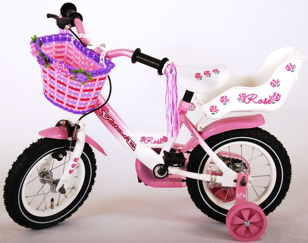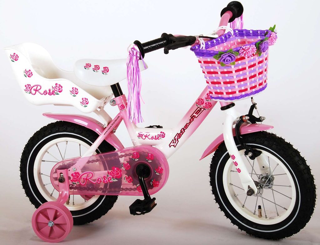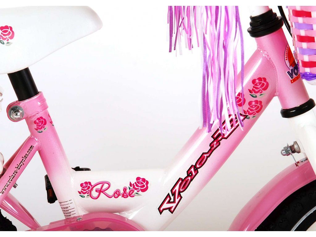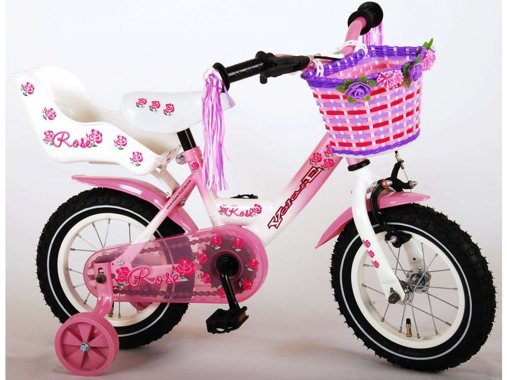 Originální dětské kolo od holandského výrobce Volare Rose s velikostí ráfků 12 palců je určeno pro nejmenší děti ve věku od 3 do 4 let s výškou do 95 cm. Kolo je opatřeno demontovatelnými balančními kolečky, dítě se tedy bude cítit hned od první jízdy bezpečně a stabilně. Kolo je vybaveno 2 druhy brzd. Brždění probíhá buď protisměrnou zadní brzdou "torpédem", která možnuje brzdit zpětným záběrem pedálů nebo lze použít přední pákovou brzdu. Proti nechtěnému namotání nohavice nebo tkaničky do řetězu má kolo kryt s barevným potiskem, který zakrývá celý řetěz. Sedadlo i řídítka jsou výškově nastavitelné. Na řídítkách je připevněný zvonek.