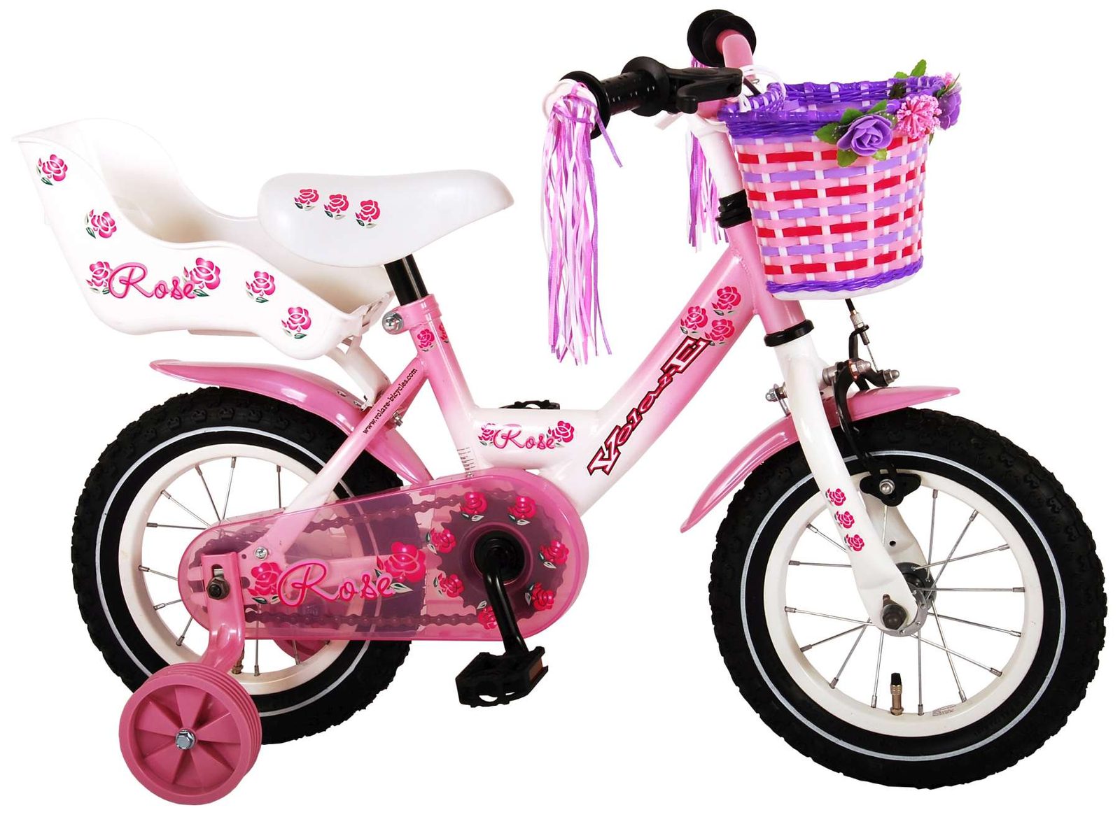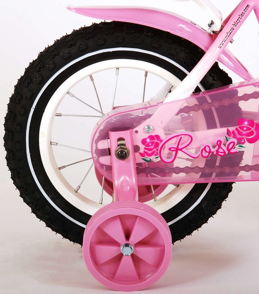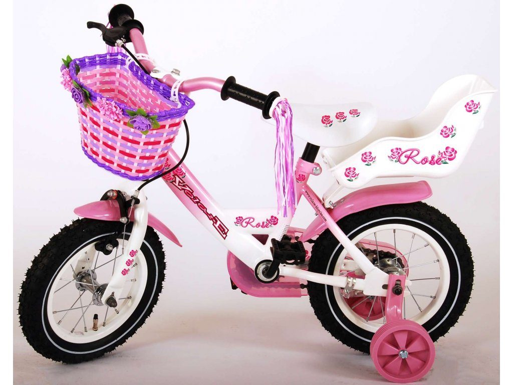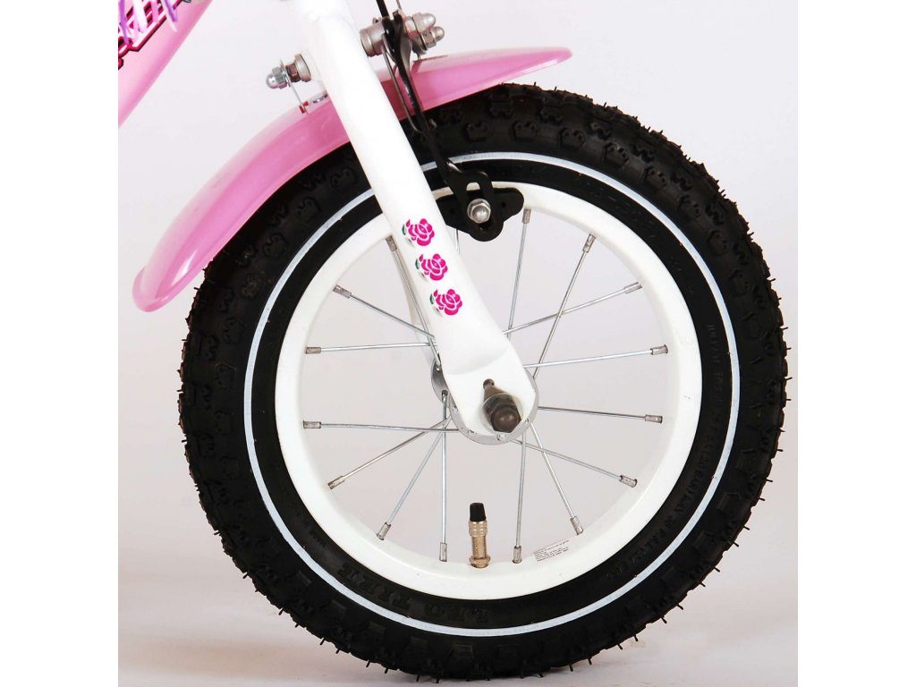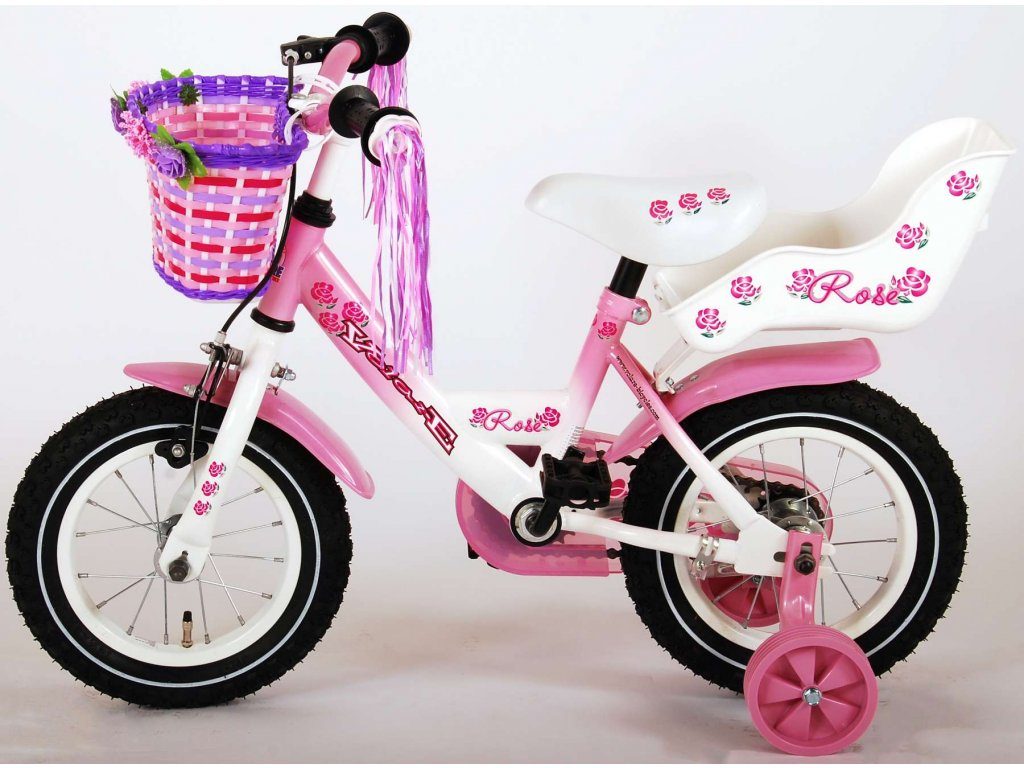 Originální dětské kolo od holandského výrobce Volare Rose s velikostí ráfků 12 palců je určeno pro nejmenší děti ve věku od 3 do 4 let s výškou do 95 cm. Kolo je opatřeno demontovatelnými balančními kolečky, dítě se tedy bude cítit hned od první jízdy bezpečně a stabilně. Kolo je vybaveno 2 druhy brzd. Brždění probíhá buď protisměrnou zadní brzdou "torpédem", která možnuje brzdit zpětným záběrem pedálů nebo lze použít přední pákovou brzdu. Proti nechtěnému namotání nohavice nebo tkaničky do řetězu má kolo kryt s barevným potiskem, který zakrývá celý řetěz. Sedadlo i řídítka jsou výškově nastavitelné. Na řídítkách je připevněný zvonek.