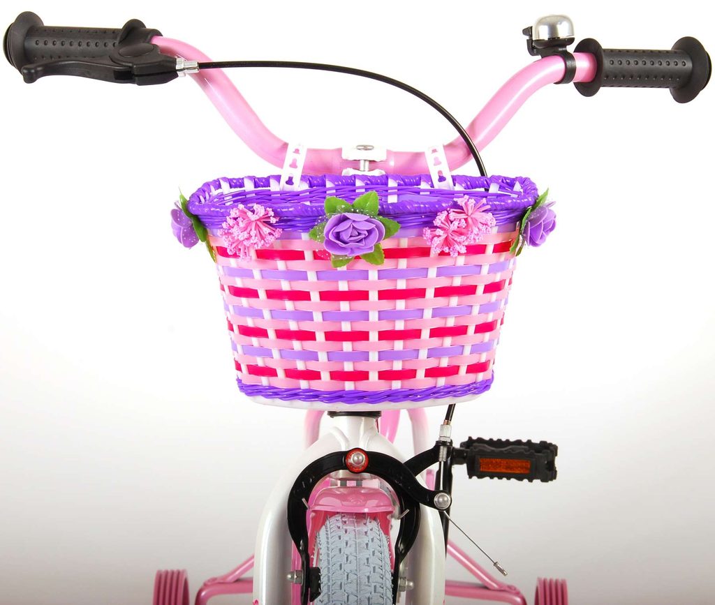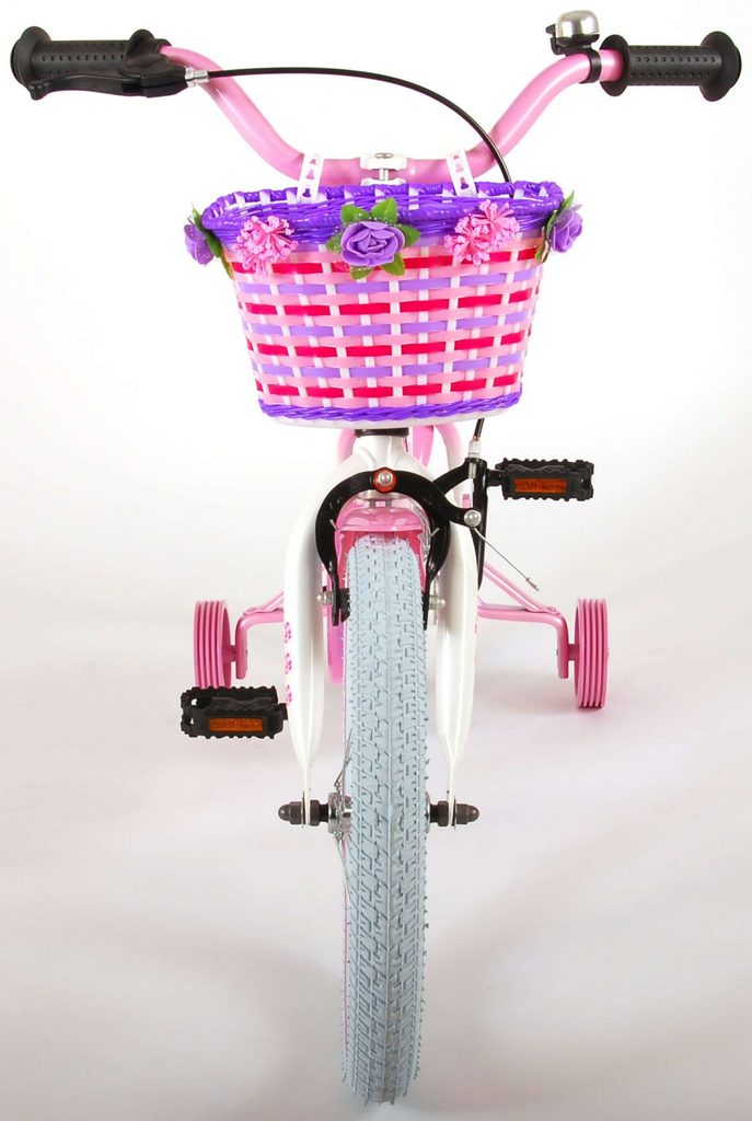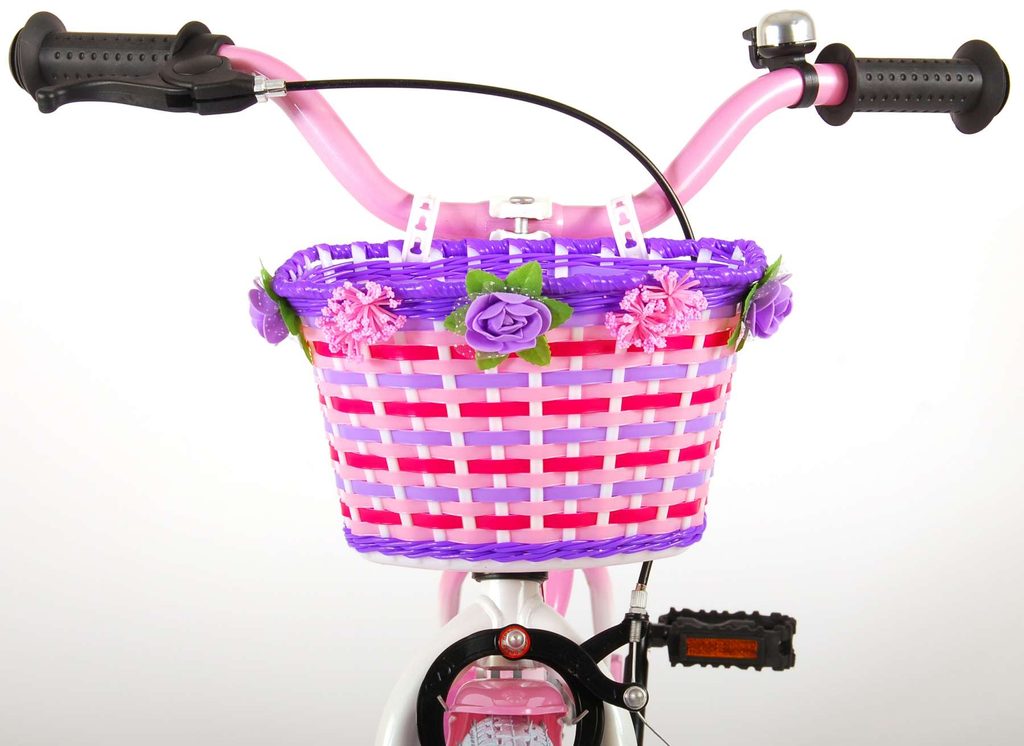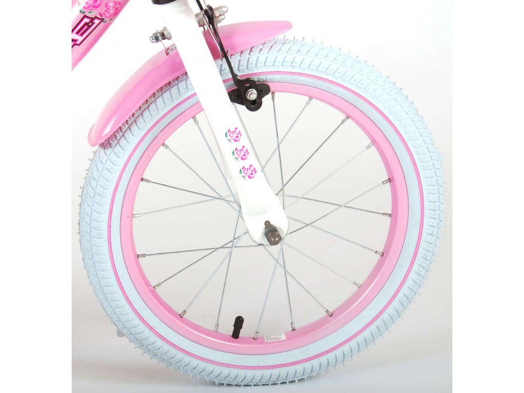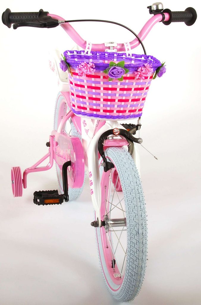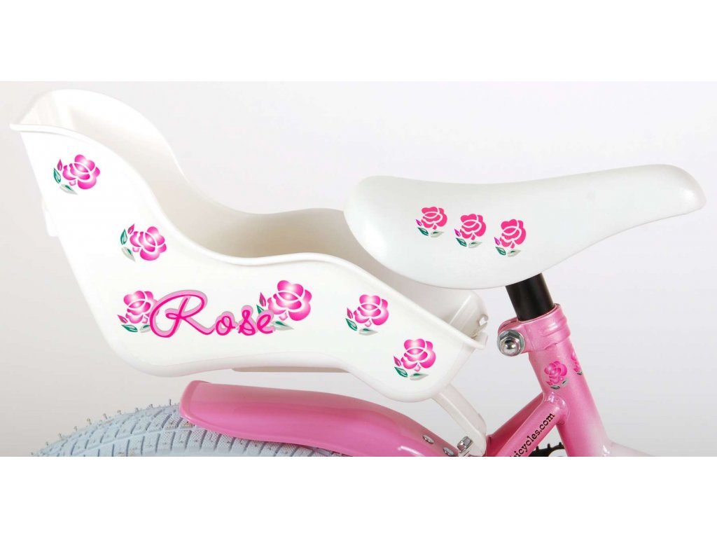 Originální dětské kolo od holandského výrobce Volare Rose s velikostí ráfků 16 palců je určeno pro děti ve věku od 4 do 6 let s výškou do 105 cm. Kolo je opatřeno demontovatelnými balančními kolečky, dítě se tedy bude cítit hned od první jízdy bezpečně a stabilně. Kolo je vybaveno 2 druhy brzd. Brždění probíhá buď protisměrnou zadní brzdou "torpédem", která možnuje brzdit zpětným záběrem pedálů nebo lze použít přední pákovou brzdu. Proti nechtěnému namotání nohavice nebo tkaničky do řetězu má kolo kryt s barevným potiskem, který zakrývá celý řetěz. Sedadlo i řídítka jsou výškově nastavitelné. Na řídítkách je umístěn košíček a zvonek. V zadní části je připevněný nosič na panenky.