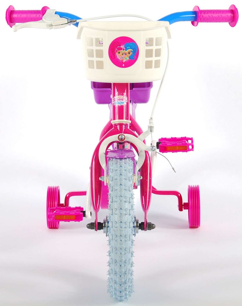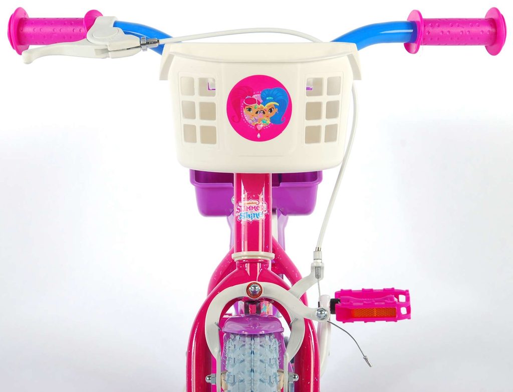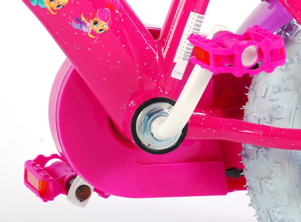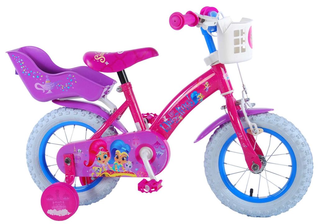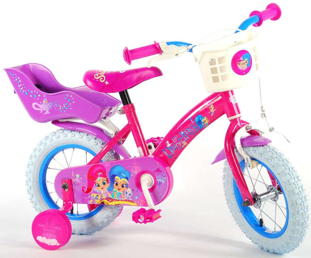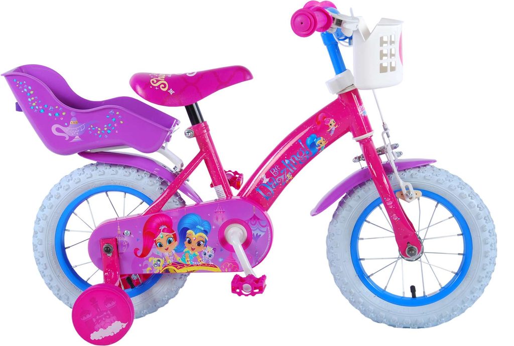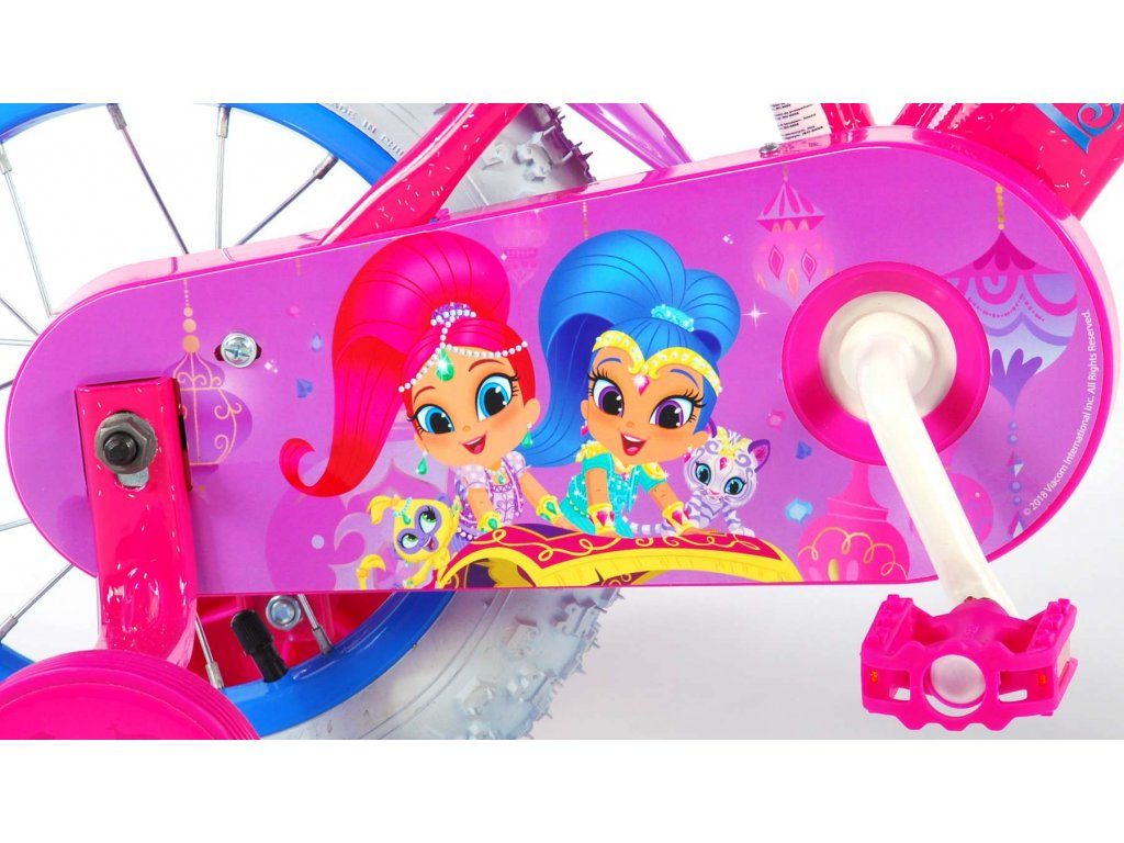 Originální dětské kolo od holandského výrobce Volare Shimmer&Shine s velikostí ráfků 12 palců je určeno pro nejmenší děti ve věku od 3 do 4 let s výškou do 95 cm. Kolo je opatřeno demontovatelnými balančními kolečky, dítě se tedy bude cítit hned od první jízdy bezpečně a stabilně. Kolo je vybaveno 2 druhy brzd. Brždění probíhá buď protisměrnou zadní brzdou "torpédem", která možnuje brzdit zpětným záběrem pedálů nebo lze použít přední pákovou brzdu. Proti nechtěnému namotání nohavice nebo tkaničky do řetězu má kolo kryt s barevným potiskem, který zakrývá celý řetěz. Sedadlo i řídítka jsou výškově nastavitelné. Na řídítkách je umístěn plastový košíček. V zadní části je připevněný nosič na panenku.