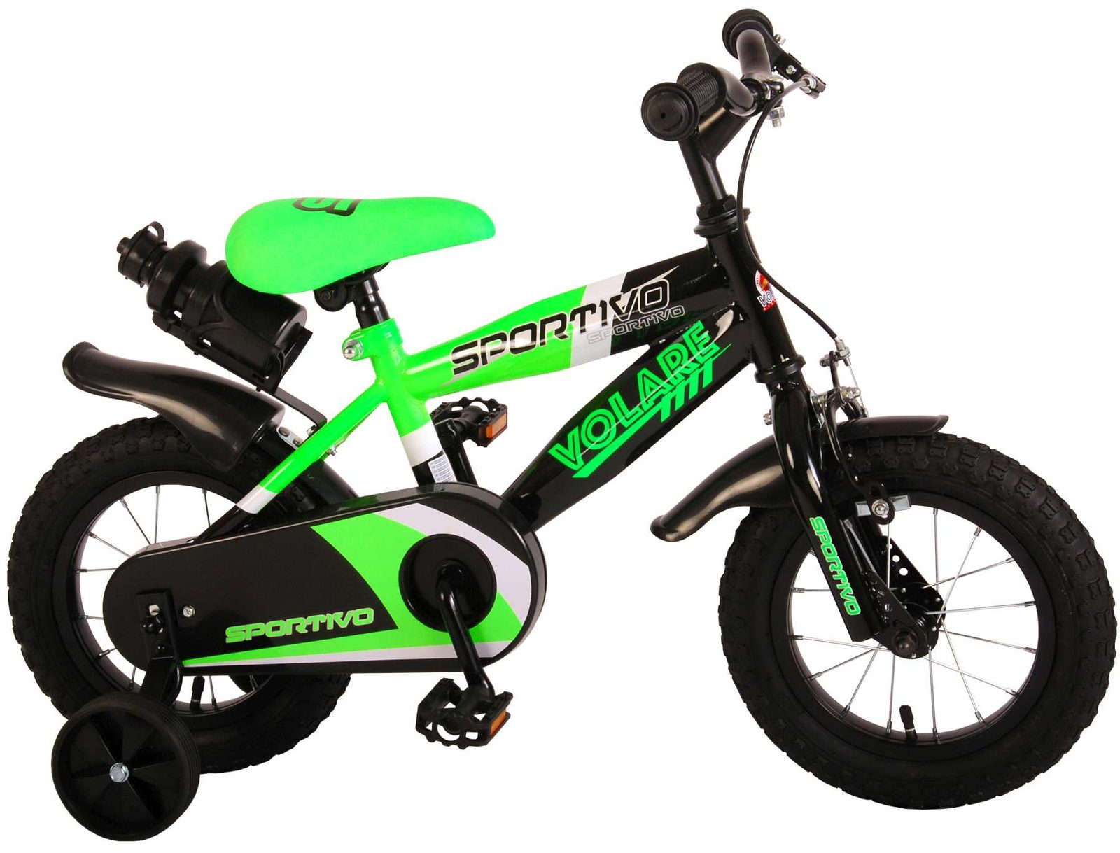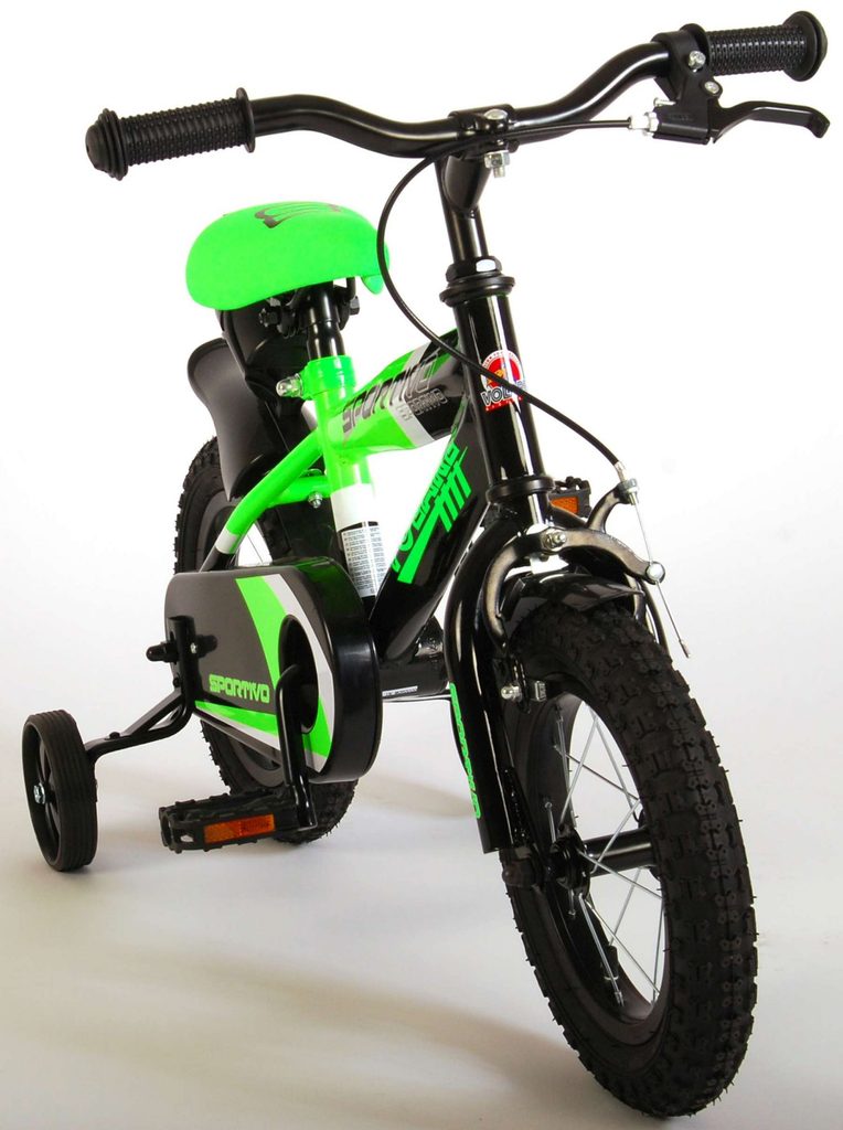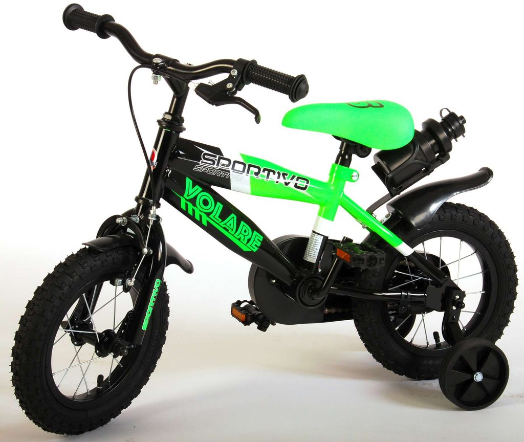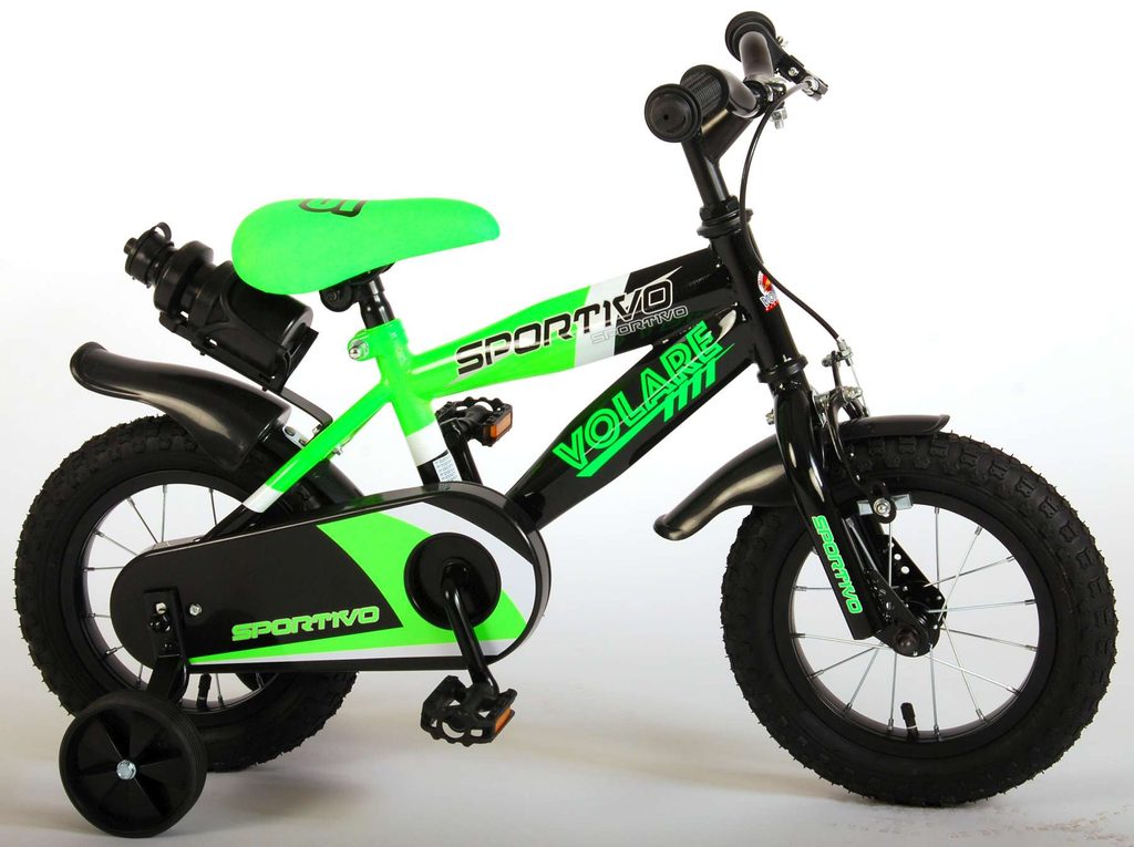 Originální dětské kolo od holandského výrobce Volare Sportivo Green s velikostí ráfků 12 palců je určeno pro nejmenší děti ve věku od 3 do 4,5 let s výškou do 95 cm. Kolo je opatřeno demontovatelnými balančními kolečky, dítě se tedy bude cítit hned od první jízdy bezpečně a stabilně. Kolo je vybaveno 2 druhy brzd. Brždění probíhá buď protisměrnou zadní brzdou "torpédem", která umožnuje brzdit zpětným záběrem pedálů nebo lze použít přední pákovou brzdu. Proti nechtěnému namotání nohavice nebo tkaničky do řetězu má kolo kryt s barevným potiskem, který zakrývá celý řetěz. Sedadlo i řídítka jsou výškově nastavitelné. Za sedadlem je umístěný nosič s lahví na pití.