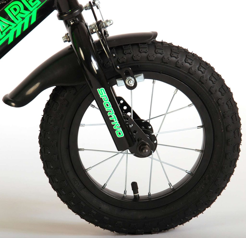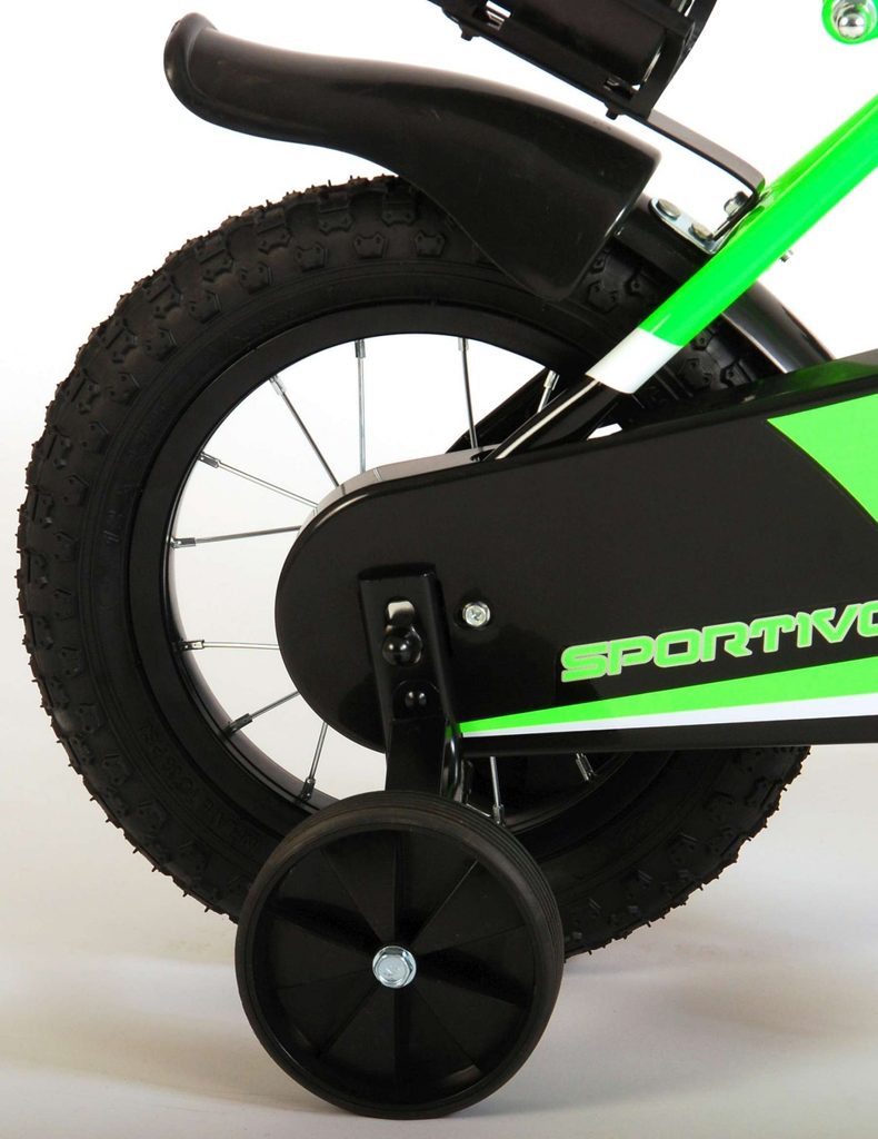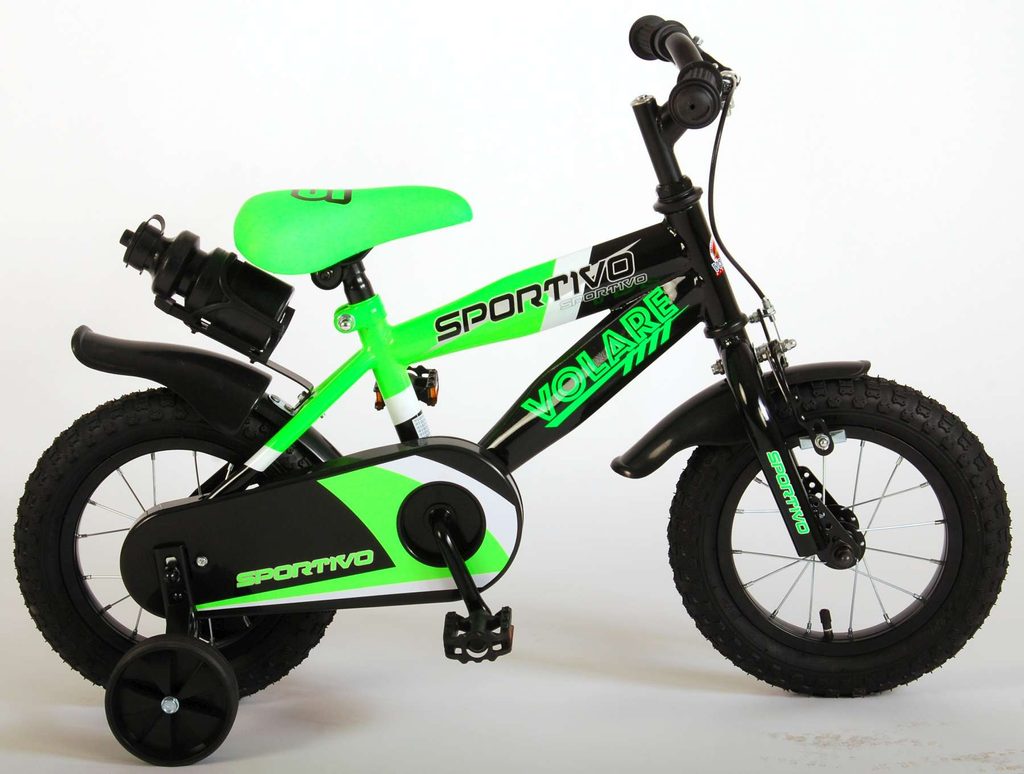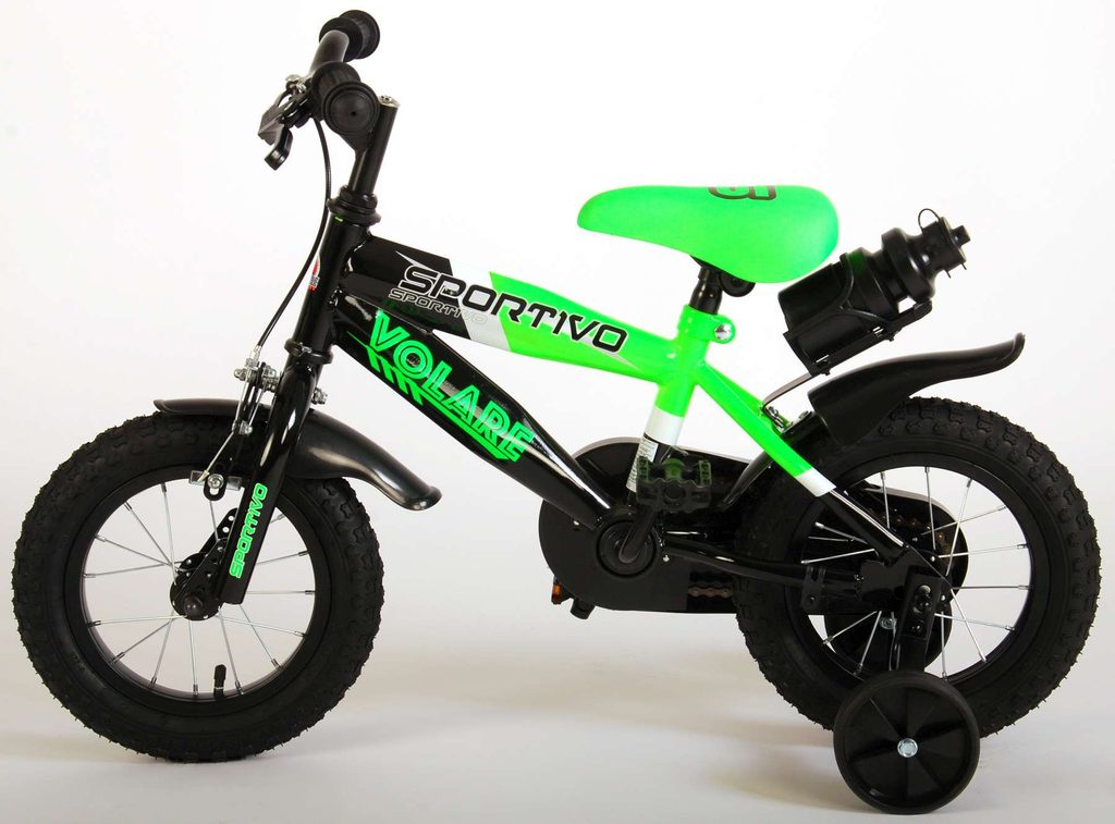 Originální dětské kolo od holandského výrobce Volare Sportivo Green s velikostí ráfků 12 palců je určeno pro nejmenší děti ve věku od 3 do 4,5 let s výškou do 95 cm. Kolo je opatřeno demontovatelnými balančními kolečky, dítě se tedy bude cítit hned od první jízdy bezpečně a stabilně. Kolo je vybaveno 2 druhy brzd. Brždění probíhá buď protisměrnou zadní brzdou "torpédem", která umožnuje brzdit zpětným záběrem pedálů nebo lze použít přední pákovou brzdu. Proti nechtěnému namotání nohavice nebo tkaničky do řetězu má kolo kryt s barevným potiskem, který zakrývá celý řetěz. Sedadlo i řídítka jsou výškově nastavitelné. Za sedadlem je umístěný nosič s lahví na pití.