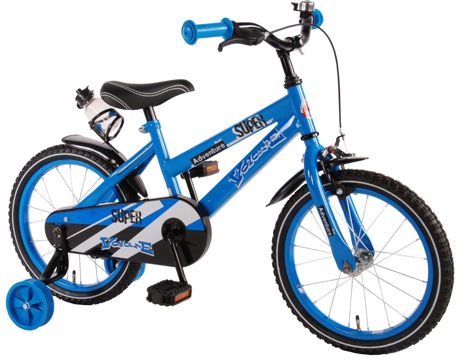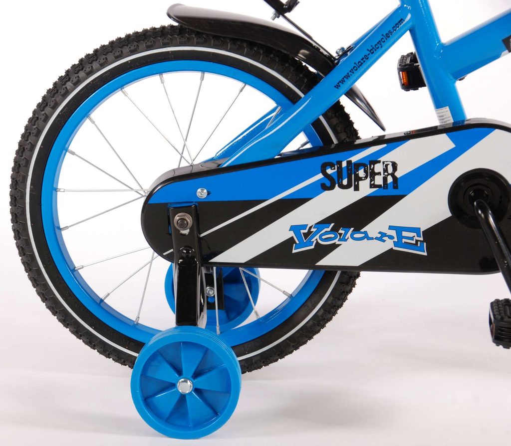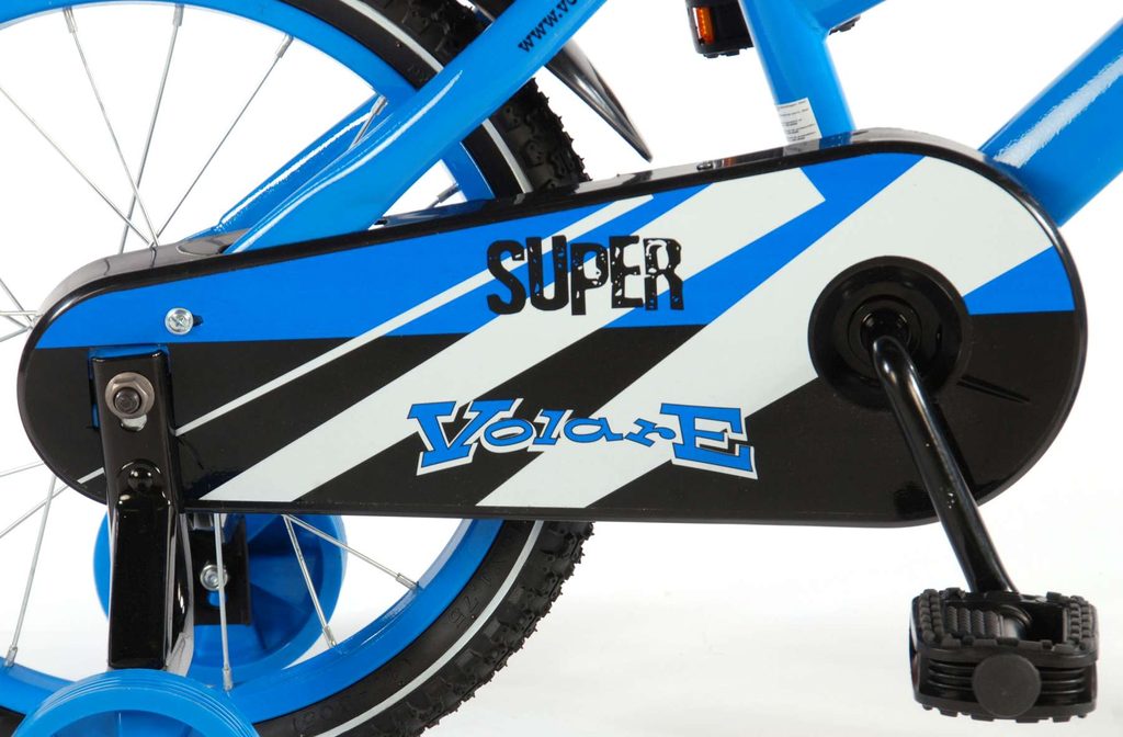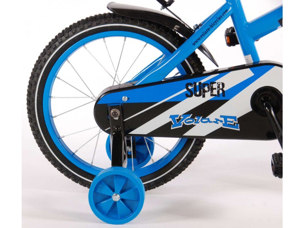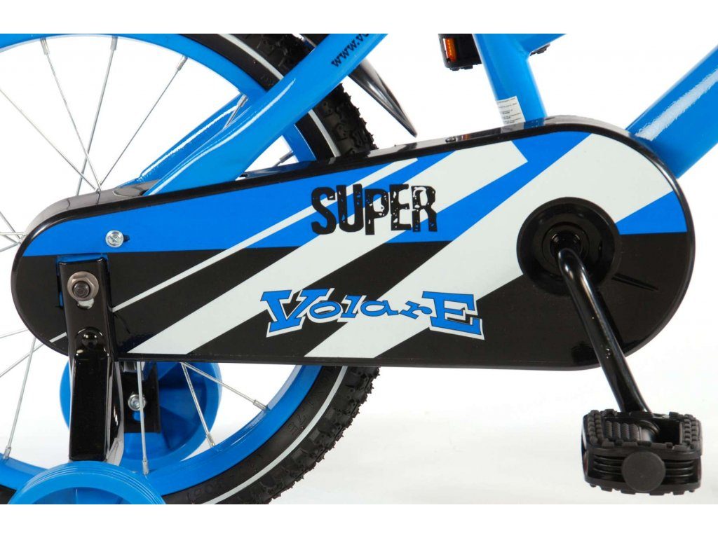 Originální dětské kolo od holandského výrobce Volare Super YipeeH s velikostí ráfků 16 palců je určeno pro děti ve věku od 4 do 6 let s výškou do 105 cm. Kolo je opatřeno demontovatelnými balančními kolečky, dítě se tedy bude cítit hned od první jízdy bezpečně a stabilně. Kolo je vybaveno 2 druhy brzd. Brždění probíhá buď protisměrnou zadní brzdou "torpédem",která možnuje brzdit zpětným záběrem pedálů nebo lze použít přední pákovou brzdu. Proti nechtěnému namotání nohavice nebo tkaničky do řetězu má kolo kryt s barevným potiskem, který zakrývá celý řetěz. Sedadlo i řídítka jsou výškově nastavitelné. Za sedadlem je umístěný nosič s lahví na pití.