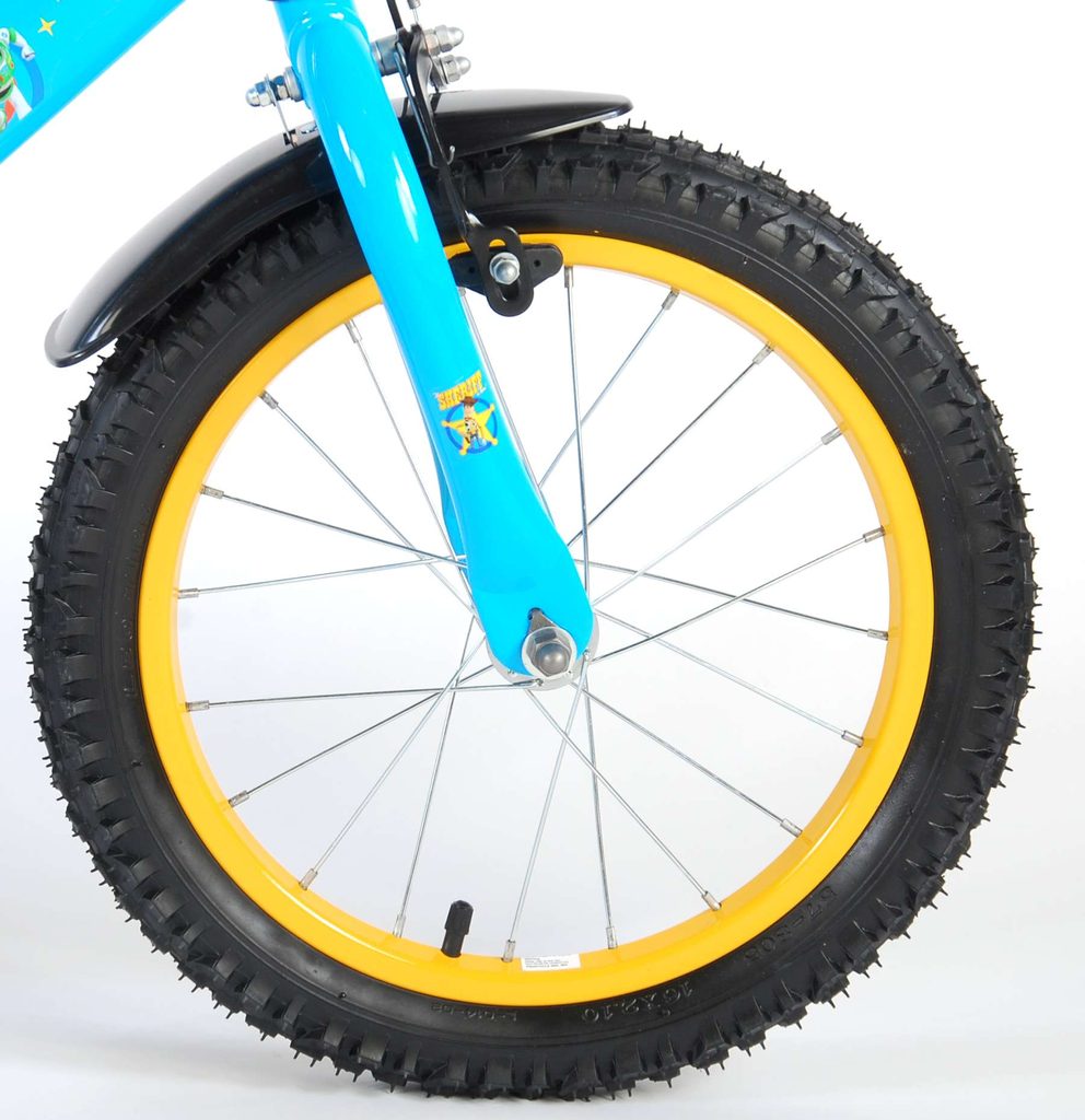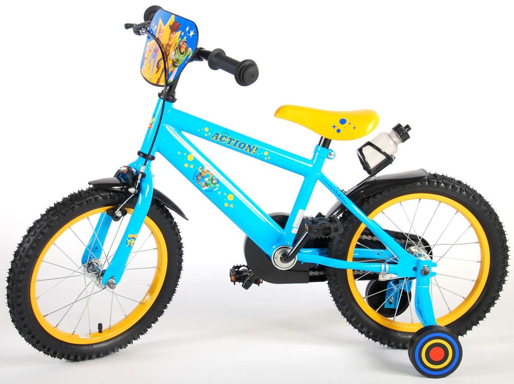 Originální dětské kolo od holandského výrobce Volare Toy Story 4 s velikostí ráfků 16 palců je určeno pro děti ve věku od 4 do 6 let s výškou do 105 cm. Kolo je opatřeno demontovatelnými balančními kolečky, dítě se tedy bude cítit hned od první jízdy bezpečně a stabilně. Kolo je vybaveno 2 druhy brzd. Brždění probíhá buď protisměrnou zadní brzdou "torpédem", která umožnuje brzdit zpětným záběrem pedálů nebo lze použít přední pákovou brzdu. Proti nechtěnému namotání nohavice nebo tkaničky do řetězu má kolo kryt s obrázky oblíbeného superhrdiny, který zakrývá celý řetěz. Sedadlo i řídítka jsou výškově nastavitelné.