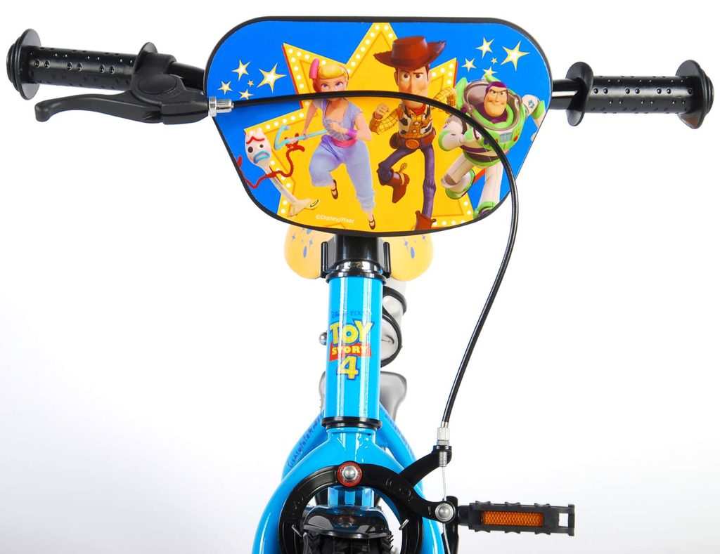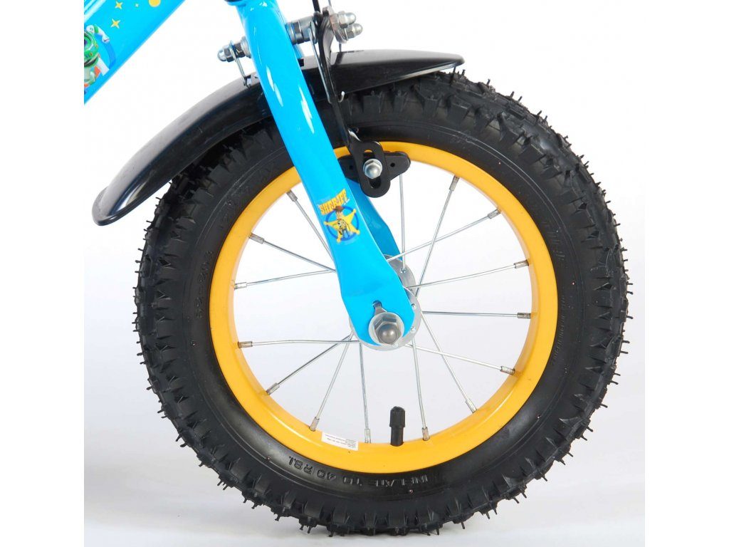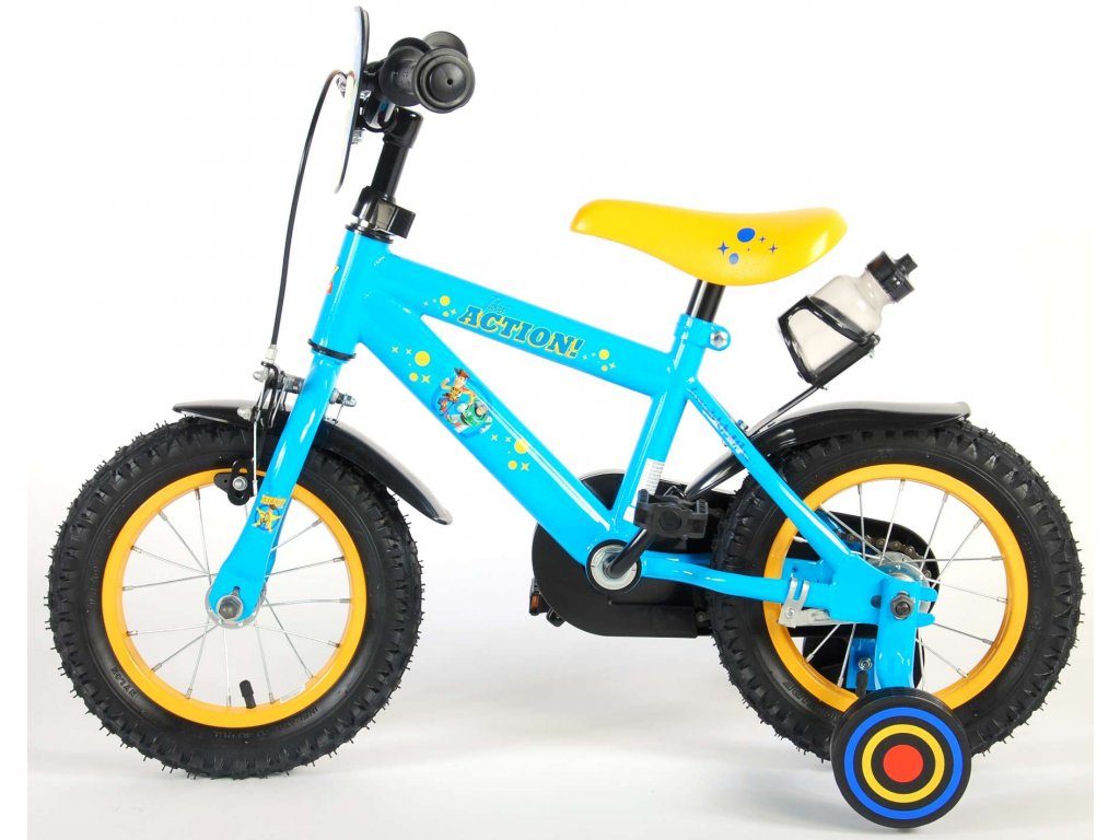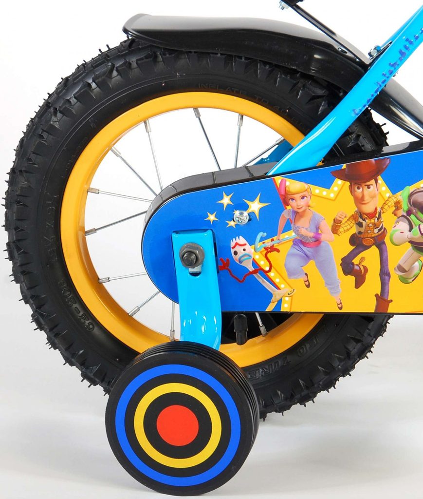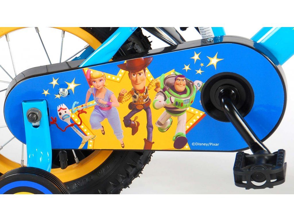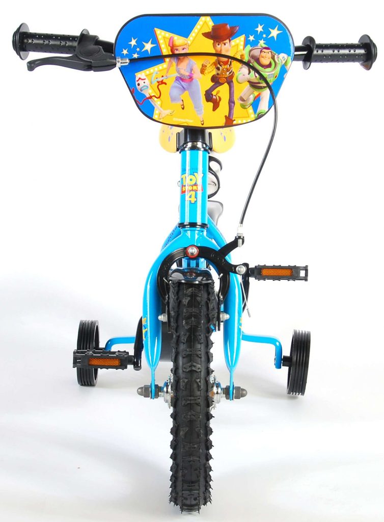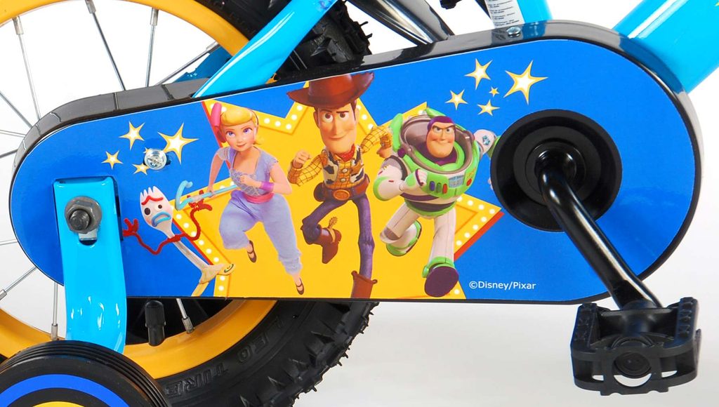 Originální dětské kolo od holandského výrobce Volare Toy Story 4 s velikostí ráfků 12 palců je určeno pro nejmenší děti ve věku od 3 do 4,5 let s výškou do 95 cm. Kolo je opatřeno demontovatelnými balančními kolečky, dítě se tedy bude cítit hned od první jízdy bezpečně a stabilně. Kolo je vybaveno 2 druhy brzd. Brždění probíhá buď protisměrnou zadní brzdou "torpédem",která možnuje brzdit zpětným záběrem pedálů nebo lze použít přední pákovou brzdu. Proti nechtěnému namotání nohavice nebo tkaničky do řetězu má kolo kryt s obrázky oblíbeného superhrdiny, který zakrývá celý řetěz. Sedadlo i řídítka jsou výškově nastavitelné.