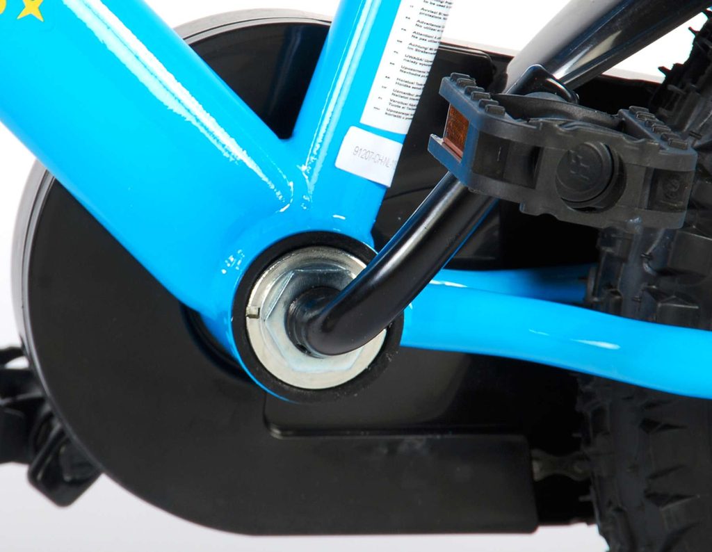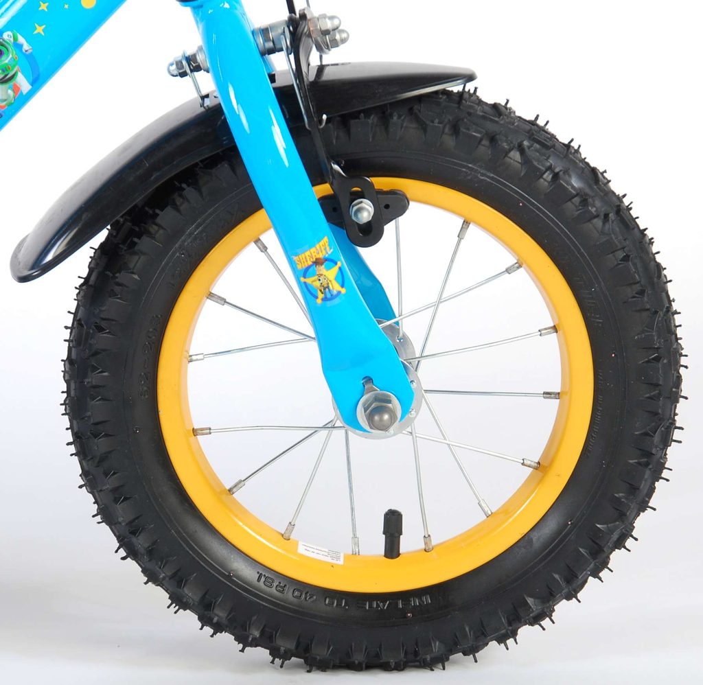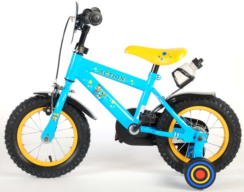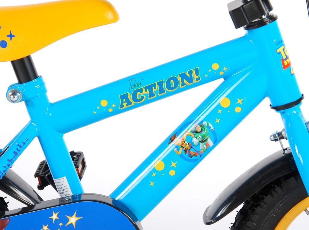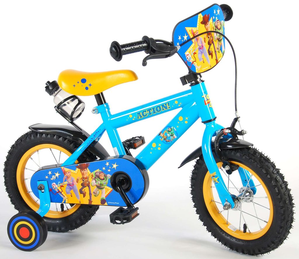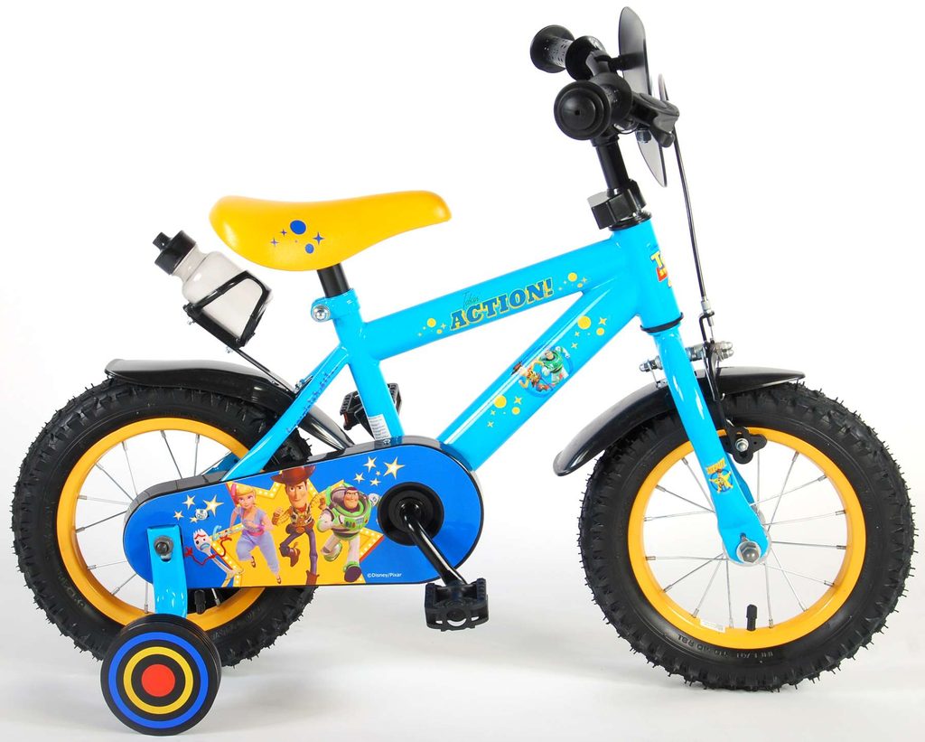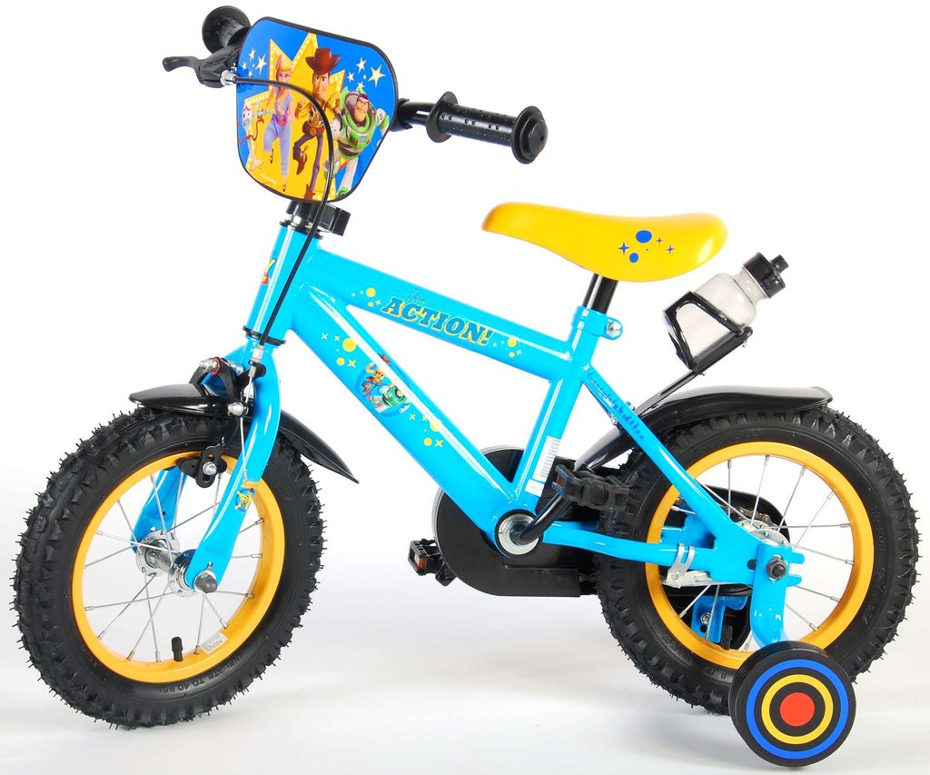 Originální dětské kolo od holandského výrobce Volare Toy Story 4 s velikostí ráfků 12 palců je určeno pro nejmenší děti ve věku od 3 do 4,5 let s výškou do 95 cm. Kolo je opatřeno demontovatelnými balančními kolečky, dítě se tedy bude cítit hned od první jízdy bezpečně a stabilně. Kolo je vybaveno 2 druhy brzd. Brždění probíhá buď protisměrnou zadní brzdou "torpédem",která možnuje brzdit zpětným záběrem pedálů nebo lze použít přední pákovou brzdu. Proti nechtěnému namotání nohavice nebo tkaničky do řetězu má kolo kryt s obrázky oblíbeného superhrdiny, který zakrývá celý řetěz. Sedadlo i řídítka jsou výškově nastavitelné.
