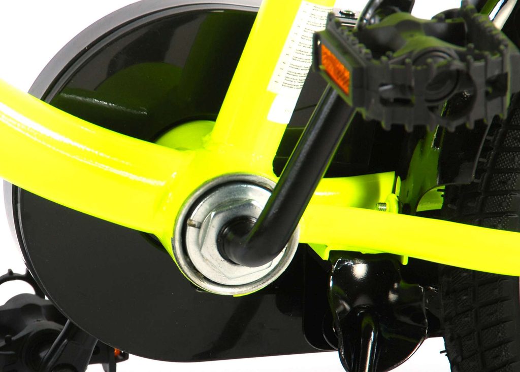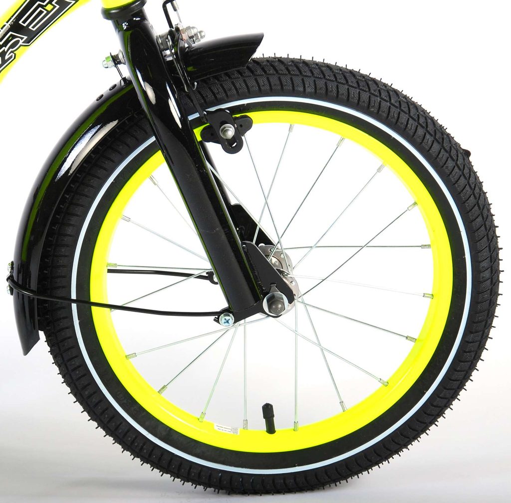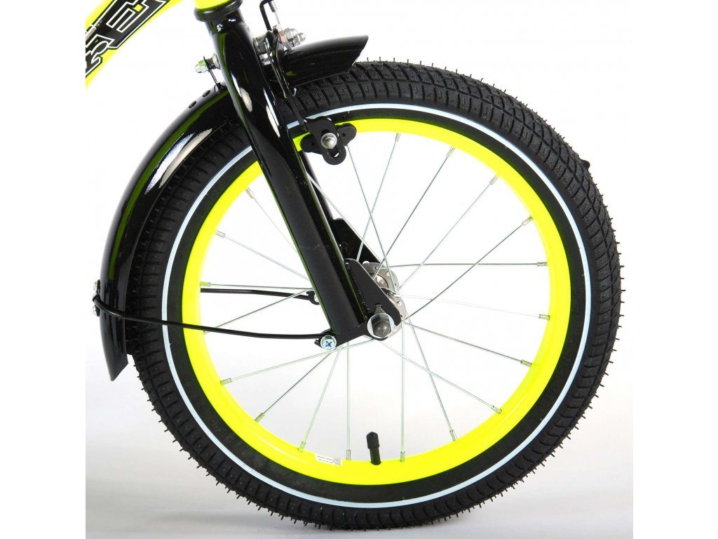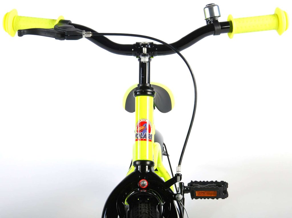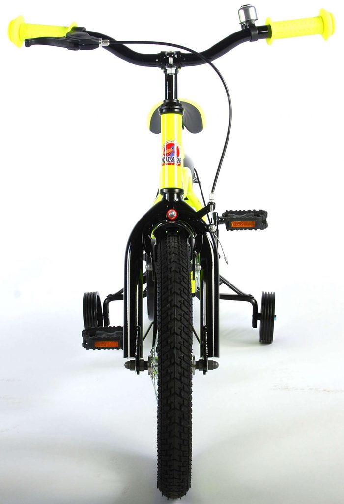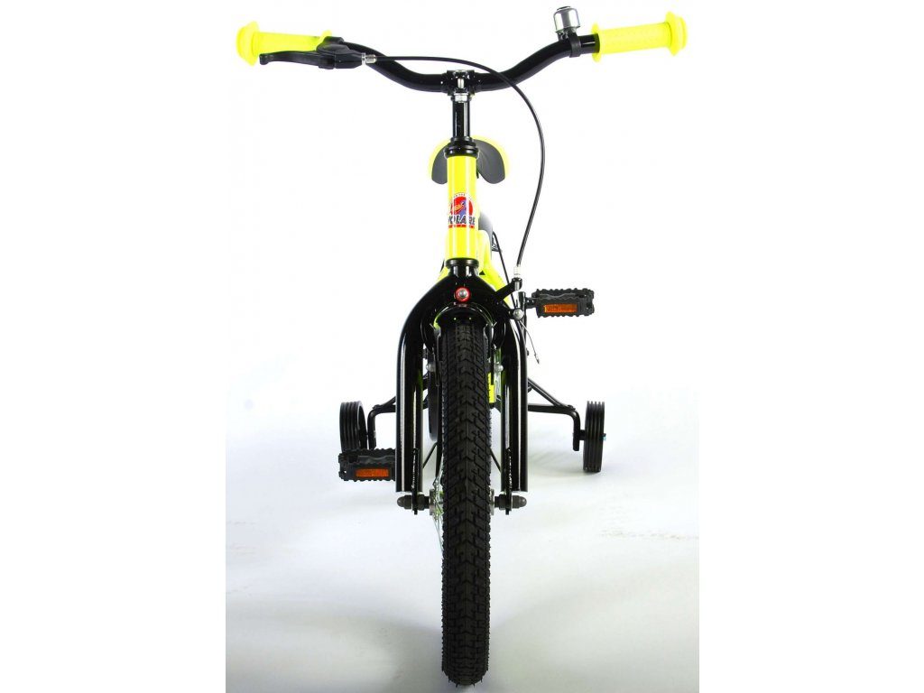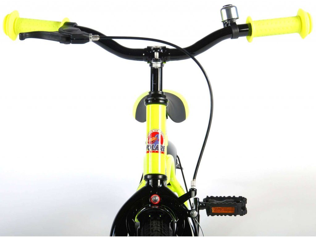 Originální dětské kolo od holandského výrobce Volare Yellow Cruiser s velikostí ráfků 16 palců je určeno pro děti ve věku od 4 do 6 let s výškou do 105 cm. Kolo je opatřeno demontovatelnými balančními kolečky, dítě se tedy bude cítit hned od první jízdy bezpečně a stabilně. Kolo je vybaveno 2 druhy brzd. Brždění probíhá buď protisměrnou zadní brzdou "torpédem",která možnuje brzdit zpětným záběrem pedálů nebo lze použít přední pákovou brzdu. Proti nechtěnému namotání nohavice nebo tkaničky do řetězu má kolo kryt s barevným potiskem, který zakrývá celý řetěz. Sedadlo i řídítka jsou výškově nastavitelné.