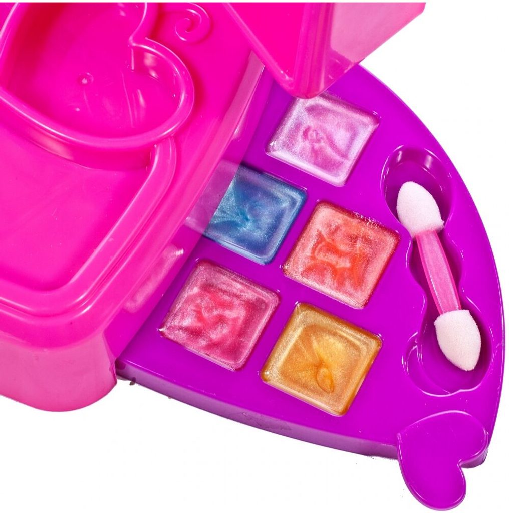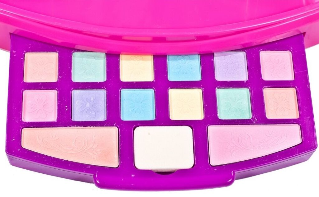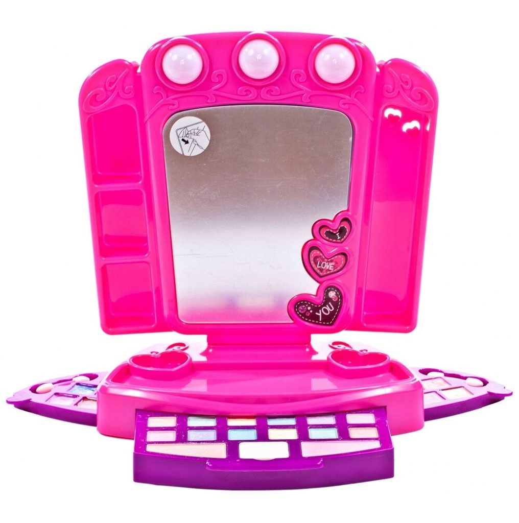Dětské kosmetické studio Make Up Set je ideální hračkou pro každou malou princeznu, která zde najde vše potřebné pro líčení. Studio je vybaveno zrcadlem, ketré má tři svítí světýlka. Součástí setu jsou líčidla, oční stíny, lesky na rty a další příslušenství. Vše je vyrobeno z bezpečných materiálů. Make-up lze jednoduše odstranit vatovými tampónky namočenými v mýdlovém roztoku. Hračka je vyrobená z plastu v pestrobarevném provedení a určena pro děti od 3 let.