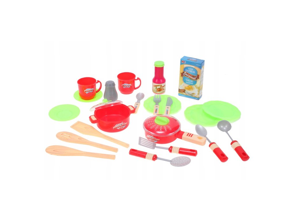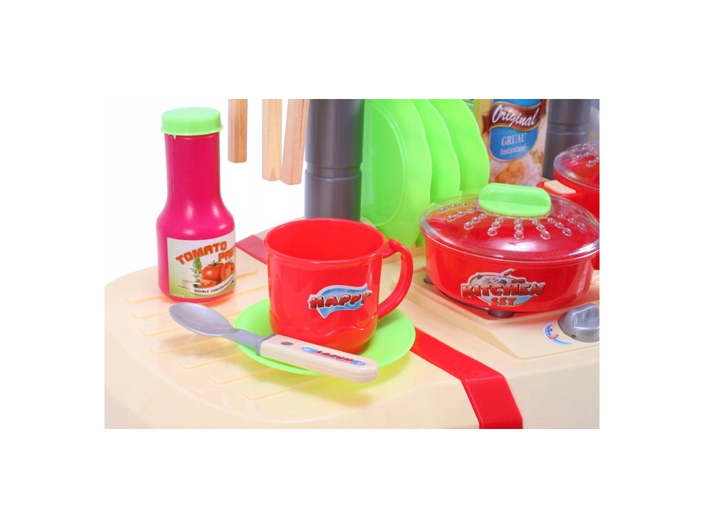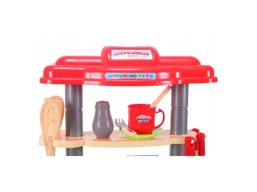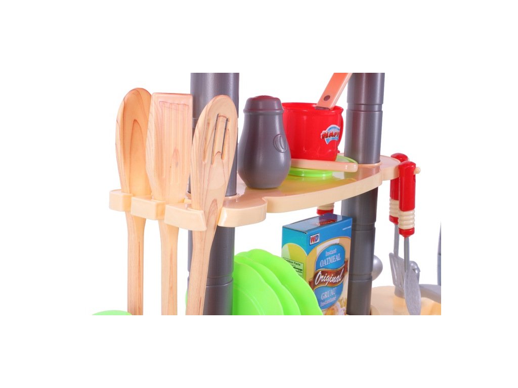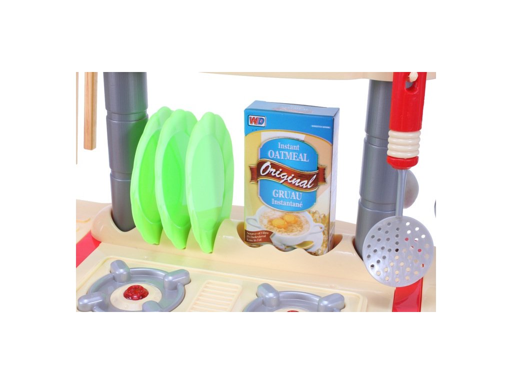 Interaktivní dětská kuchyňka Interest Kitchen se zvukovými a světelnými efekty je určena pro děti od 3 let věku. Je vybavena příslušenstvím jako jsou příbory, talíře, hrnce, imitace potravin a mnoho dalších. Vaše dítě se určitě s touto velkou kuchyňkou nudit nebude. Trouba kuchyňky je otevírací. Po otočení vypínačů se rozsvítí hořáky a spustí zvuk napodobující smažení a bublání. Je vyrobena z plastu v pestrobarevném provedení.