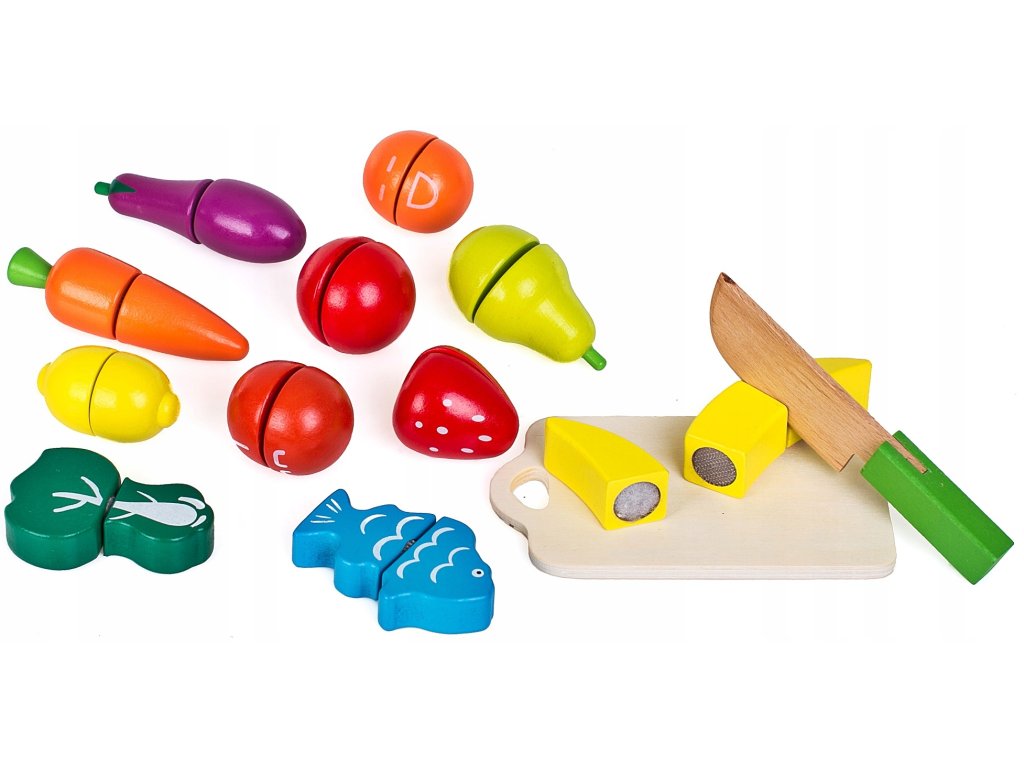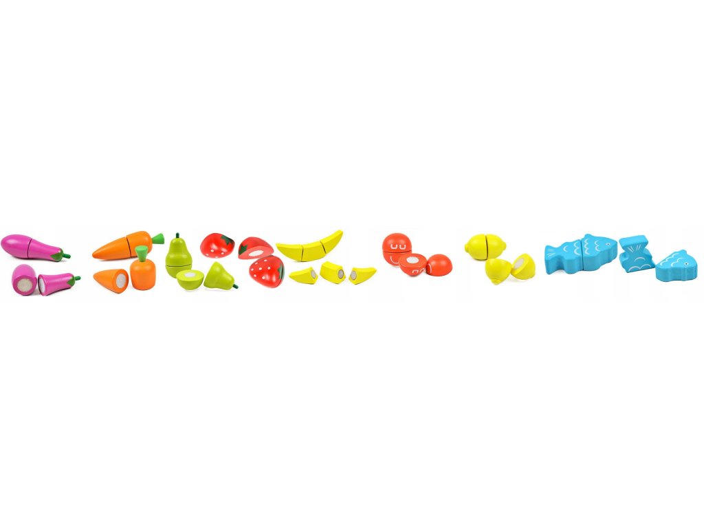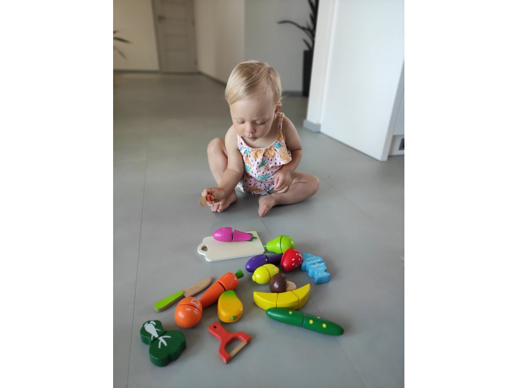 Sada dřevěného ovoce a zeleniny Doris se hodí do každé dětské kuchyňky nebo si s ní může dítě hrát samostatně. Ovoce a zelenina jsou vyrobeny z kvalitního dřeva a jsou pokryty zdravotně nezávadnou barvou. Každé z nich lze rozpůlit a zase zpět spojit pomocí suchého zipu. Sada obsahuje nejznámější druhy ovoce a zeleniny, dítě se je tak snadno naučí rozpoznávat. Vše je uloženo v praktickém boxu s úchytem. Součástí balení je také prkýnko a krájecí nůž. Tato hračka je určena pro děti od 3 let věku.