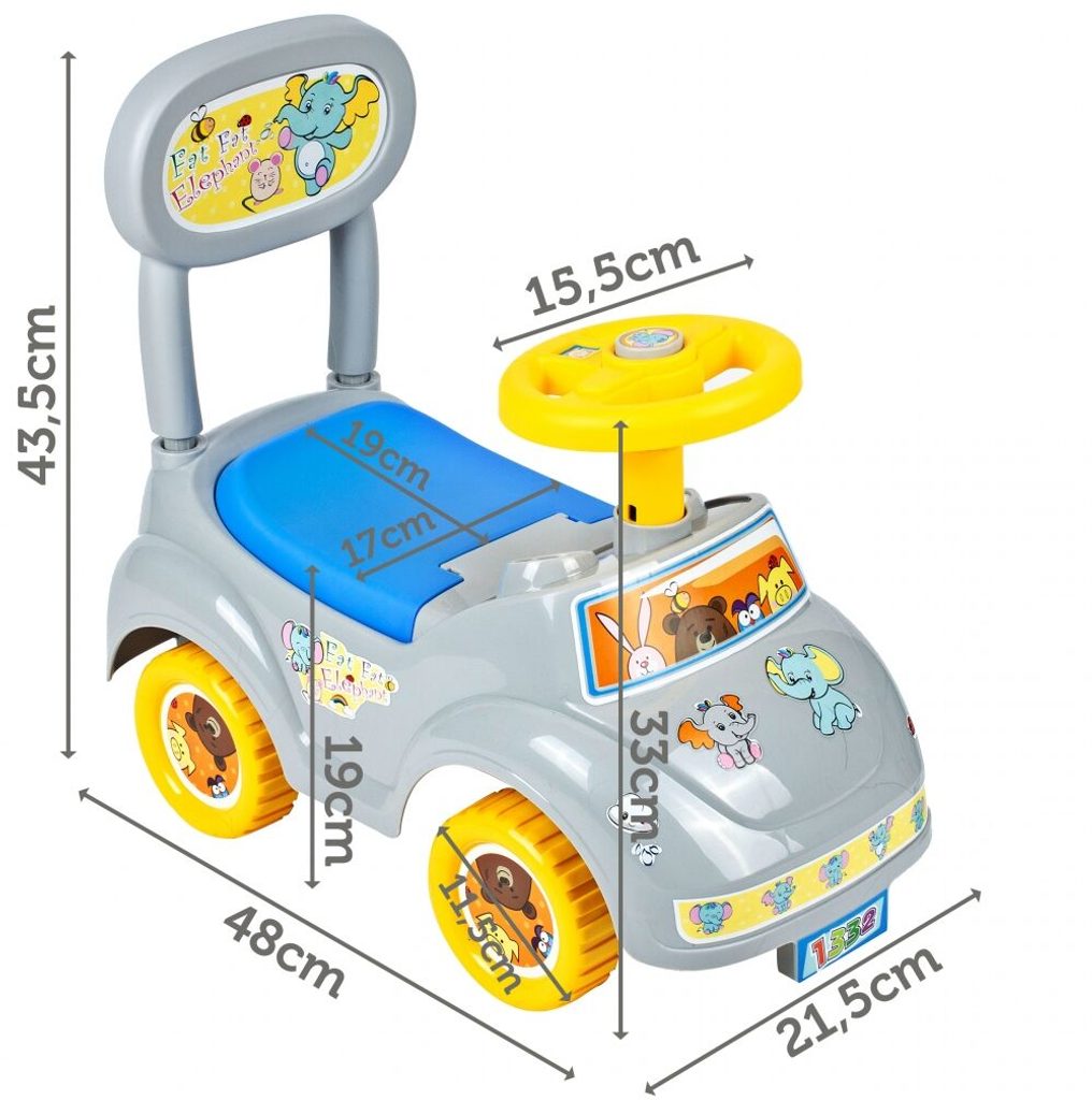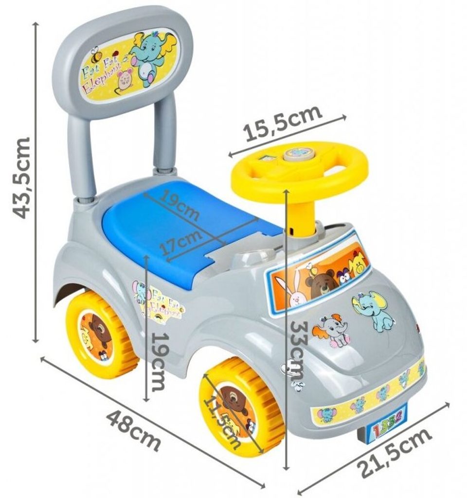 Dětské odrážedlo Fat Elephant je určeno pro ty nejmenší děti. Pod sedátkem je umístěn úložný prostor pro hračky. Ve volantu je umístěno pískátko a za ním maketa telefonu. Odrážedlo je vhodné pro děti od 12 měsíců. Tvar hračky pomáhá rozvíjet motorické schopnosti dítěte a navíc se bude cítit jako skutečný řidič.