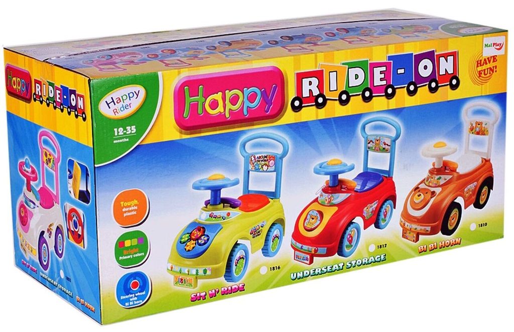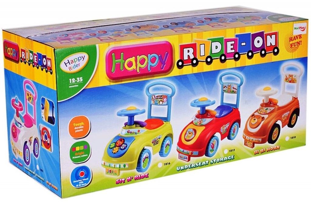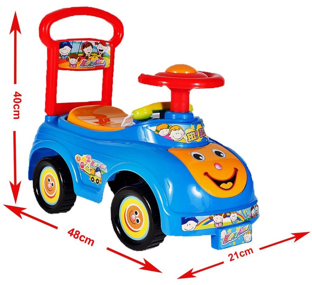 Dětské odrážedlo Happy Face je určeno pro ty nejmenší děti. Pod sedátkem je umístěn úložný prostor pro hračky. Ve volantu je umístěno pískátko a za ním maketa telefonu. Odrážedlo je vhodné pro děti od 12 měsíců. Tvar hračky pomáhá rozvíjet motorické schopnosti dítěte a navíc se bude cítit jako skutečný řidič.