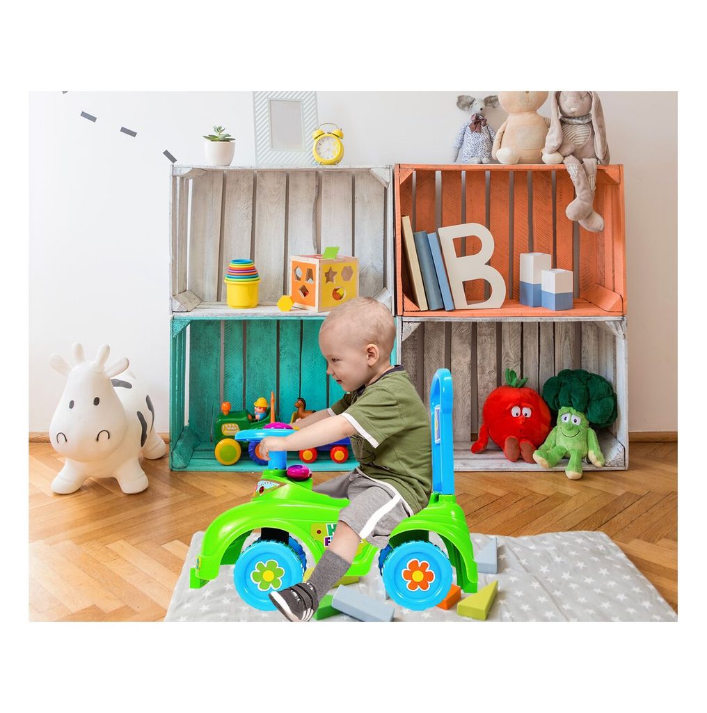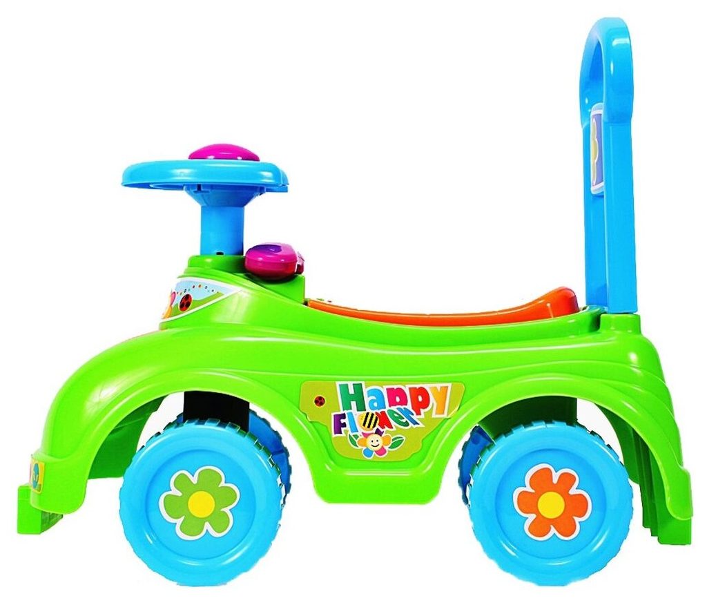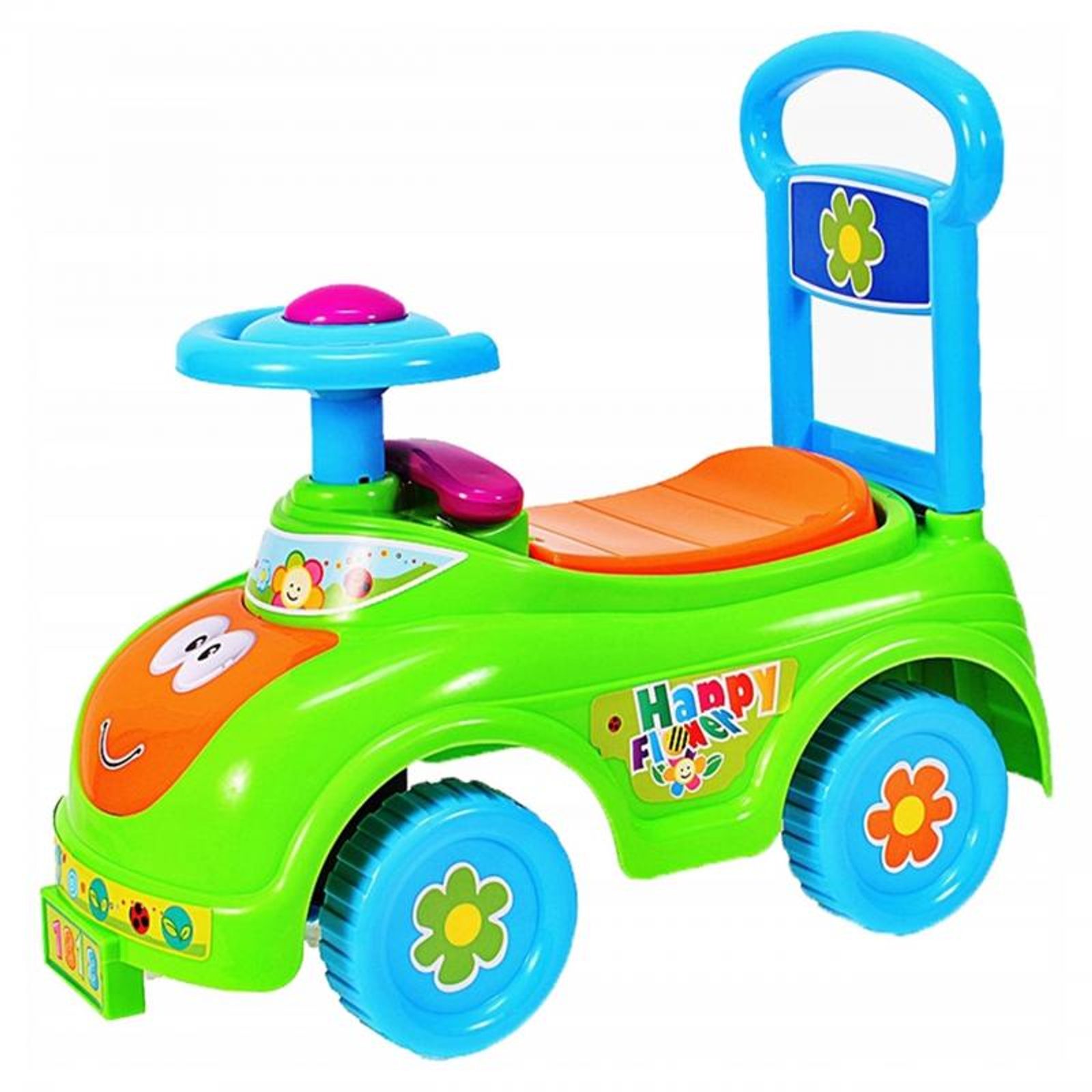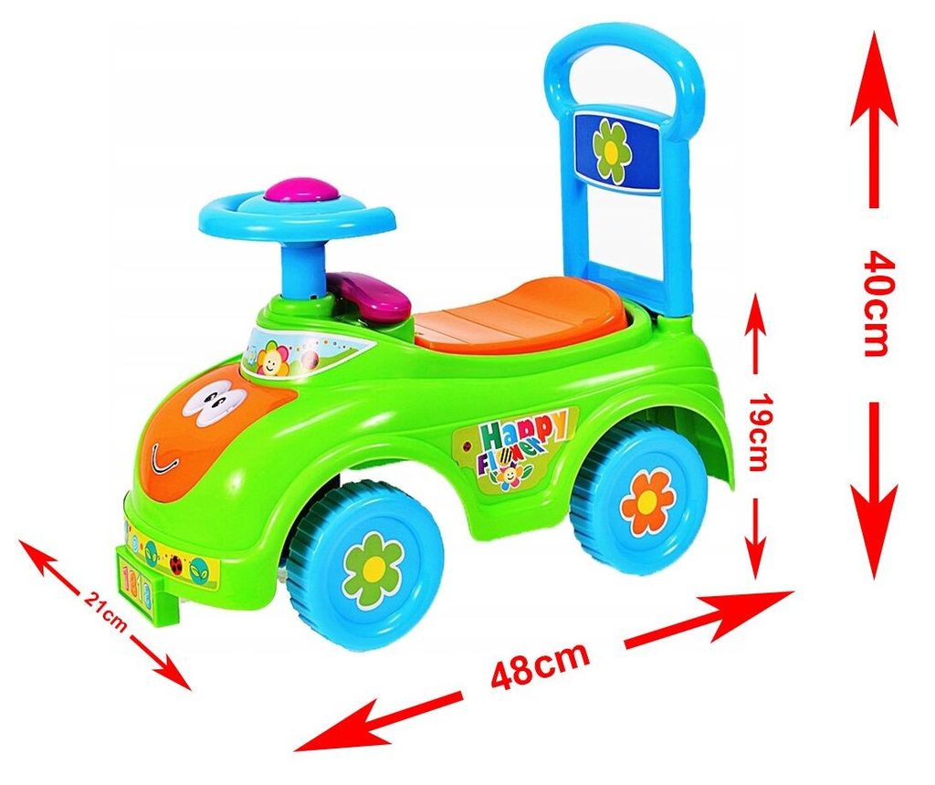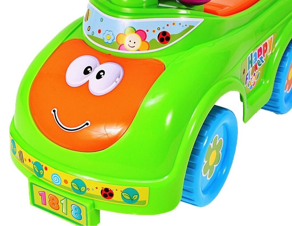 Dětské odrážedlo Happy Flower je určeno pro ty nejmenší děti. Pod sedátkem je umístěn úložný prostor pro hračky. Ve volantu je umístěno pískátko a za ním maketa telefonu. V přední části je umístěný efektní otočný větráček. Odrážedlo je vhodné pro děti od 12 měsíců. Tvar hračky pomáhá rozvíjet motorické schopnosti dítěte a navíc se bude cítit jako skutečný řidič.