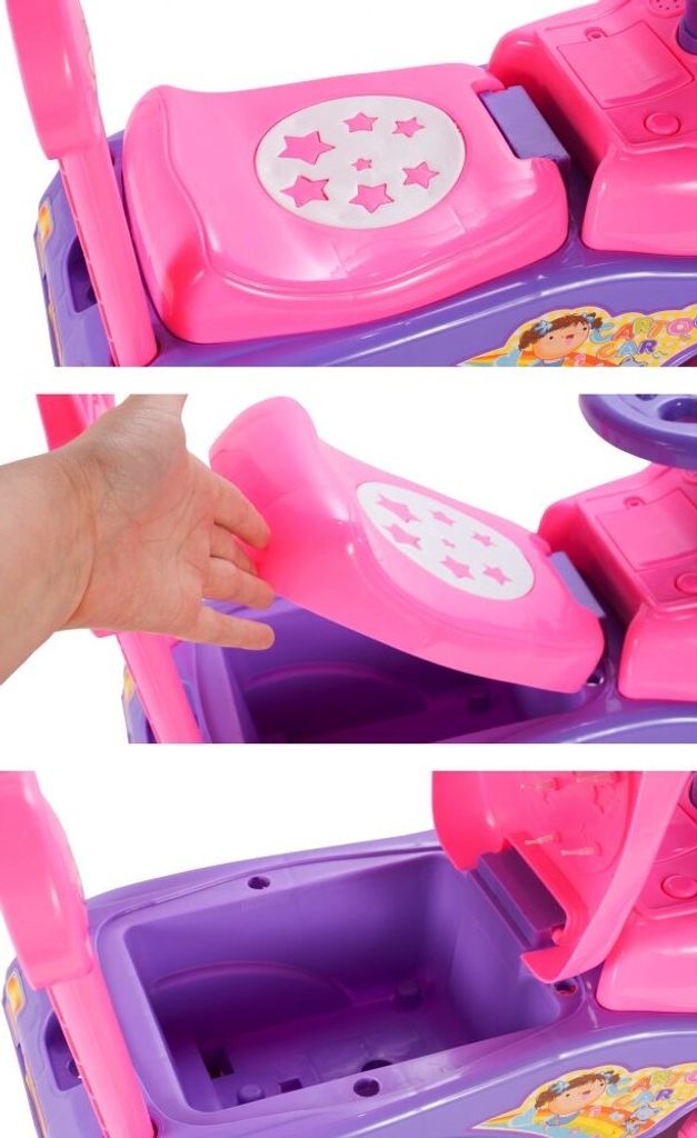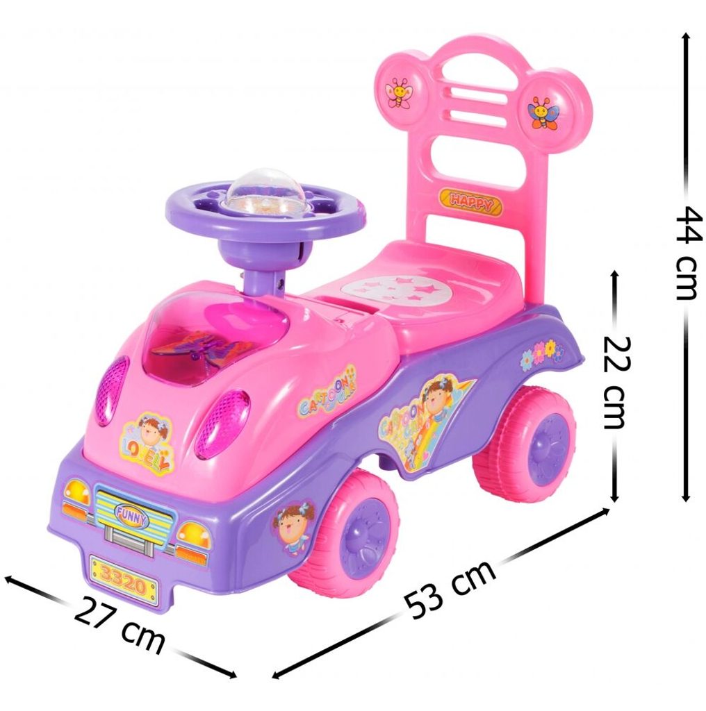 Dětské odrážedlo Cartoon Car je určeno pro ty nejmenší děti. Pod sedátkem je umístěn úložný prostor pro hračky. Je vybaveno celkem 17 melodiemi a pohyblivým motýlkem. Odrážedlo je vhodné pro děti od 12 měsíců. Tvar hračky pomáhá rozvíjet motorické schopnosti dítěte a navíc se bude cítit jako skutečný řidič.