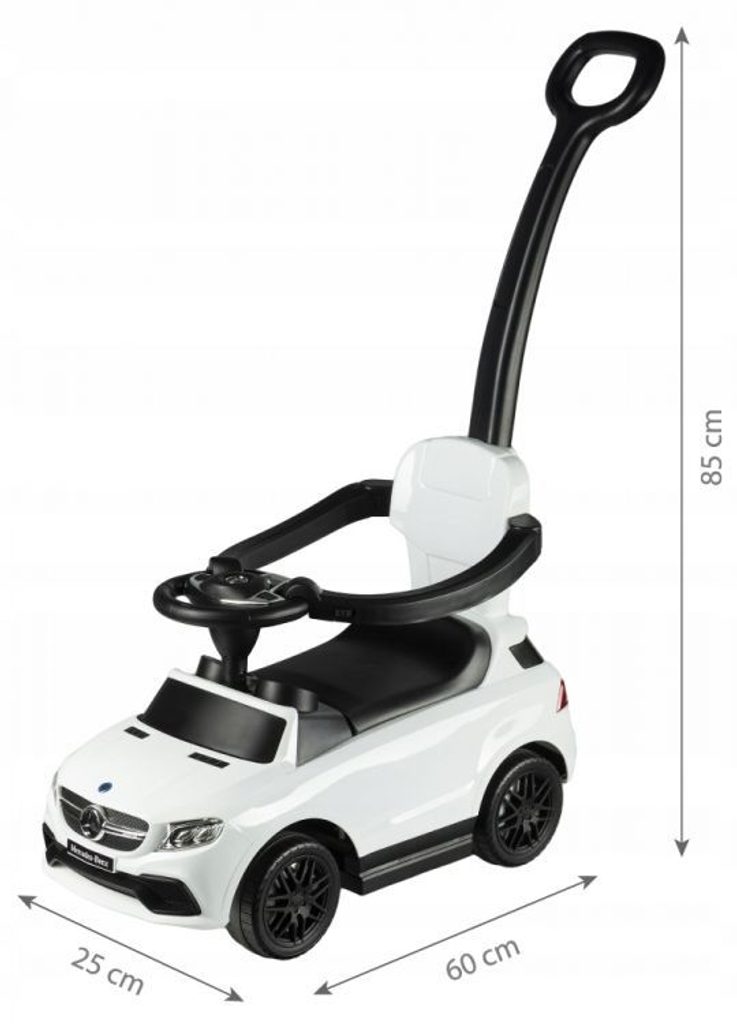 Bezpečná hračka, která zajistí pohyb Vašeho dítěte nejen venku, ale také doma. Volant, rukojeť, interaktivní volant a úschovný prostor, v kombinaci s originálním vzhledem automobilu (produkt licencovaný společností Mercedes) zaručují úspěšný dárek a velkou zábavu.