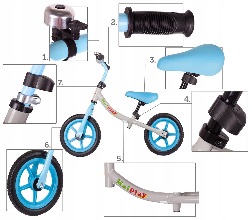 Dětské odrážedlo Nolan s 12" palcovými  EVA koly a vícebarevnému provedení zaručí Vašemu dítěti spoustu zábavy a legrace. Dítě se naučí udržovat stabilitu a je ideálním prostředkem před přechodem na klasické jízdní kolo. Výška řídítek a sedadla se dají nastavit. Díky kovovému rámu je velmi lehké. Konce řídítek mají protiskluzovou úpravu a jsou vybaveny zvonečkem. Odrážedlo je určeno pro děti od 2 let věku.