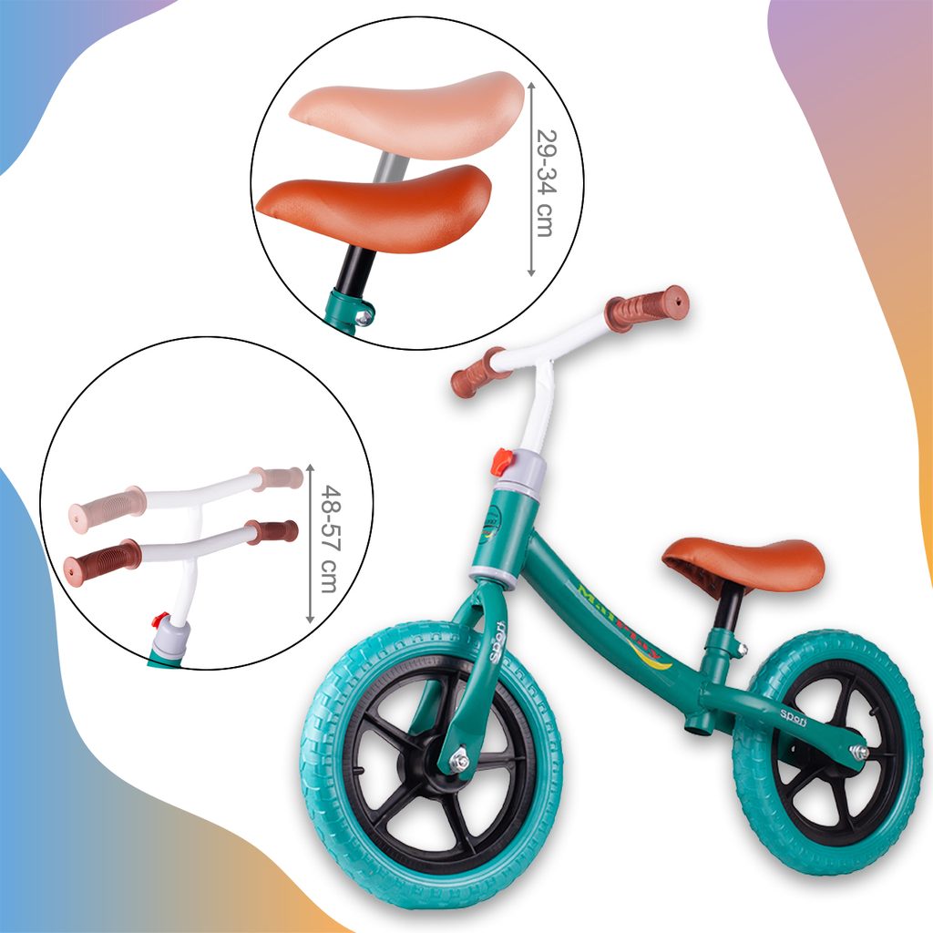 Dětské odrážedlo Trevis s 12" palcovými  EVA koly a vícebarevnému provedení zaručí Vašemu dítěti spoustu zábavy a legrace. Dítě se naučí udržovat stabilitu a je ideálním prostředkem před přechodem na klasické jízdní kolo. Výška řídítek a sedadla se dají nastavit. Díky kovovému rámu je velmi lehké. Konce řídítek mají protiskluzovou. Odrážedlo je určeno pro děti od 2 let věku.