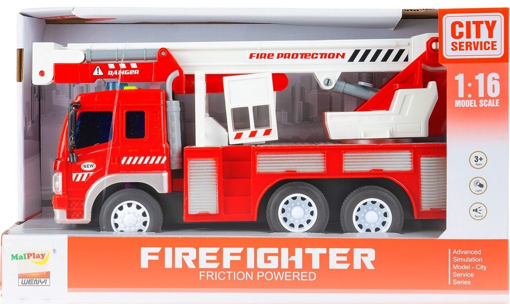 Dětské požární auto City Rescue je ideální hračkou pro rozvoj manuální zručnosti a logického myšlení. Je vybaveno zvuky sirény, klaksonu a startování motoru. Na střeše je umístěný svítící maják. Kola autíčka jsou pohyblivá kdy pohon zajištuje systém Friction Power. Hračka je určena pro děti od 36 měsíců věku.