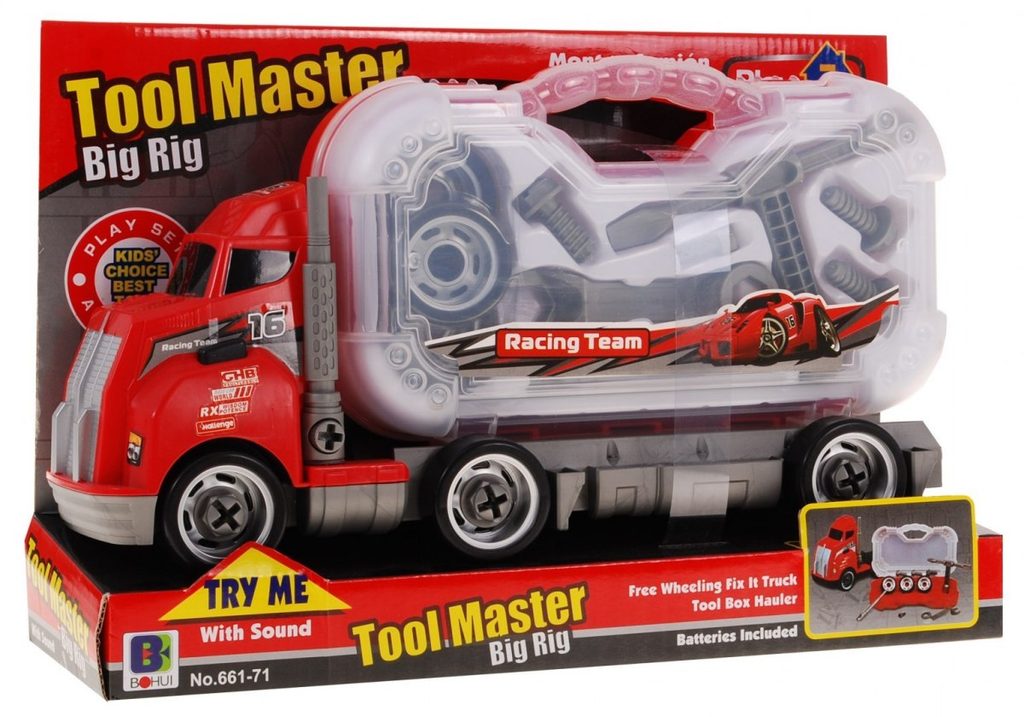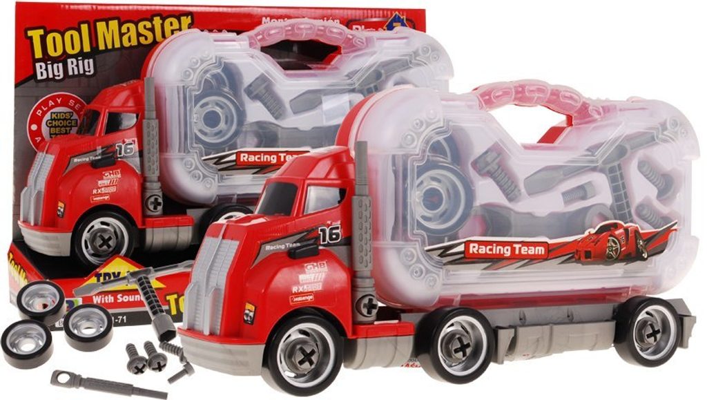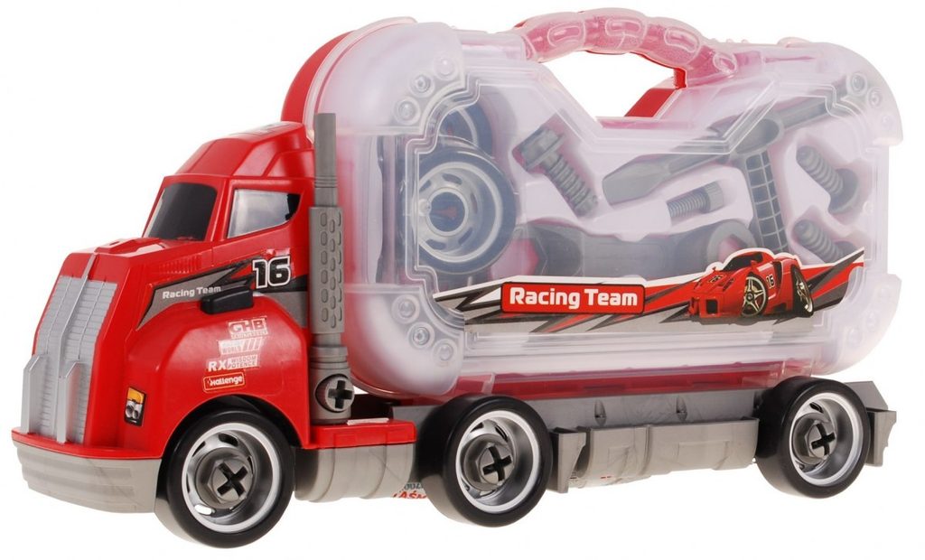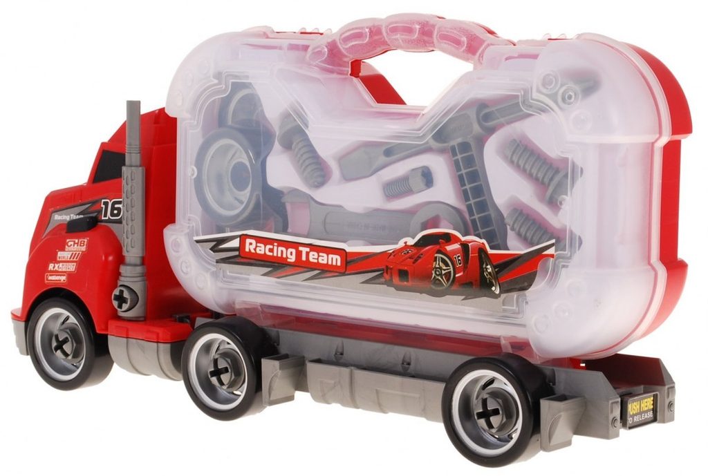 Šroubovací nákladní autíčko na baterie Container Truck je ideální hračkou pro rozvoj manuální zručnosti a logického myšlení. Lze ho rozebrat na jednotlivé díly a šrouby a poté zase složit pomocí přiloženého šroubováku a oboustranného klíče. Nářadí a příslušenství je uloženo v praktickém průhledném kufříku, který slouží jako korba autíčka. Zábava je tak nekonečná. Zmáčknutím tlačítka se spustí zvuk jedoucího auta. Hračka je určena pro děti od 36 měsíců věku.