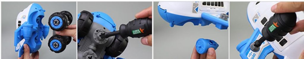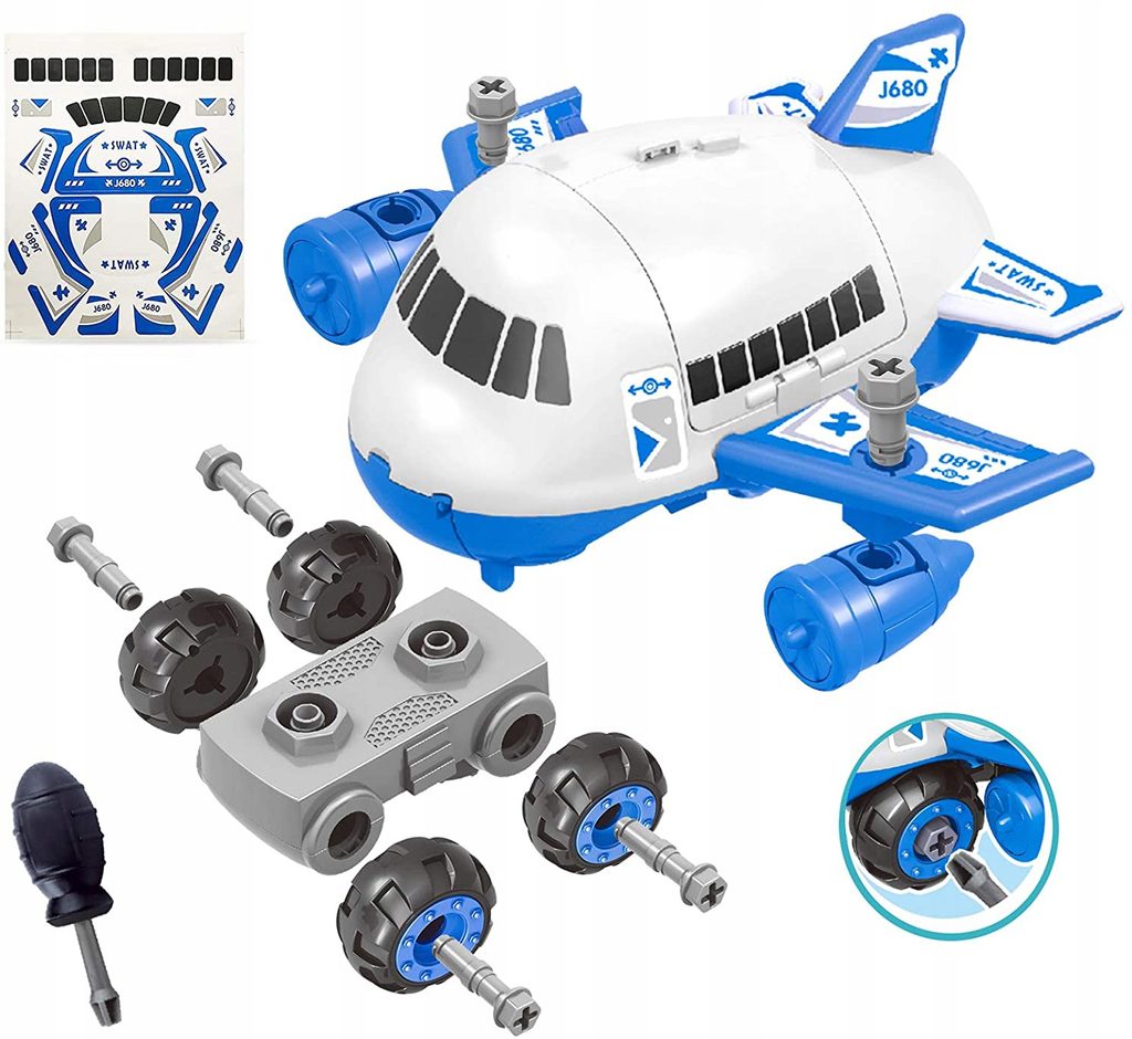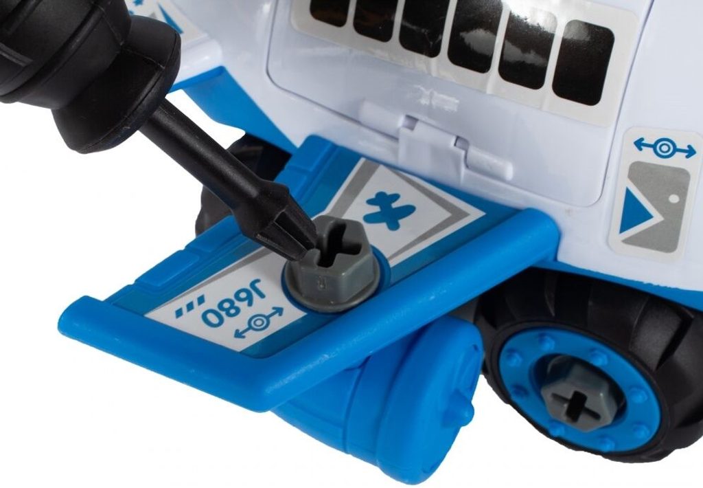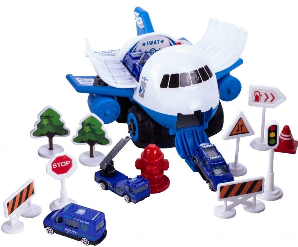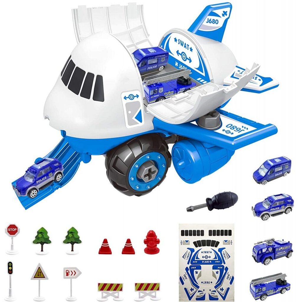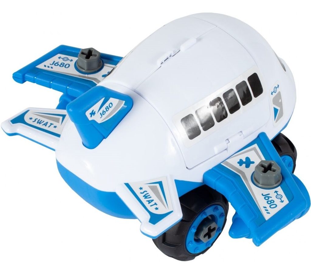 Šroubovací letadlo s autíčky a dalším příslušenstvím Plane Storage je ideální hračkou pro rozvoj manuální zručnosti a logického myšlení. Lze ho rozebrat na jednotlivé díly a šrouby a poté zase složit pomocí přiloženého šroubováku. Zábava je tak nekonečná. Součástí sady jsou 4 policejní autíčka, silniční značky, dopravní značení, stromečky a hydrant. Pohon zajišťuje systém Friction Power kdy se helikoptéra rozpohybuje tlačením po hladkém povrchu. Hračka je určena pro děti od 36 měsíců věku.