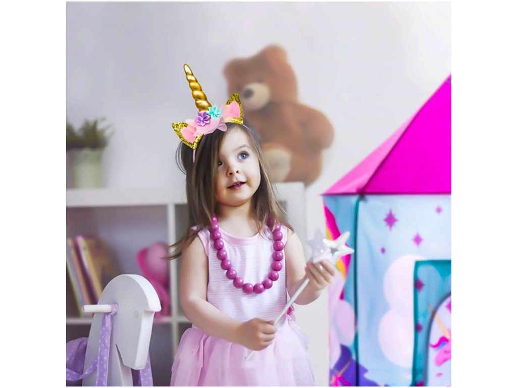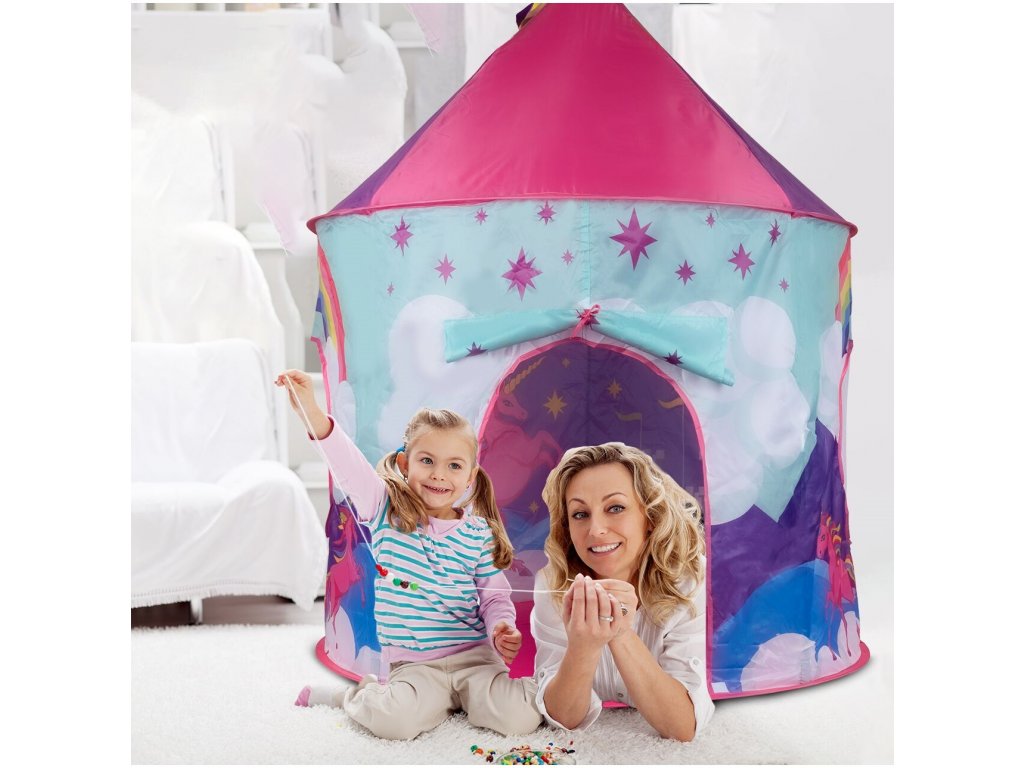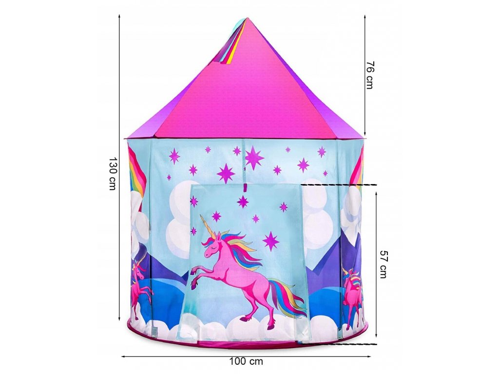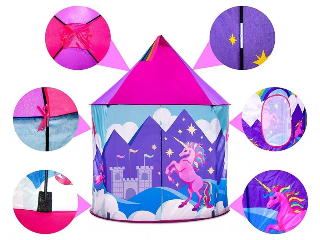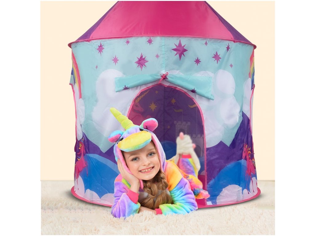 Dětský stan Unicorn Tent je ideálním místem na hraní pro každou holčičku. Je vhodný jak do vnitřních prostor tak i pro venkovní použití. Vchod do stanu je nastavitelný, můžete tak nastavit množství světla, které bude pronikat dovnitř stanu. Svrchní materiál je polyester s obrázkem jednorožce. Montáž stanu je velmi a snadná a rychlá, což oceníte zejména při jeho přemist'ování.