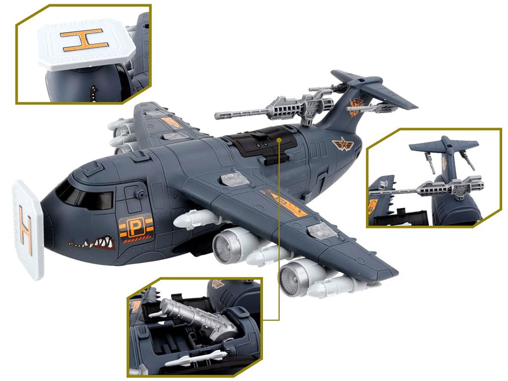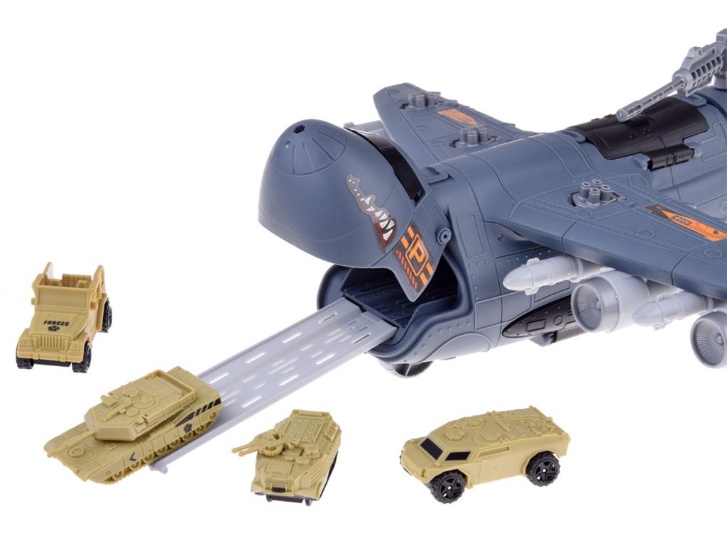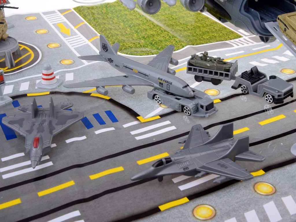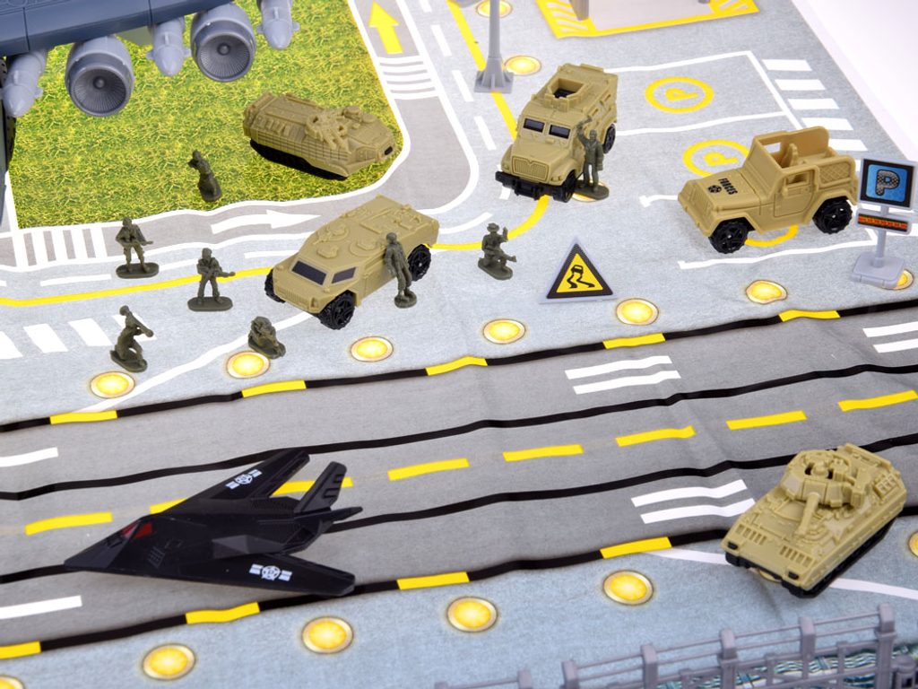 Velká vojenská sada s letištěm Military Aircraft je určena pro každého malého fanouška vojáků, letadel a letectví. Sada obsahuje velké množství příslušenství. Kromě velkého dopravního letadla zde najdete různé druhy vojenských autíček, stíhačky, vojáčky, helikoptéru, tank a samozřejmě součásti ze kterých lze sestavit kompletní letiště. Hračka je určena pro děti od 3 let věku.