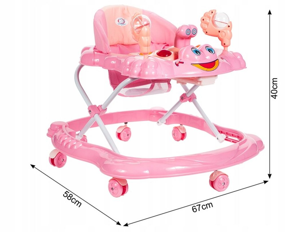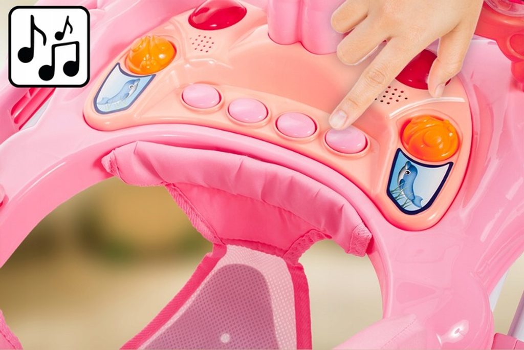 Dětské chodítko Laugh Walker s interaktivním hracím panelem je určeno pro děti od 6 měsíců věku. Sedátko je ergonomicky tvarované a zajišťuje tak správné držení páteře. Potah lze sejmout a prát v pračce.  V přední části je umístěný interaktivní hrací panel s melodiemi a světýlky. Kolečka chodítka jsou otočná a jsou vyrobeny z materiálu, který nepoškrábe podlahu. Splňuje veškeré normy které jsou vyžadovány pro dětské chodítka.
