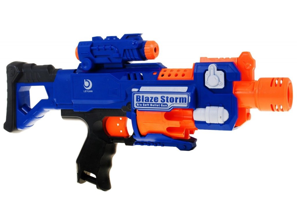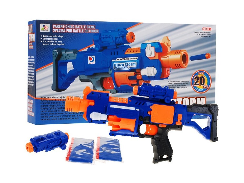 Rychlý a přesný plně poloautomatický samopal pro děti Barricade RV-10 je nabíjen 10 pěnovými projektily. Projektily jsou měkké a tupé, nehrozí tedy žádné zranění. Samopal má možnost střelby jednoho nebo série nábojů a střílí až do vzdálenosti 10 m. V horní části je umístěna zaměřovač pro přesnou střelbu. U této zbraně navíc oceníte odnímatelnou pažbu, která umožňuje mít krátkou nebo dlouhou zbraň. Samopal od značky Blaze Storm je příruční, lehký a odolný. Jedná se o skvělou zábavu pro chlapce a můžete nám věřit, že ke hře s tímto samopalem se rádi zapojí i tatínkové.